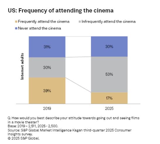同時,流媒體平台的擠壓已成為全球放映業共同面臨的巨大挑戰。無論是歐美的Netflix、Disney+,還是香港的同一平台及YouTube,乃至內地更激烈的長短視頻平台競爭,都穩固了觀眾「居家消費」的習慣。美國凱根消費者洞察公司發布的數據顯示,每月至少去一次影院的成年人比例,已從疫情前的39%大幅降至約17%。