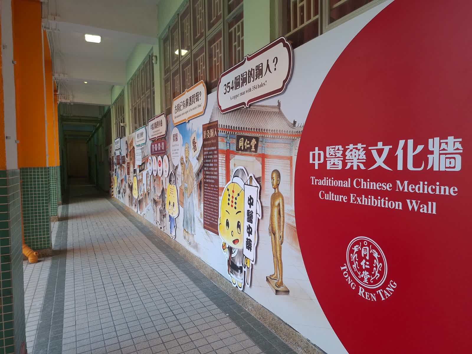 為讓更多同學接觸中醫中藥文化,校園的活動室和操場更增設「北京同仁堂中醫藥文化校園展覽」,介紹藥食同源的中草藥及古代宮廷御藥的文化歷史和用途。課室內設置傳統中藥百子櫃,吸引學童逐格認識「既是食物又是藥物」的草本材料和特性。北京同仁堂更特別為進校課程編寫及製作《中醫藥世界–「銅人」非凡之旅》漫畫冊,以造型可愛的「銅人仔」為漫畫主角,從兒童視角帶領學生認識經絡和草本健康生活,令中醫藥文化更貼地有趣。