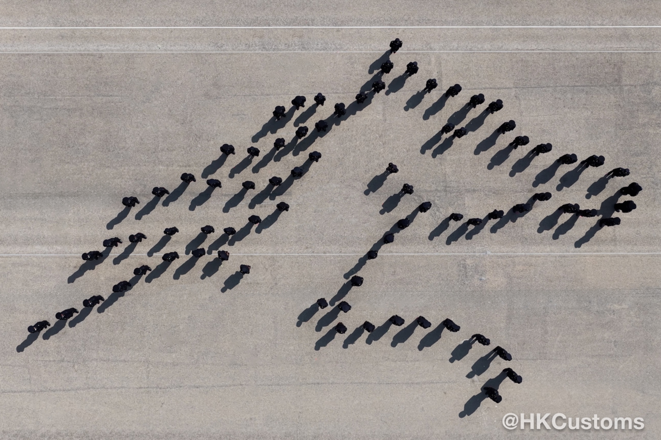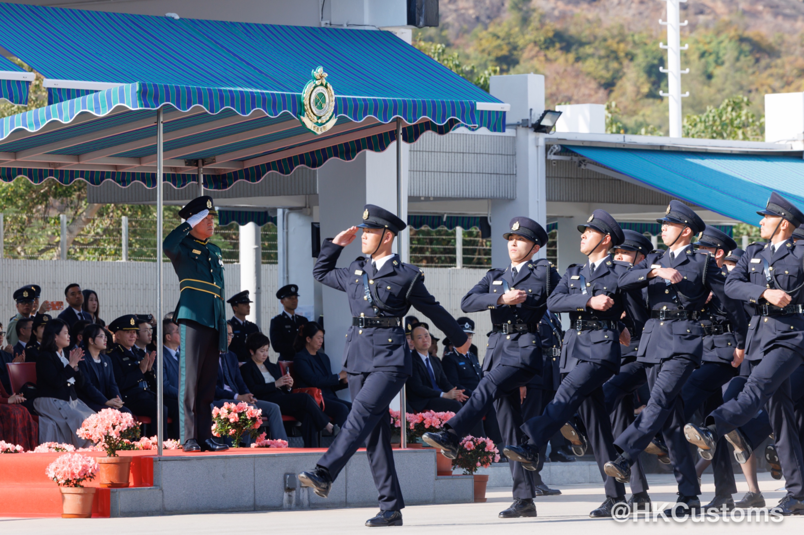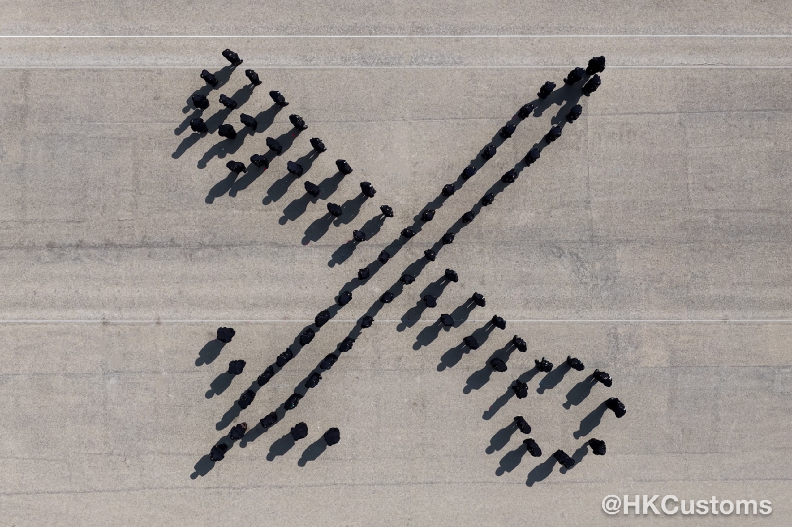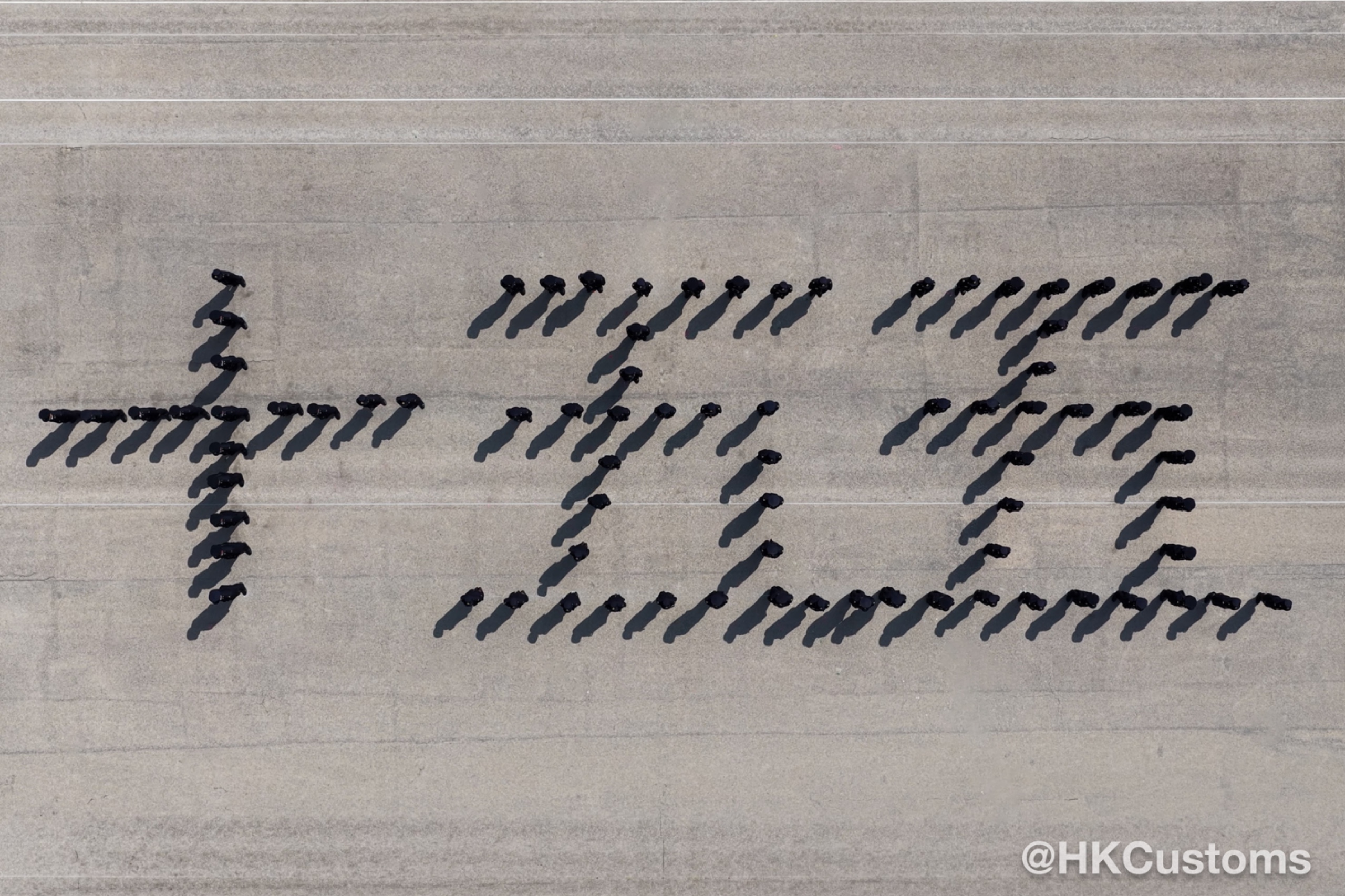 會操中學員以中式步操拼出海關徽章上的利劍及鑰匙標誌、「十五五」的字樣及馬的圖案,象徵香港海關將全力配合特區政府主動對接國家「十五五」規劃,為融入和服務國家發展大局作出貢獻,並祝願國家及香港在新歲馬年繼續繁榮穩定,發展順遂,以及各來賓身體健康。