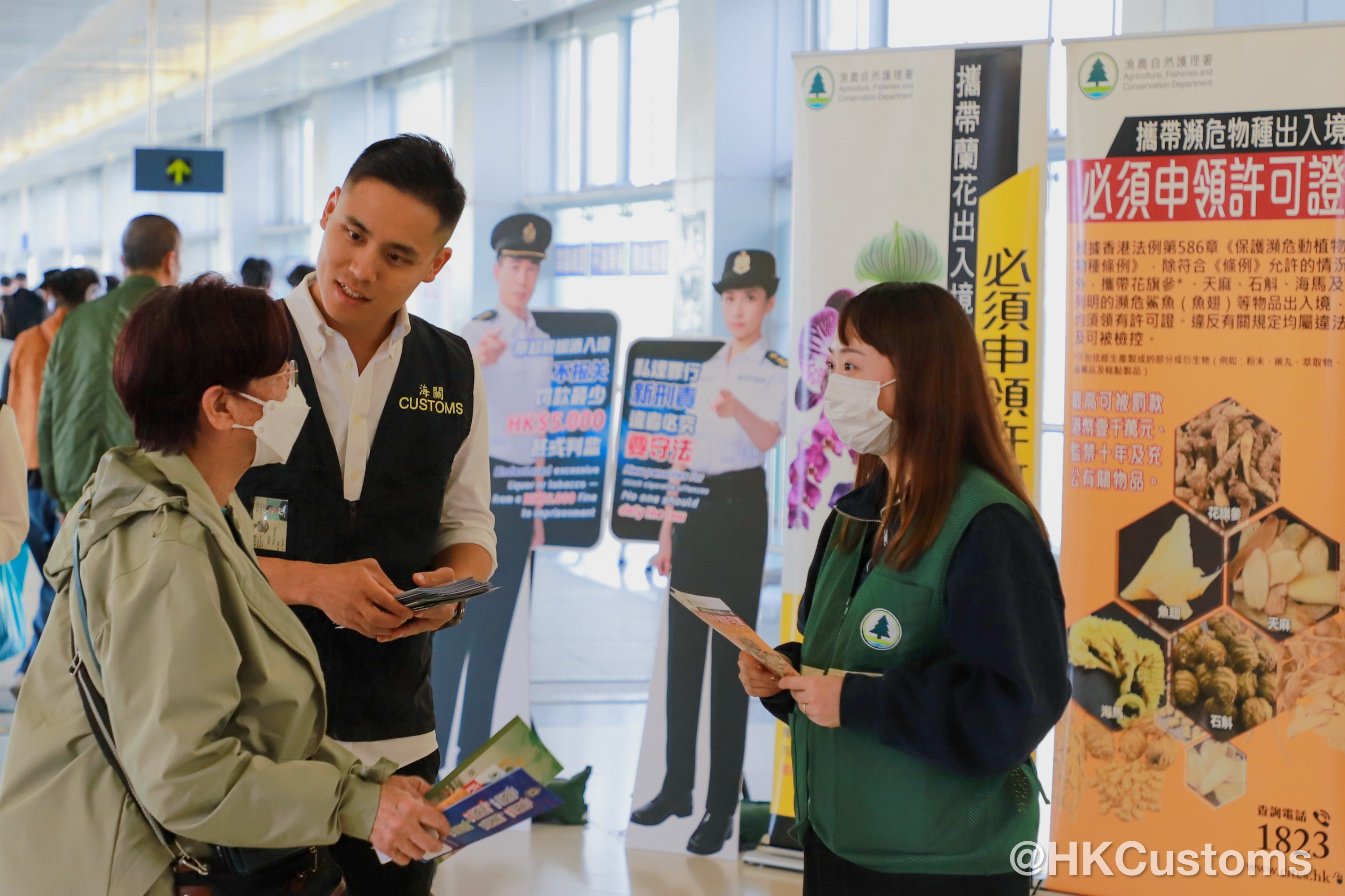 為免市民誤墮法網,香港海關聯同漁農自然護理署已加強在各邊境口岸的宣傳,並向市民派發《旅客過關小錦囊》和有關瀕危物種管制傳單,提醒市民各類物品的進出口管制。