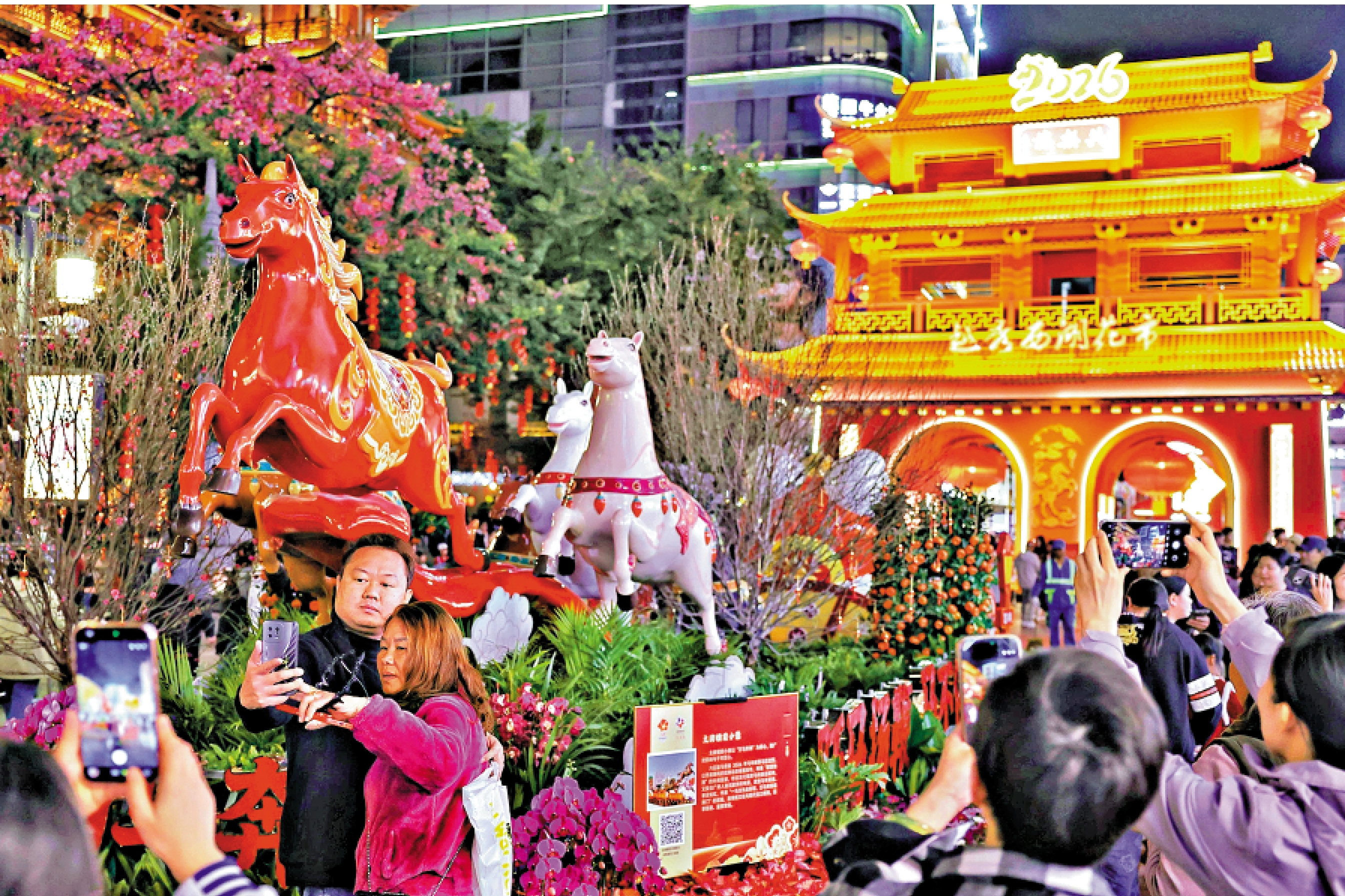 繼荔灣水上花市率先登場後,歷史悠久的越秀西湖花市也將於13日正式開市。作為廣州最具歷史底蘊的迎春花市之一,越秀西湖花市今年主牌樓以宋代「廣州第一高樓」共樂樓為設計原型,高聳樓閣配以飛簷燈飾,重現古城繁華。牌樓前,一組「萬馬奔騰」生肖裝置造型更是氣勢十足。花市期間還將舉行傳統迎春花市開市儀式及越秀區啟市禮,延續百年花市傳統。花市現場還同時設花王評比、非遺展演等活動。牙雕、欖雕、醒獅等十項廣府非遺項目亦將亮相。