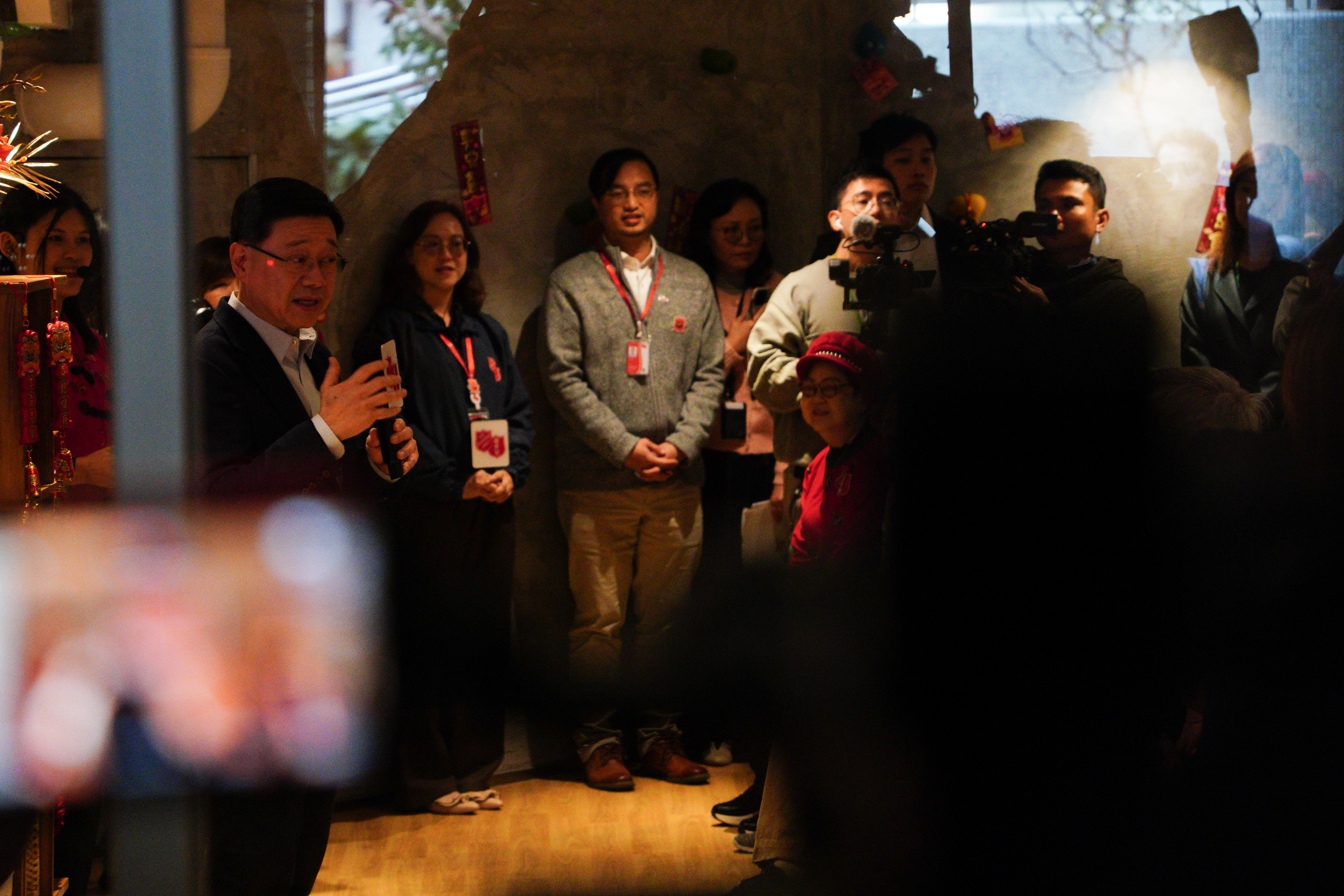 (大公文匯全媒體記者 劉妍伶)鄰近農曆新年,特首李家超今日(13日)率團落區到油麻地駿發花園探訪街坊,了解基層家庭及長者的生活狀況。期間,特首與一眾長者合唱新年經典曲目《迎春花》,共賀新春。沿途偶遇特首的市民及遊客均表示「驚喜」與「激動」。