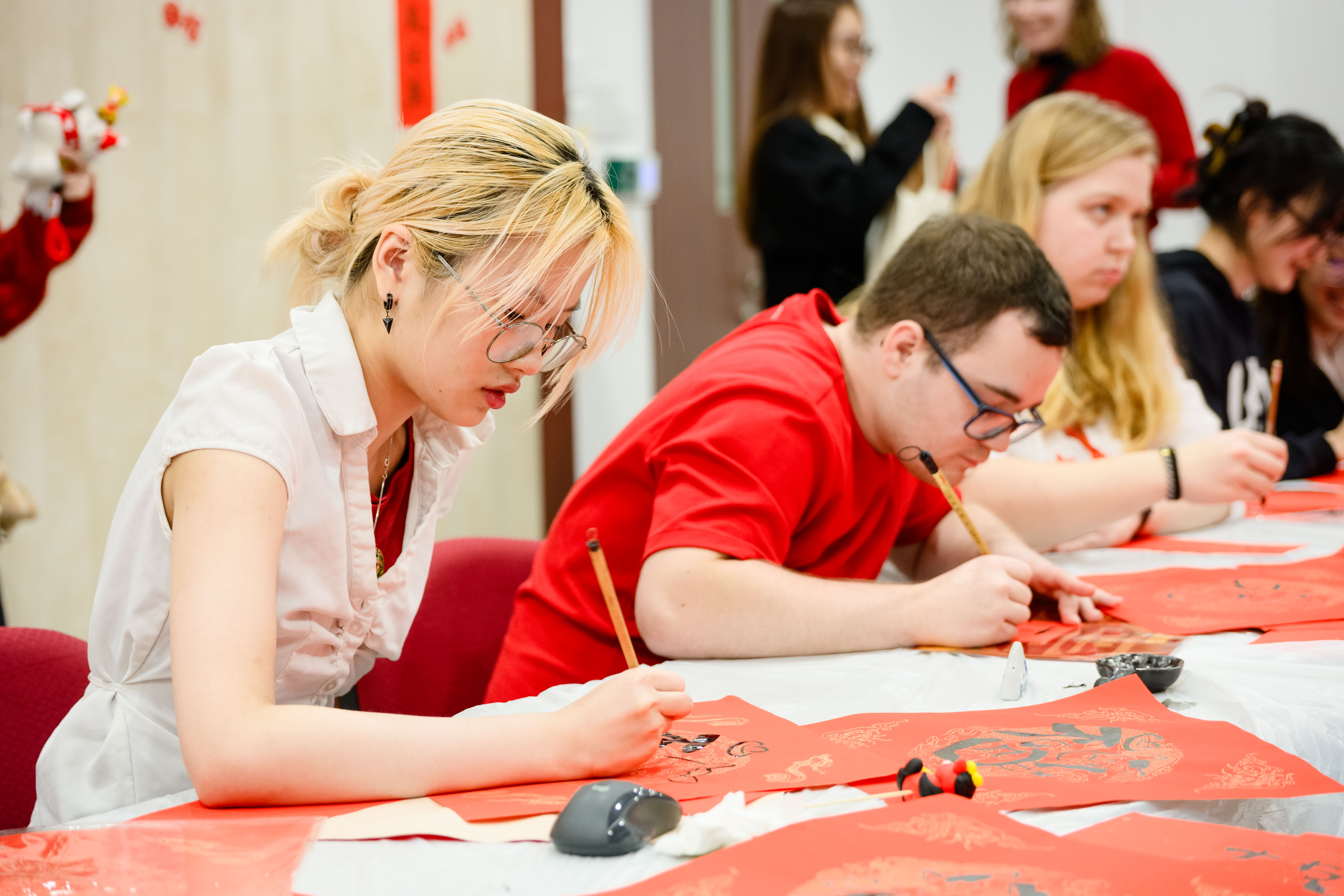 為讓海外學子深度感受春節的獨特魅力,環球事務處專門組織了新春習俗體驗活動,來自丹麥、挪威、比利時、芬蘭、匈牙利、哈薩克、韓國、緬甸、越南及衣索比亞等地的七十多位學生,第一次近距離感受中國新年的喜慶氛圍。在象徵吉祥如意的紅色佈置下,學生體驗了捏麵人、寫揮春、製作全盒,以及用金粉印刷利是封。這些傳統工藝不僅展現了香港人過傳統新年的特色,也讓大家體驗到非物質文化遺產的魅力。