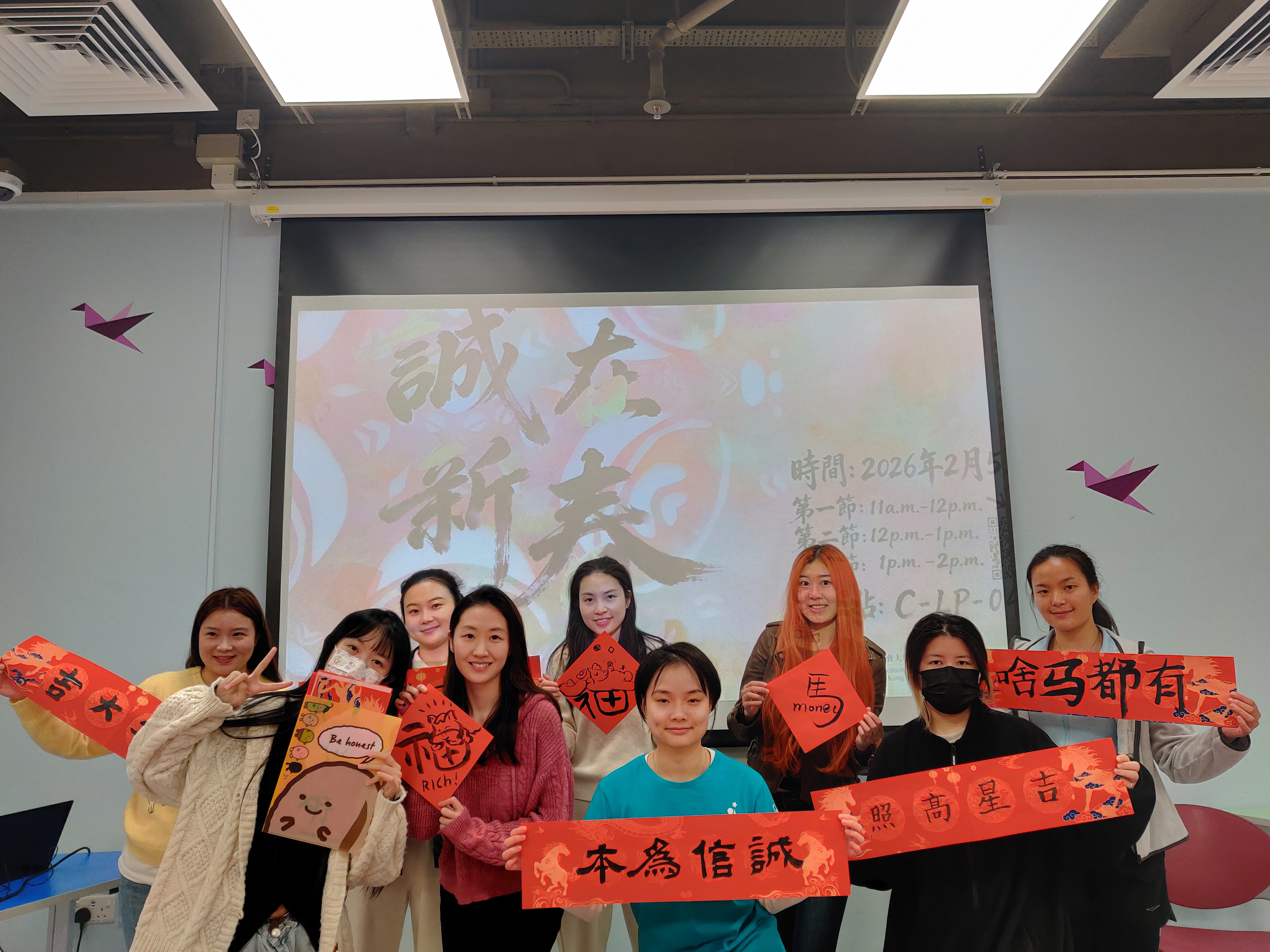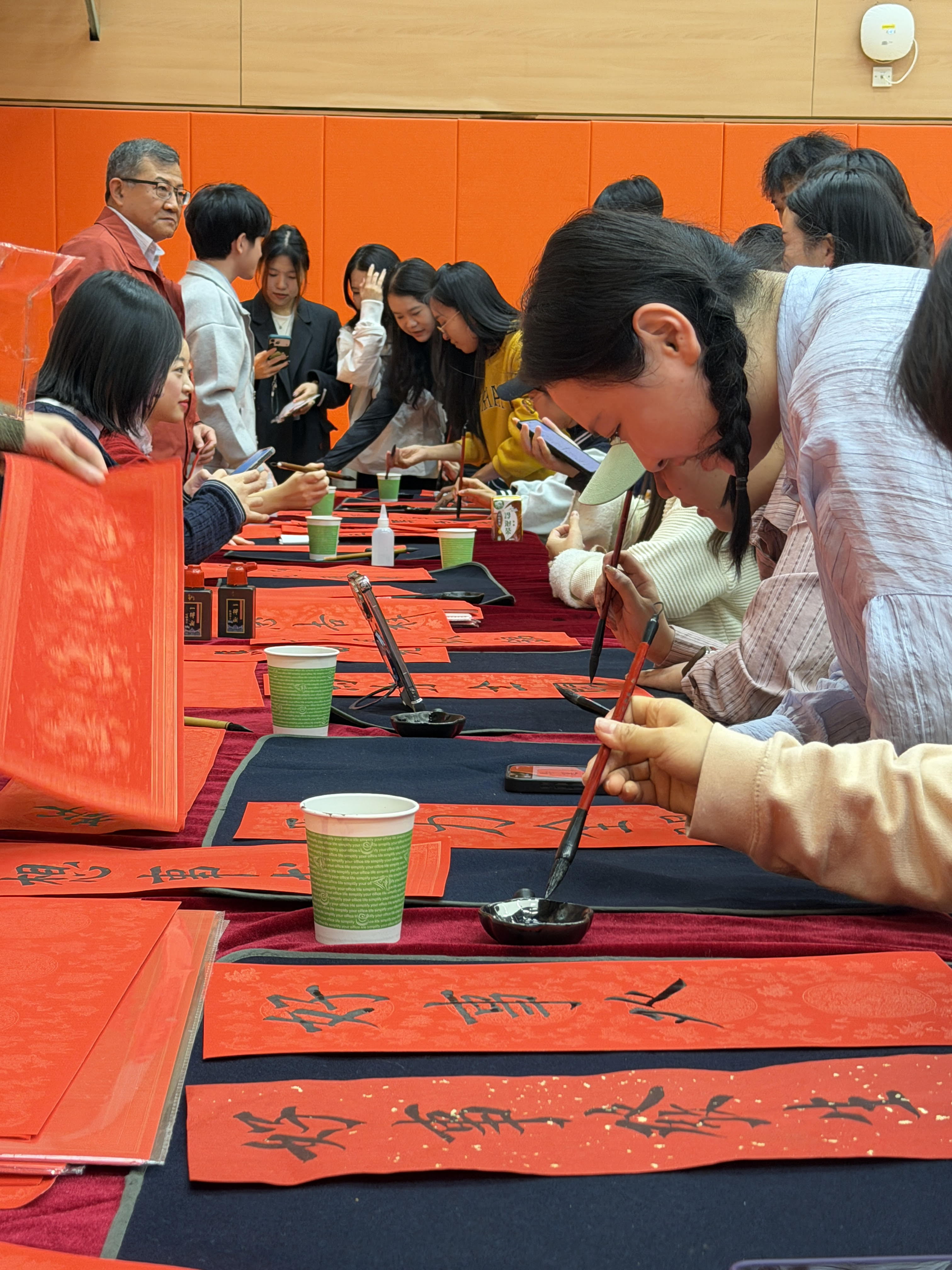 研究生院則延續傳統,舉辦新春同樂活動。今年特別加入馬年元素,近200位同學現場親手製作馬年主題花燈、縫製小馬公仔,國學中心導師即場揮毫,並指導大家書寫揮春,讓大家感受中華書法文化的博大精深。