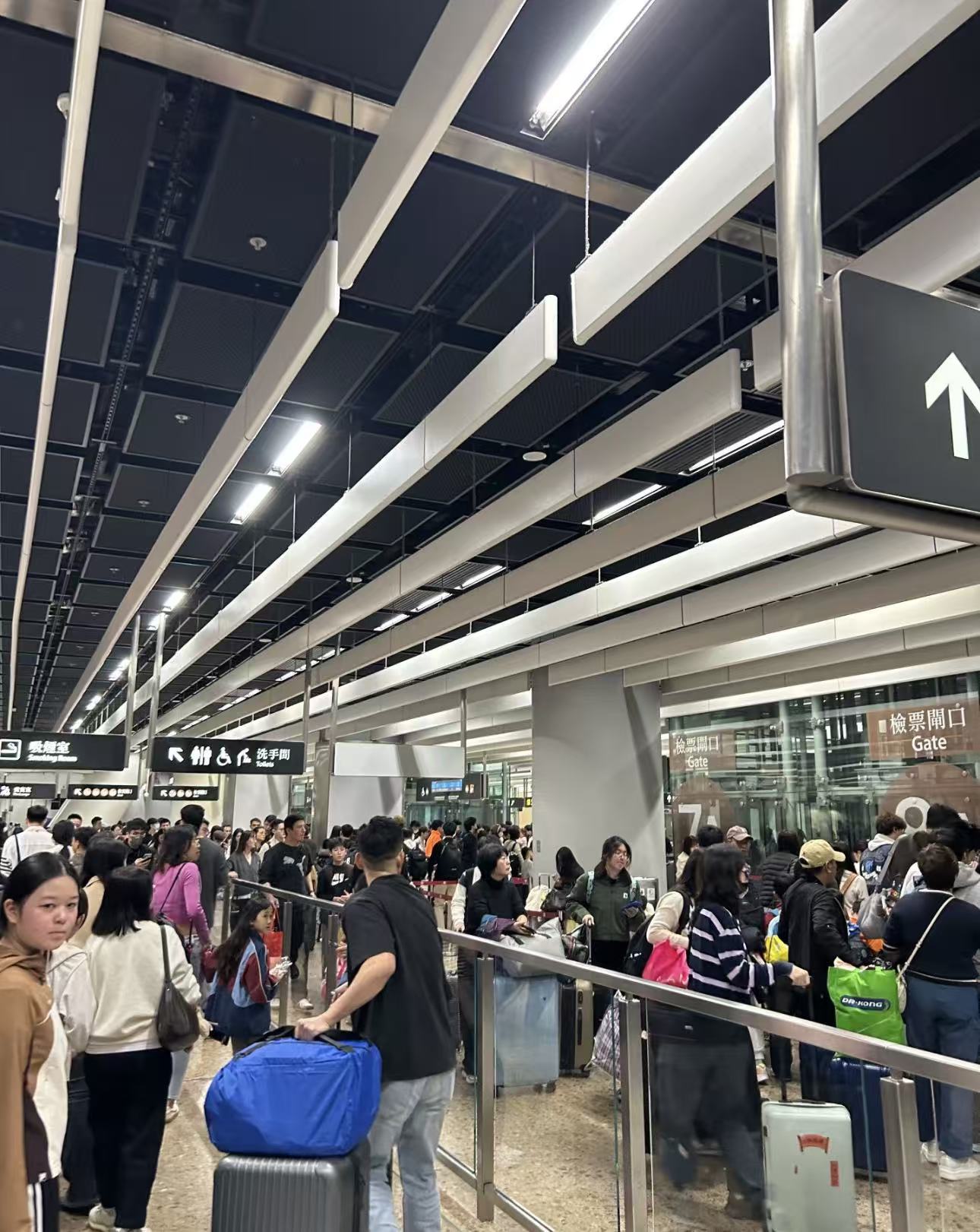 有下午提前請假返鄉的市民表示,在西九龍站排隊檢票時,「人多到網絡都很卡」,更指有遇到列車提前2分鐘發車的情況,但整體過關較暢順。
