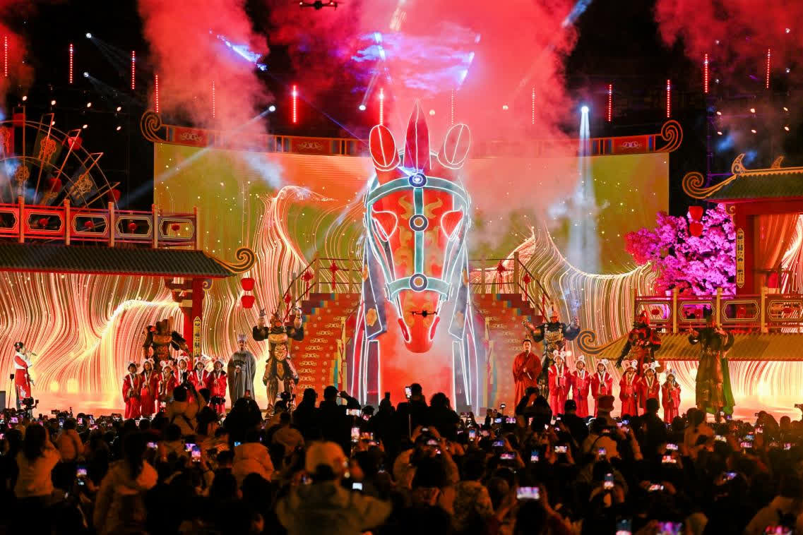 策馬三國迎新歲,燈映蓉城煥古祠。2月13日晚,隨着百米長的四川客家龍舞奔騰而出、機甲「五虎上將」一一亮相,以「策馬三國·遇見成都」為主題的2026武侯祠成都大廟會正式啟幕。本屆廟會將三國歷史文脈、非遺匠心技藝與前沿數字科技相融合,燈組規模創歷屆之最,以燈為媒串聯起文化傳承與文旅體驗。