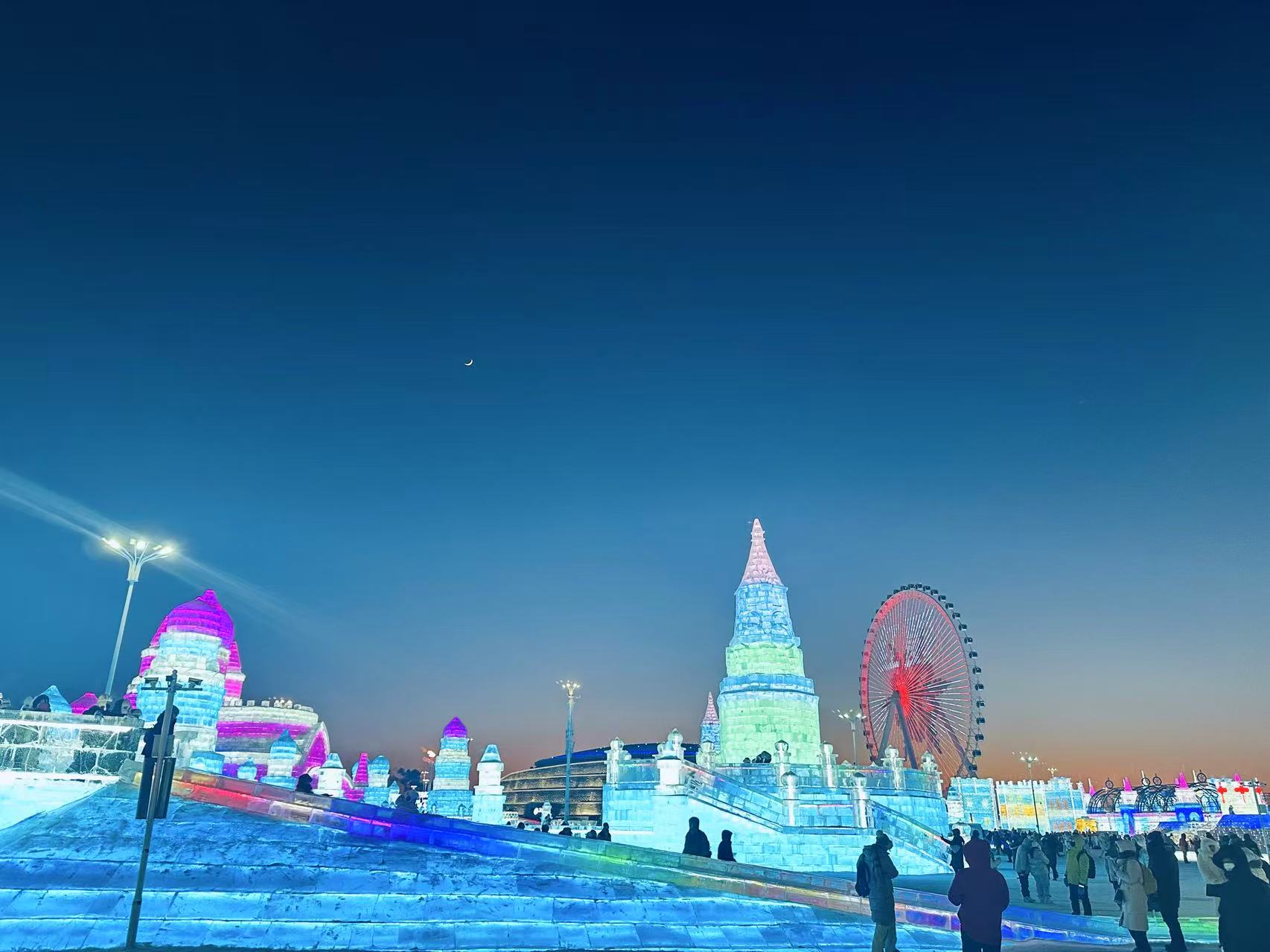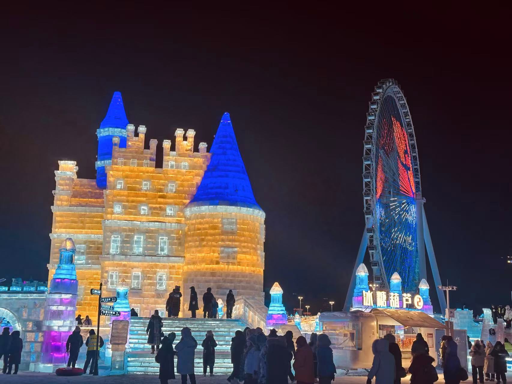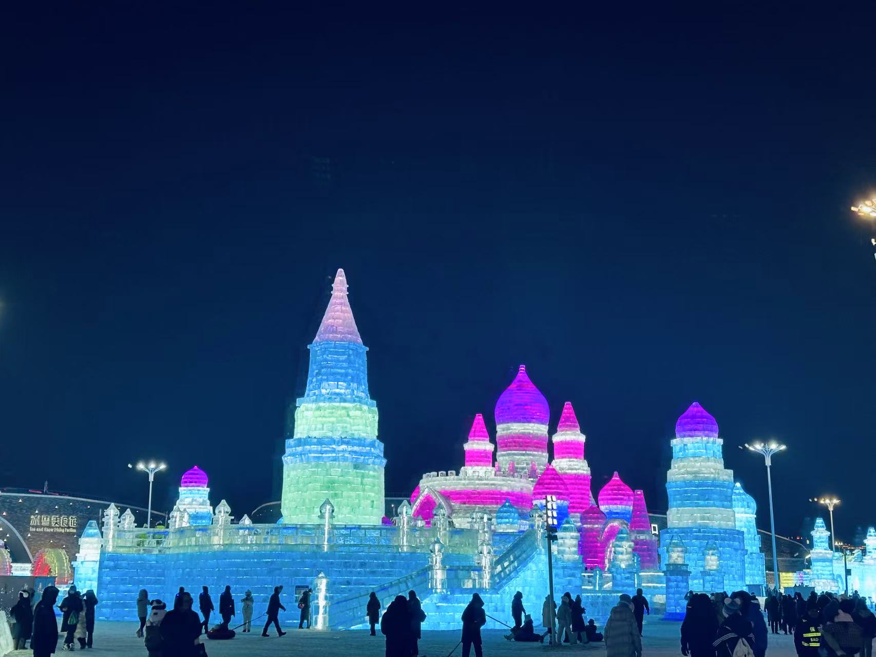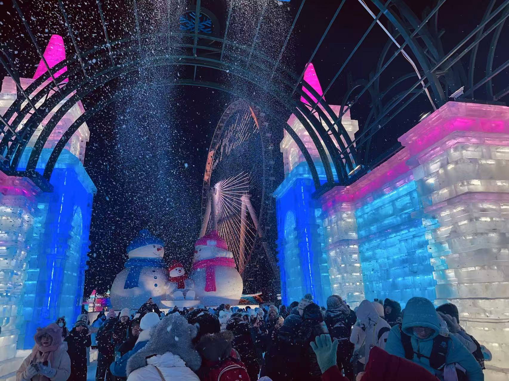 (By Yu Haijiang and Wang Xinxin in Harbin)On the north bank of the Songhua River in Harbin, temperatures dipping to minus 20°C have not dampened the enthusiasm of domestic and international tourists for ice and snow experiences. The 27th Harbin Ice and Snow World, spanning a record 1.2 million square meters — larger than Beijing's Forbidden City — has created a breathtaking, fairy-tale-like atmosphere. Visitors from around the world linger among the stunning ice buildings, their exclamations echoing in many languages.