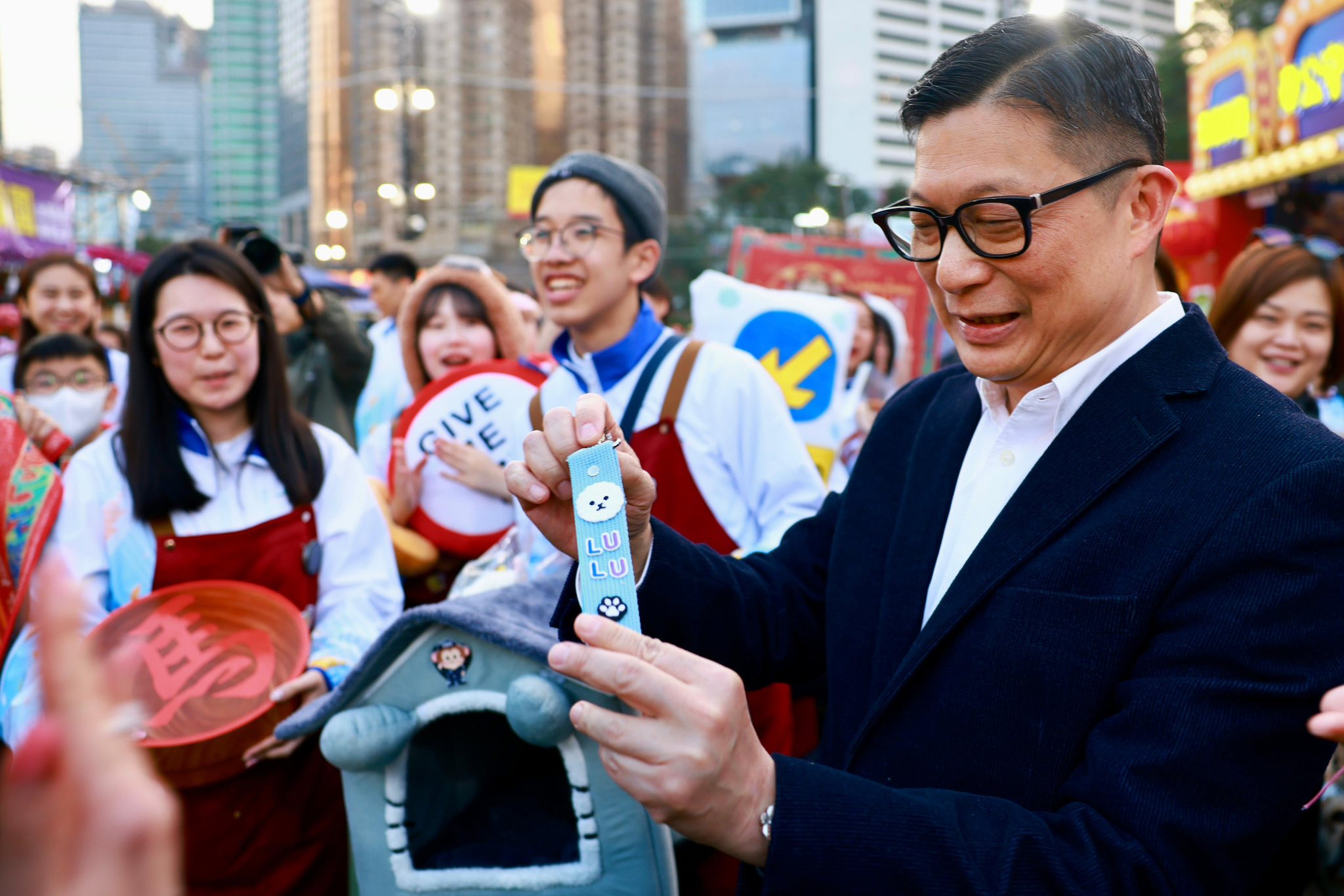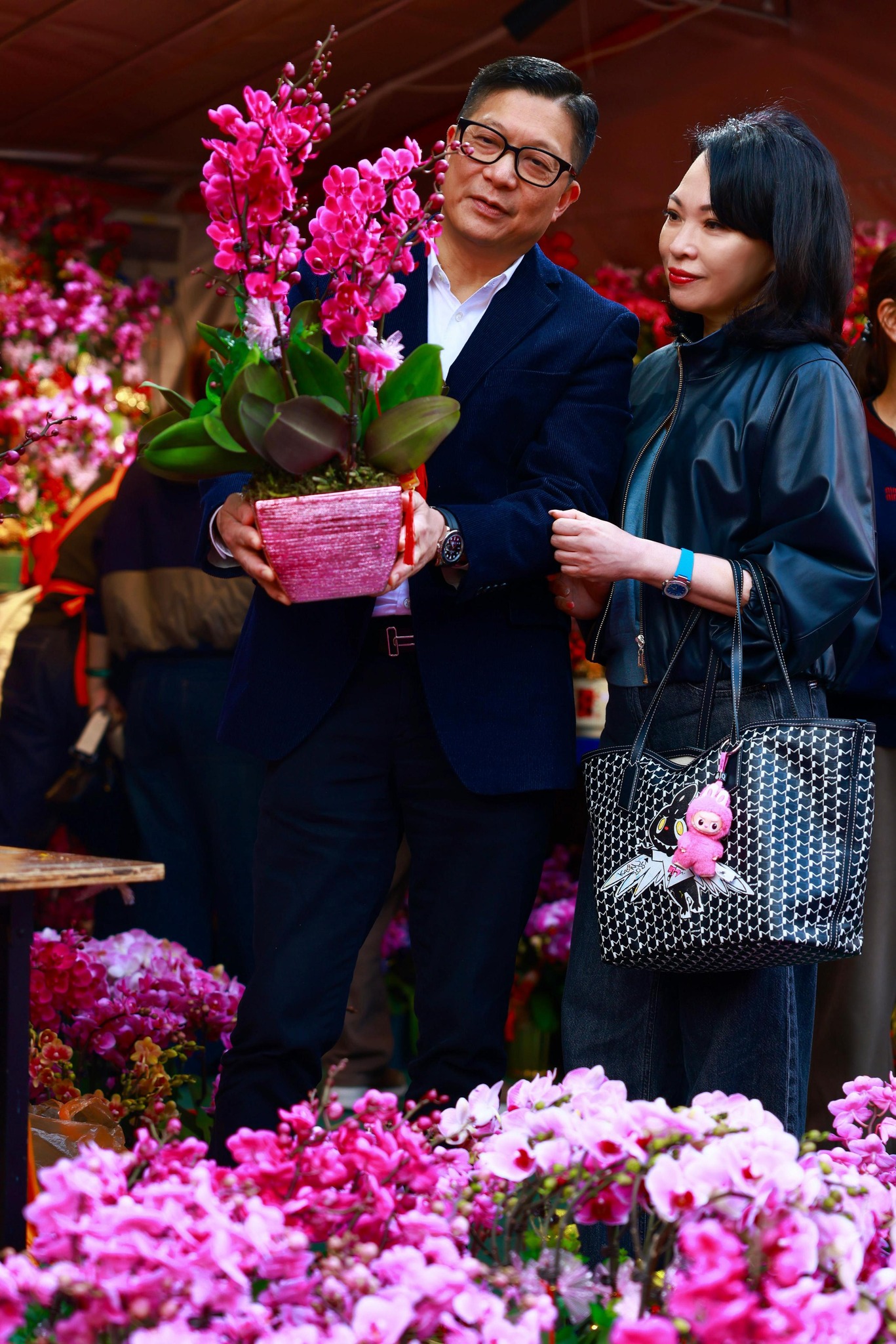 鄧炳強在社交平台發文表示,每年都會到維園逛逛年宵市場,感受農曆新年的節日氣氛,同時也支持紀律部隊的攤位。今年趁着忙裏偷閒,和夫人一起去逛花市,買了些小食,順道到警隊、懲教署和民安隊的攤位探班。「沿途仲見到好多充滿活力嘅年輕人攤檔,氣氛熱鬧。」鄧炳強說,適逢新年和情人節,他特意買了一盆漂亮的花送給太太,也祝願市民在這個節日雙雙對對,加倍幸福。