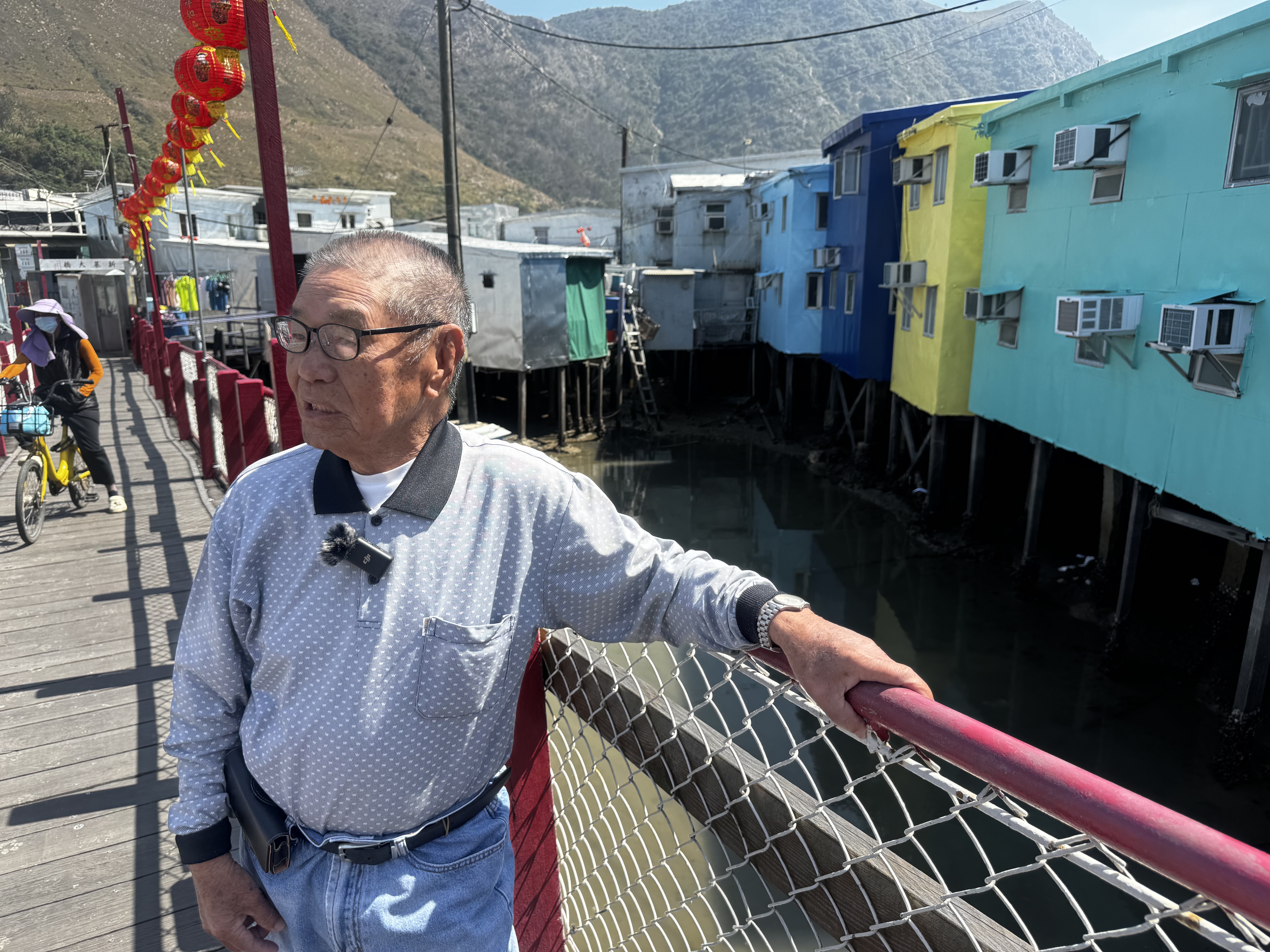 現年88歲、1938年出生的梁伯伯,多年來獨居於棚屋,子女不在身邊。他以往曾自行將外牆淋上白漆,但面對風吹雨打,難免變得陳舊。「今次班後生義工好好,好有心,幫我油到間屋咁靚。依家成日有遊客喺新基橋上面影相,話好靚,我見到都開心!」