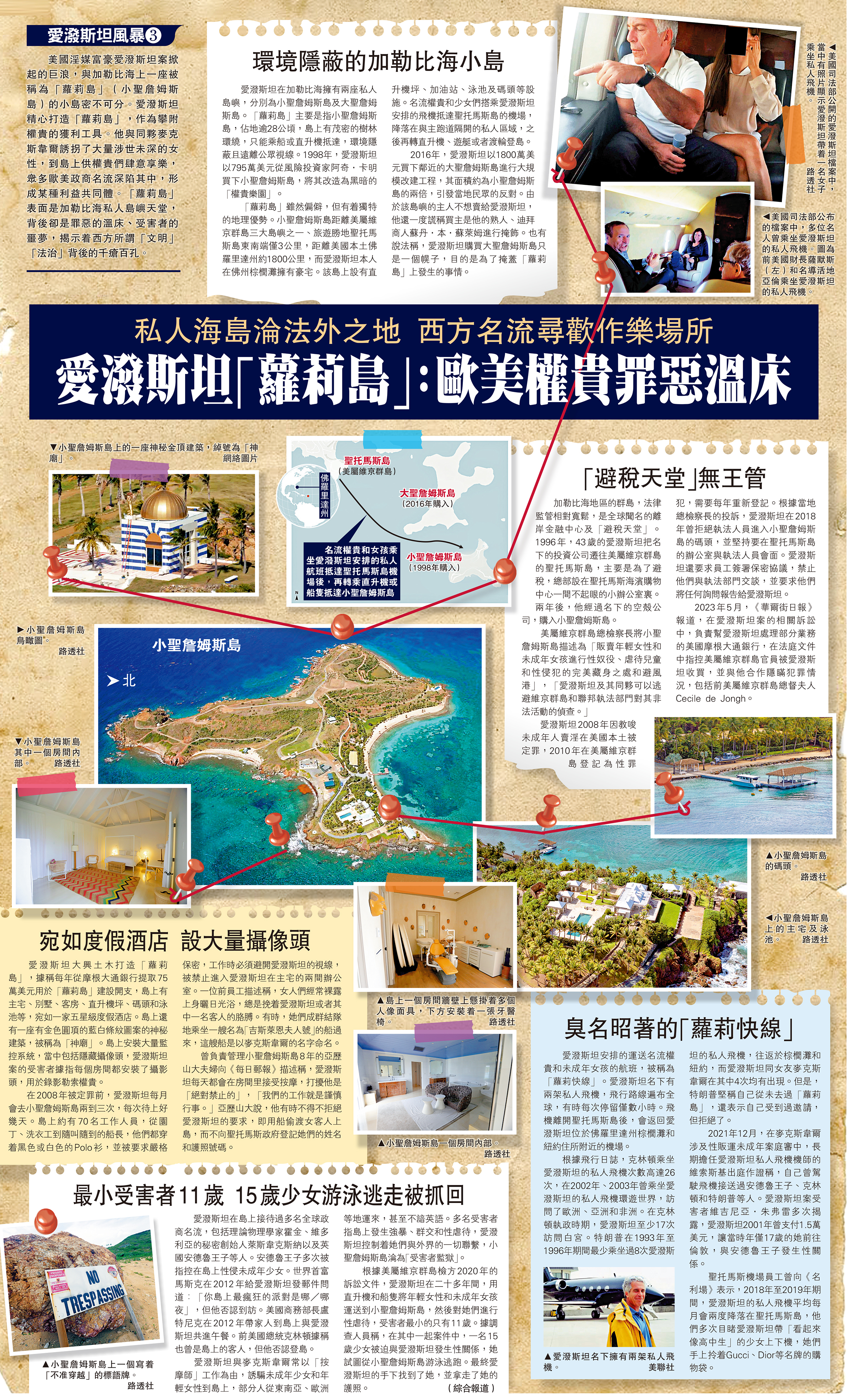 大公報綜合報道,美國淫媒富豪愛潑斯坦案掀起的巨浪,與加勒比海上一座被稱為「蘿莉島」(小聖詹姆斯島)的小島密不可分。愛潑斯坦精心打造「蘿莉島」,作為攀附權貴的獲利工具。他與同夥麥克斯韋爾誘拐了大量涉世未深的女性,到島上供權貴們肆意享樂,眾多歐美政商名流深陷其中,形成某種利益共同體。「蘿莉島」表面是加勒比海私人島嶼天堂,背後卻是罪惡的溫床、受害者的噩夢,揭示着西方所謂「文明」「法治」背後的千瘡百孔。