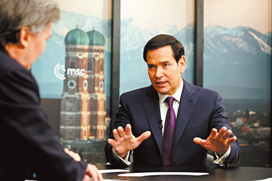 香港文匯報綜合英國《金融時報》等媒體上周五(2月13日)報道,美國國務卿魯比奧原定當天下午出席在慕尼黑安全會議期間舉行的烏克蘭問題會議,但因日程衝突,在最後一刻取消行程,導致出席這場會議的十多名歐洲國家領導人呆等,包括烏克蘭總統澤連斯基、法國總統馬克龍、德國總理默茨,以及歐盟委員會主席和北約秘書長。