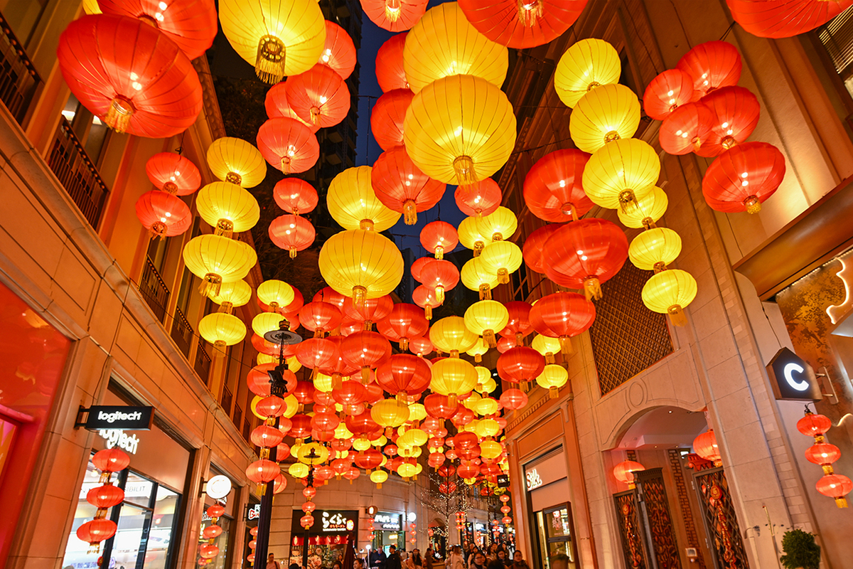 城中處處張燈結綵,洋溢喜慶氣氛。