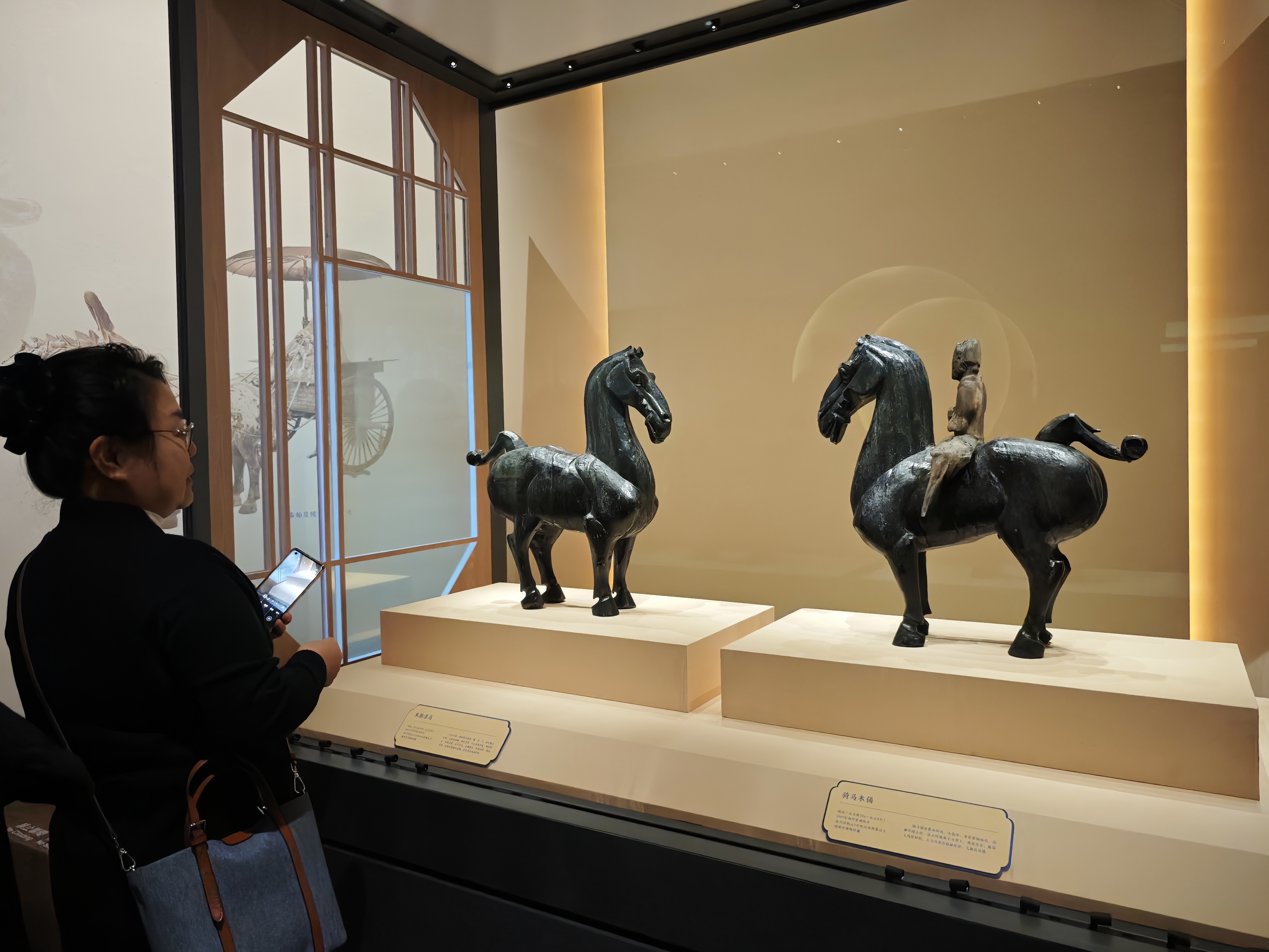 一件名為「超活化-一匹黑馬毛絨掛件」的可發聲文創產品,主打提供情緒價值。輕拍一下,就會嘶鳴,並配合發出馬蹄聲。被網友稱為「被低估的國博文創之『拍馬屁』」。現場還有一件可以動起來的一匹黑馬積木拼插擺件,拼插完成後可轉動組件,神駒四蹄生風,彷彿踏雪而來。