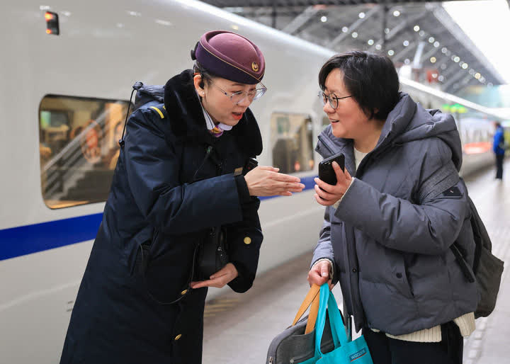 「哈爾濱冰雪大世界」主題高鐵在林海雪原中疾馳,從上海返鄉的乘客張文奇已歸心似箭。「在外打拚一年,一上車看到這些熟悉的冰雪元素,心就到家了。」他接過列車長送上的吉祥物,笑意盈盈。對於像他這樣跨越千里歸鄉的遊子來說,奔赴,是春節最深情的序章。