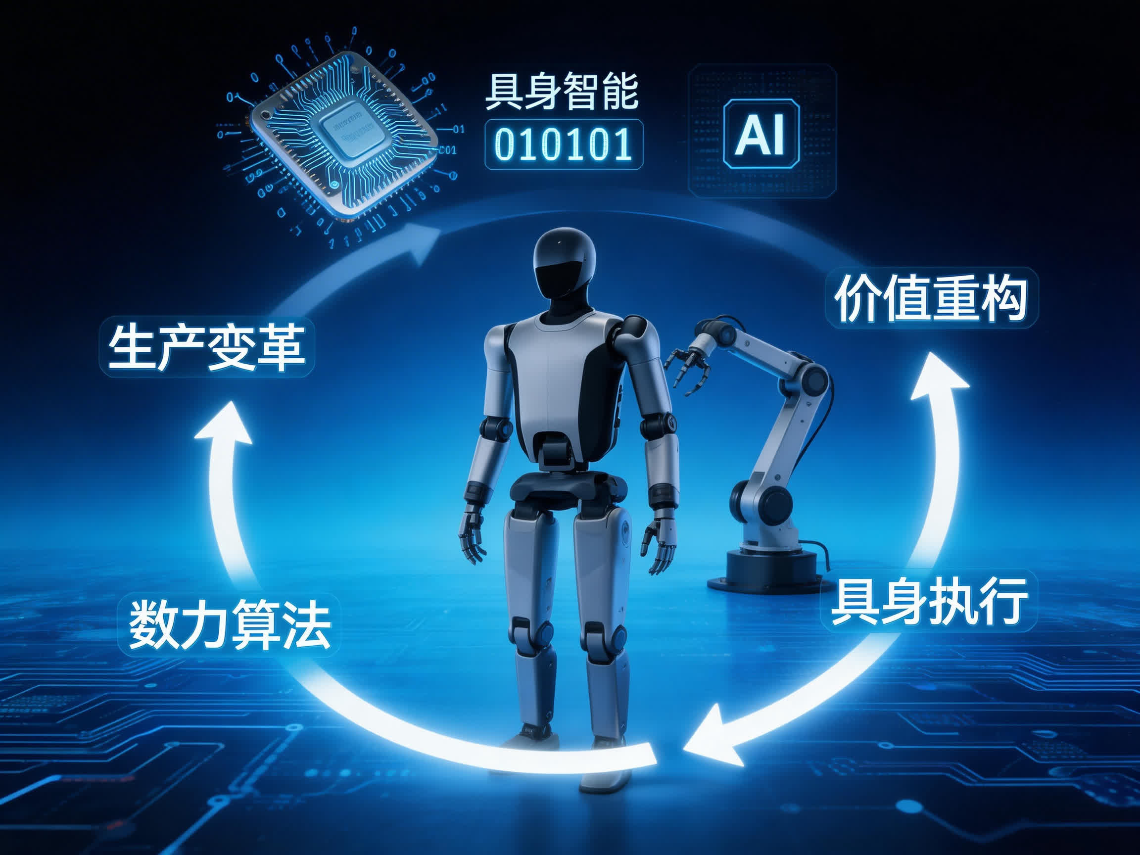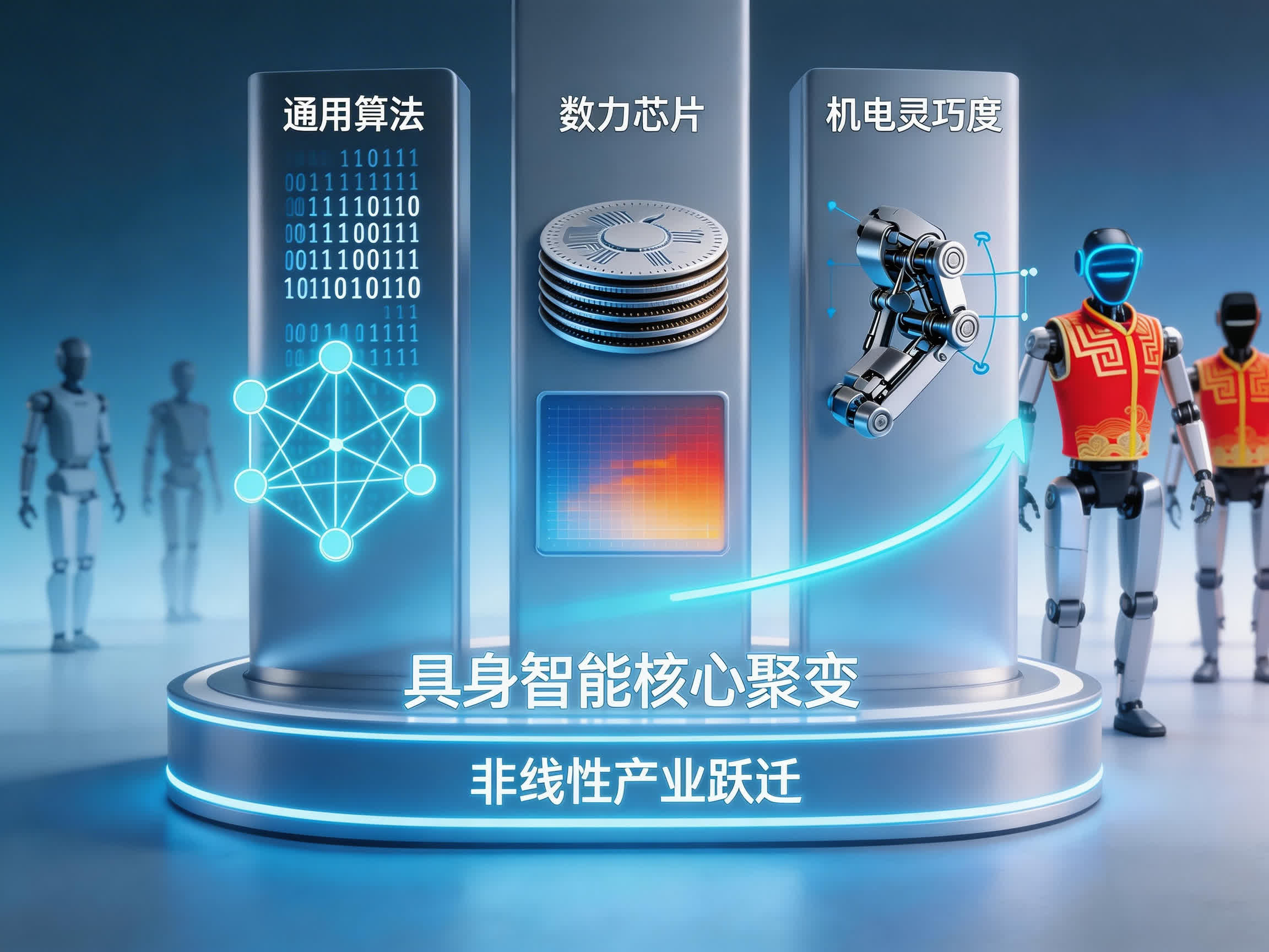 具身智能並非單一技術突破,而是算法能力、算力能力與機電系統能力協同躍遷所形成的系統性變革。這種協同並非線性疊加,而是乘數關係:算法提升強化控制精度,芯片能力決定實時反應,機電系統實現物理執行。三者一旦形成穩定閉環,生產效率的邊界將被重新定義。