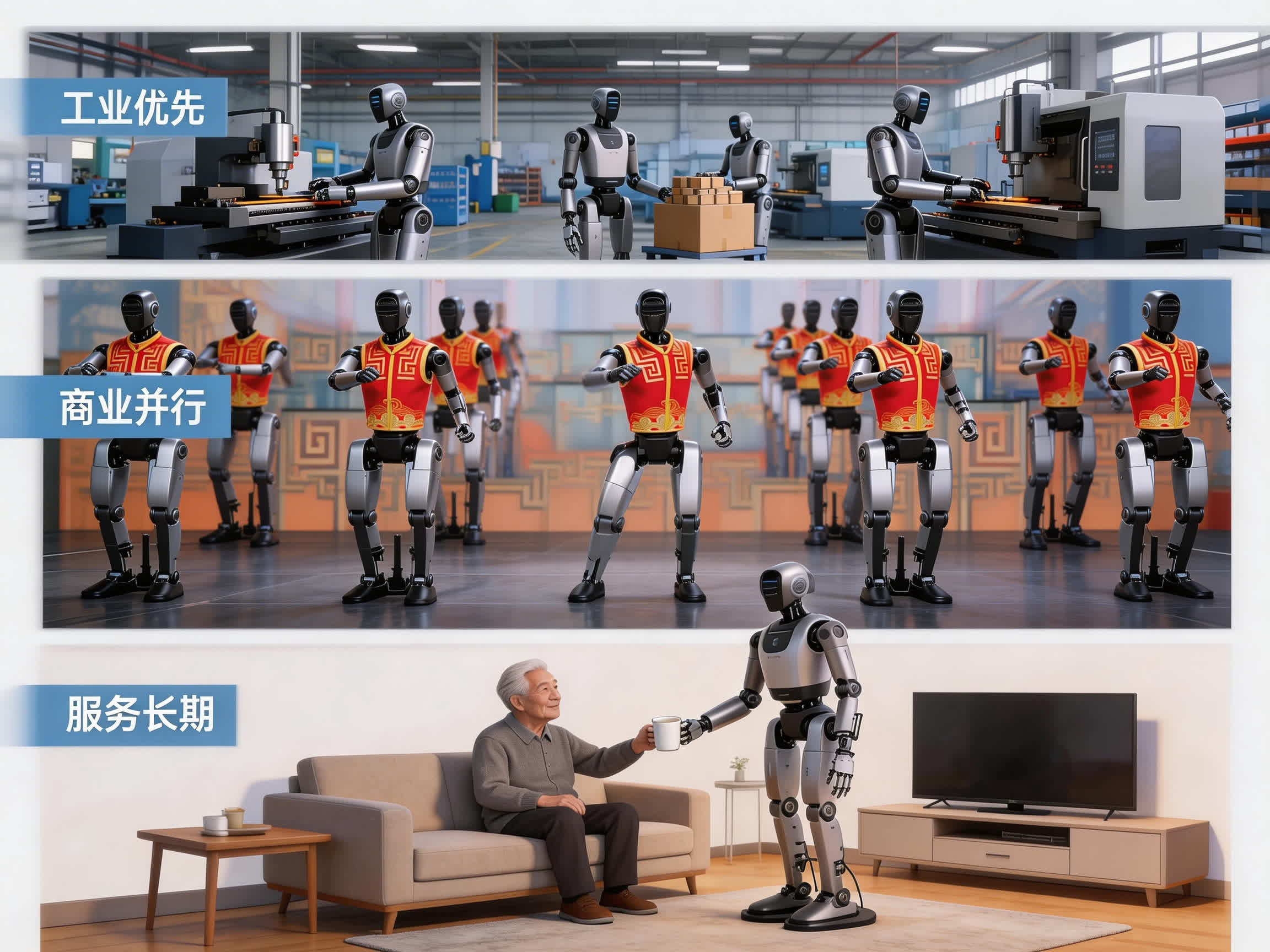 產業落地遵循現實邏輯:工業優先、商業並行、服務長期。工業場景標準化程度高,回報可測,是技術驗證的首選;商業場景形成規模擴散;養老、醫療與家庭服務等領域,則構成長期市場空間。