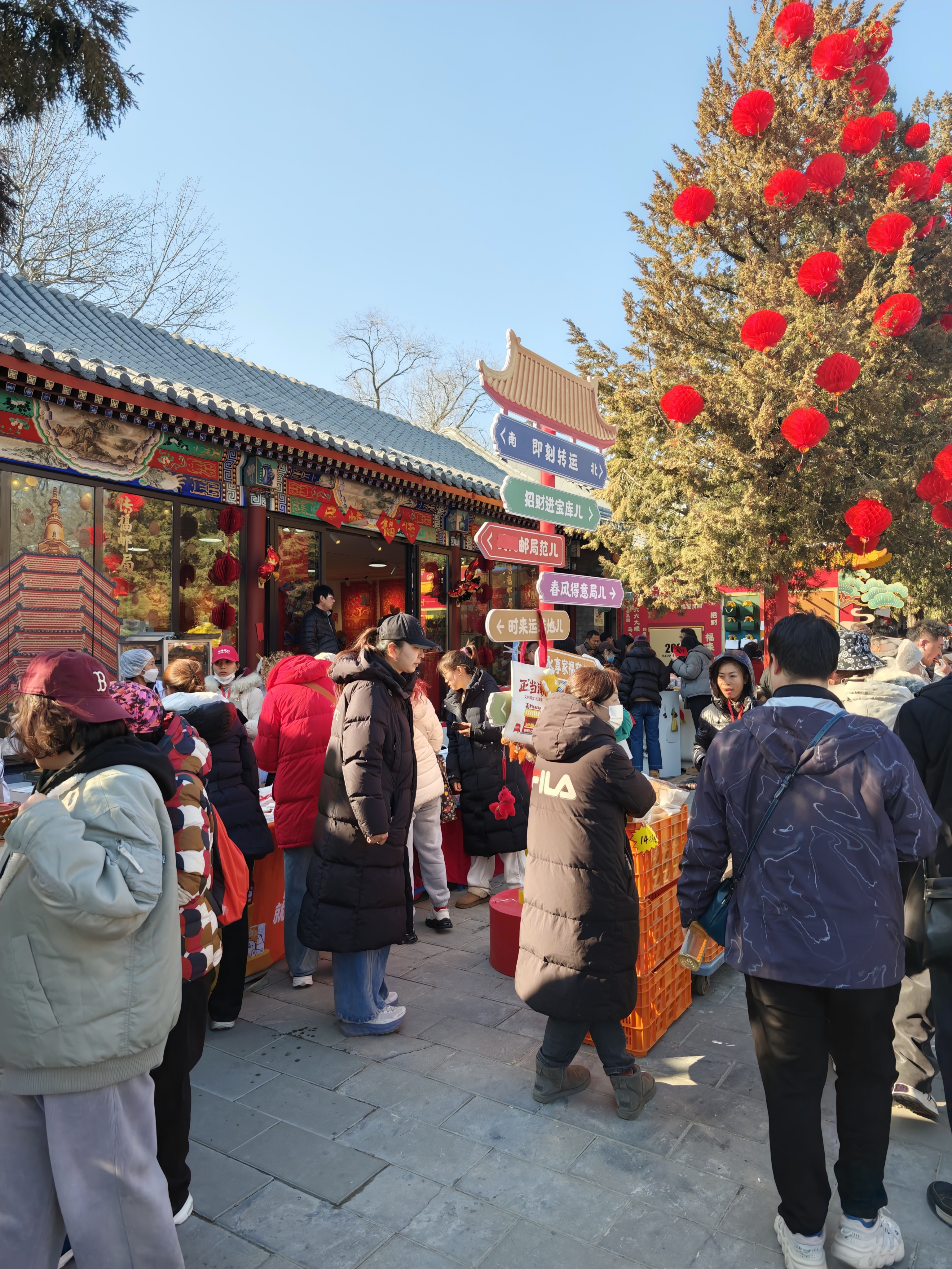 記者在廟會現場看到,祈福區古樹參天,枝幹上密密麻麻懸掛着寫滿「家宅平安」「學業有成」「事業順利」的紅色祈福帶,隨風輕揚,承載着人們對新年的美好期許。非遺體驗區熱鬧非凡,「北京範兒」沉浸式街區裏,剪紙藝人巧手翻飛,糖畫攤前香氣四溢,老北京叫賣聲此起彼伏,喚醒了深藏於記憶中的年味。