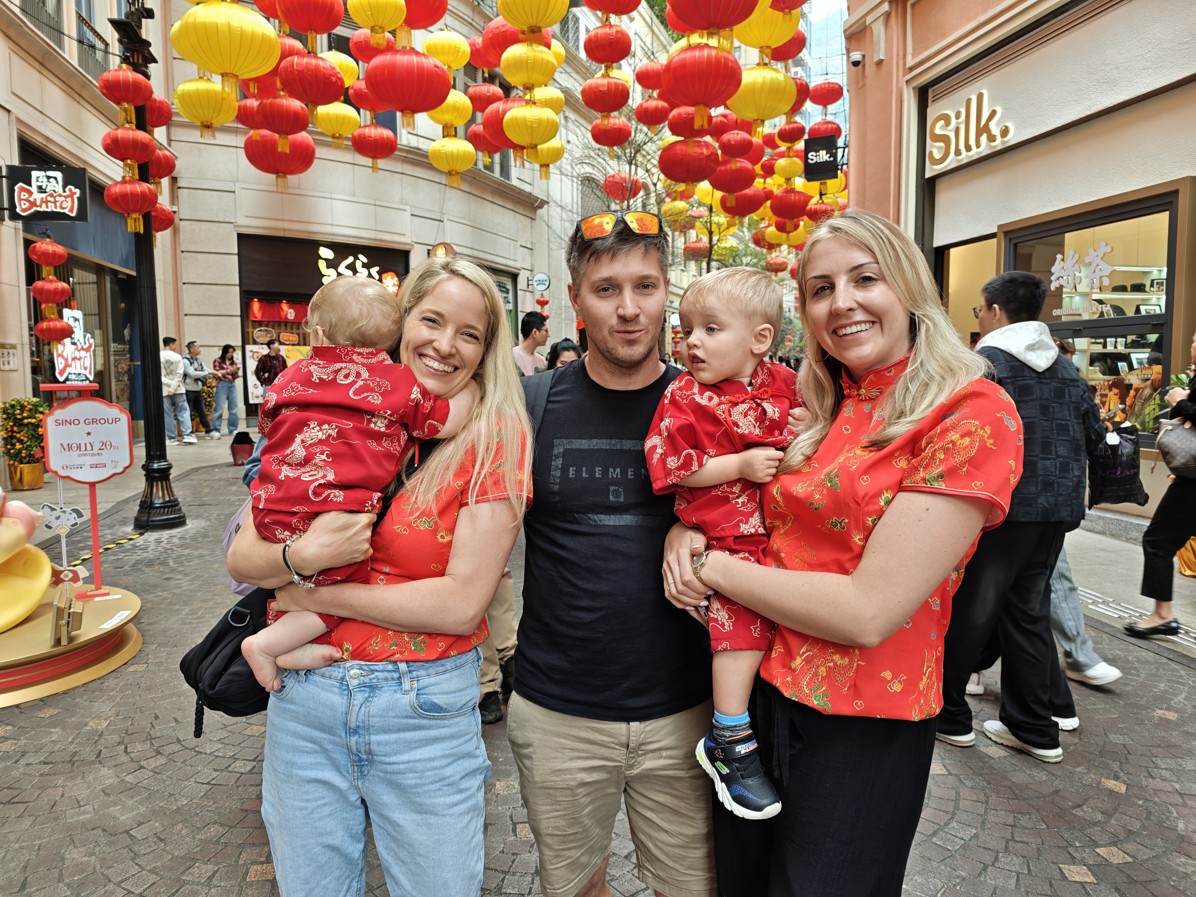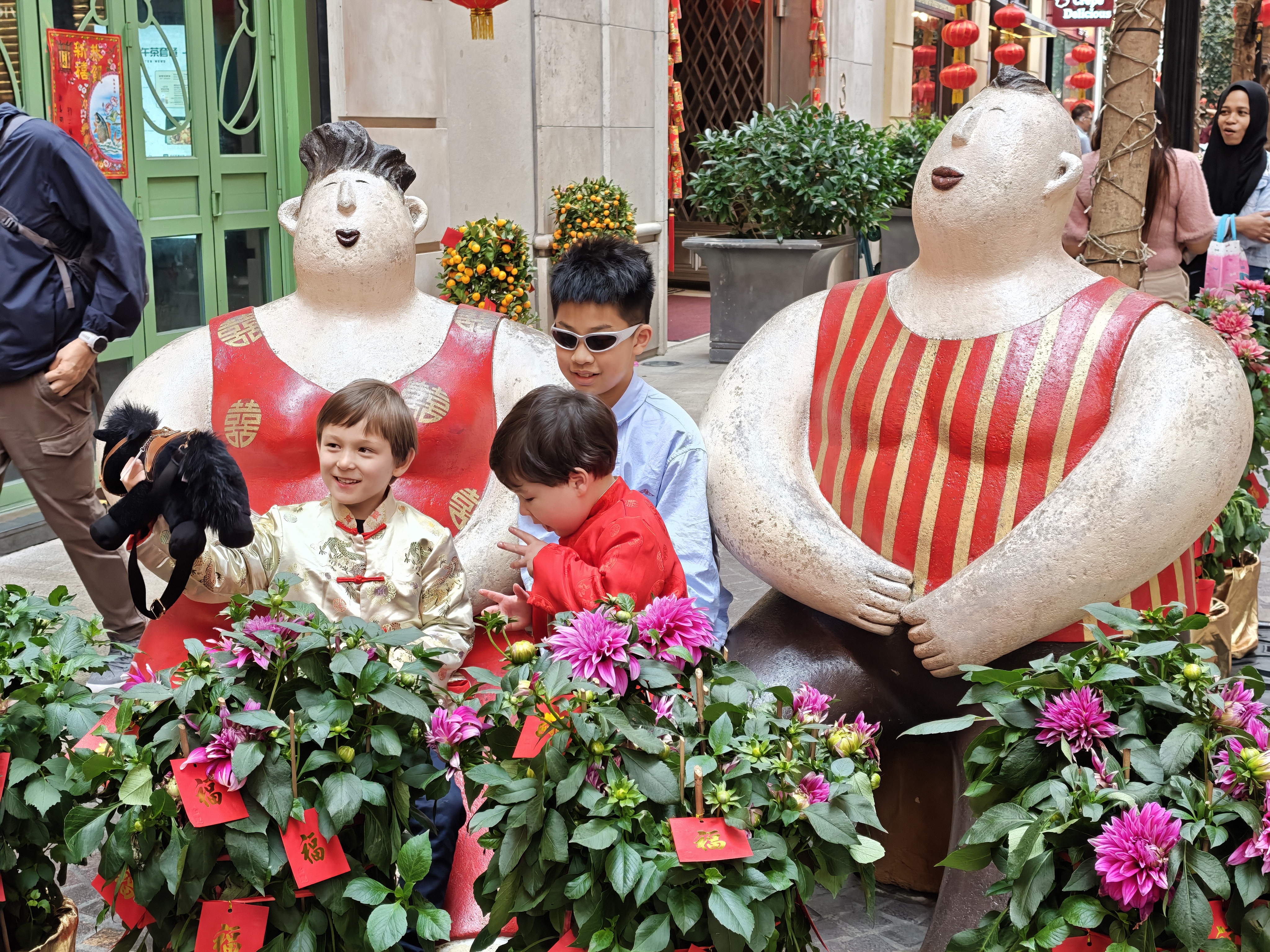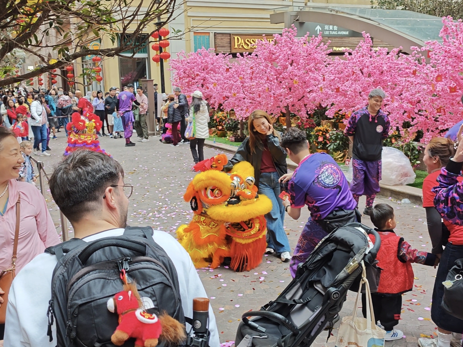 來自倫敦的遊客John一家三口剛與街邊的醒獅表演隊伍合照,對此十分興奮。他告訴記者,其妹妹在港生活,自己是趁春節前來「探親」。早前他已欣賞了西貢的美麗海景,今日則來到市區體驗新年氛圍,還特地給孩子穿上了紅紅火火的節慶服裝。利東街初一至初三會定期舉辦醒獅表演,John說自己雖在倫敦亦曾觀賞類似活動,但香港「慶祝得更隆重」;此外,街道上西式建築與中式新春裝飾的結合也令他印象深刻,直呼「漂亮」。