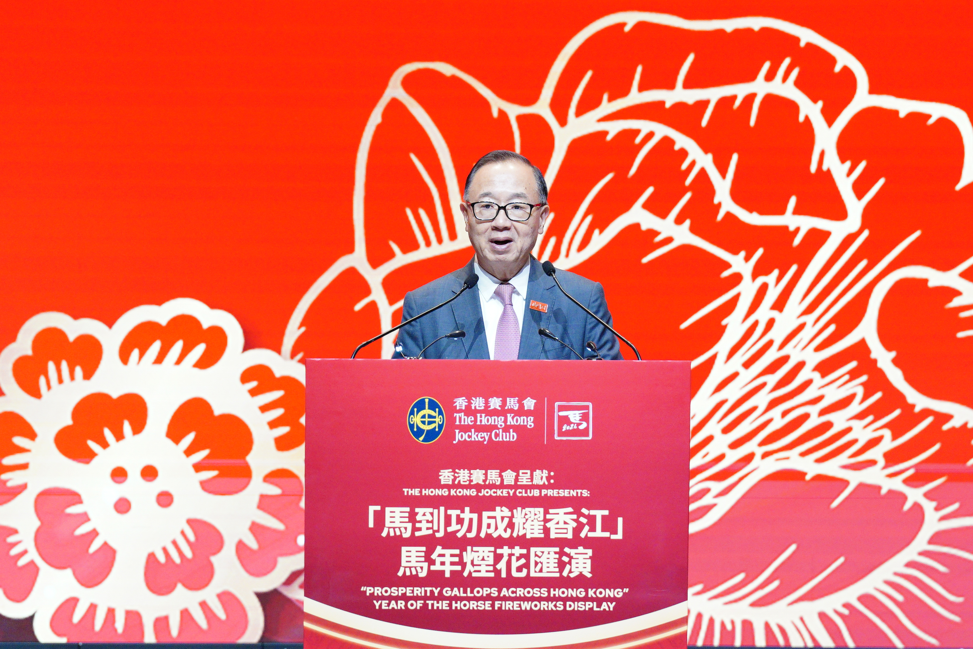 香港賽馬會主席廖長江會上表示,馬會的成就離不開「馬」。值此佳節,馬會特別推出馬年系列活動,並於大年初二贊助煙花匯演,與市民和旅客共迎新春,「祝願國家『馬耀盛世』,香港『躍馬騰飛』,市民『馬年好運』,就讓我們『同心同步同進,馳騁精彩馬年』。」