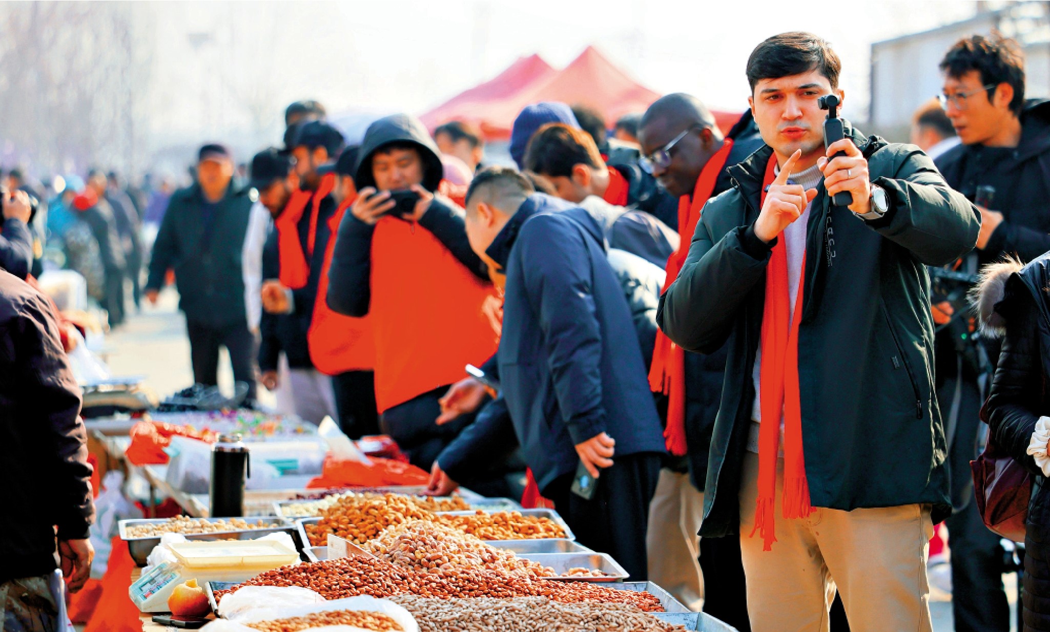 來自塔吉克斯坦的南開大學留學生吳莫凡來到天津市薊州區穿芳峪鎮大集,擠在琳琅滿目的年貨攤位間,趕大集、嘗小吃、看秧歌。「太熱鬧了。」26歲的吳莫凡興奮地說,「我看到了中國人過春節的煙火氣。」