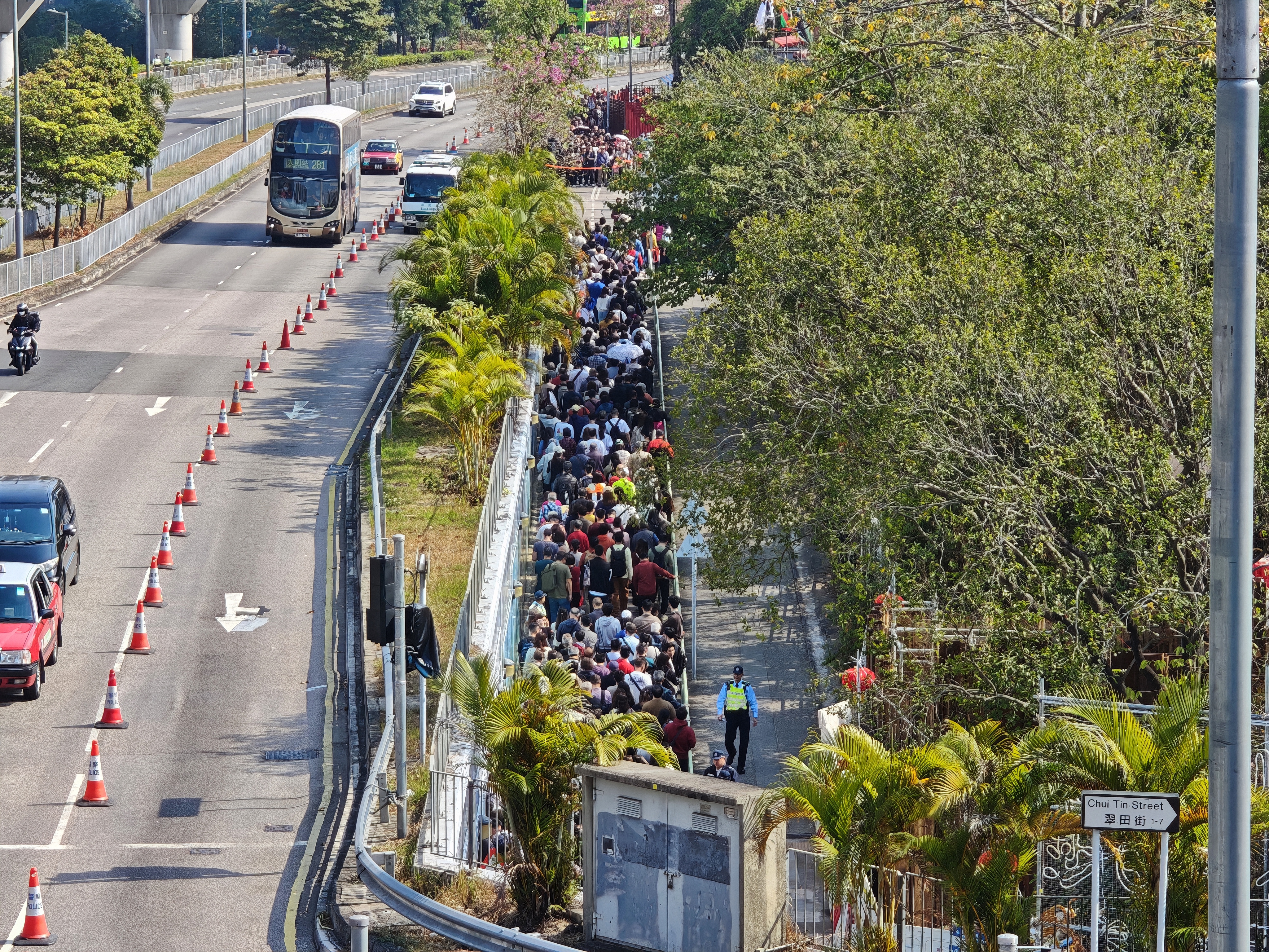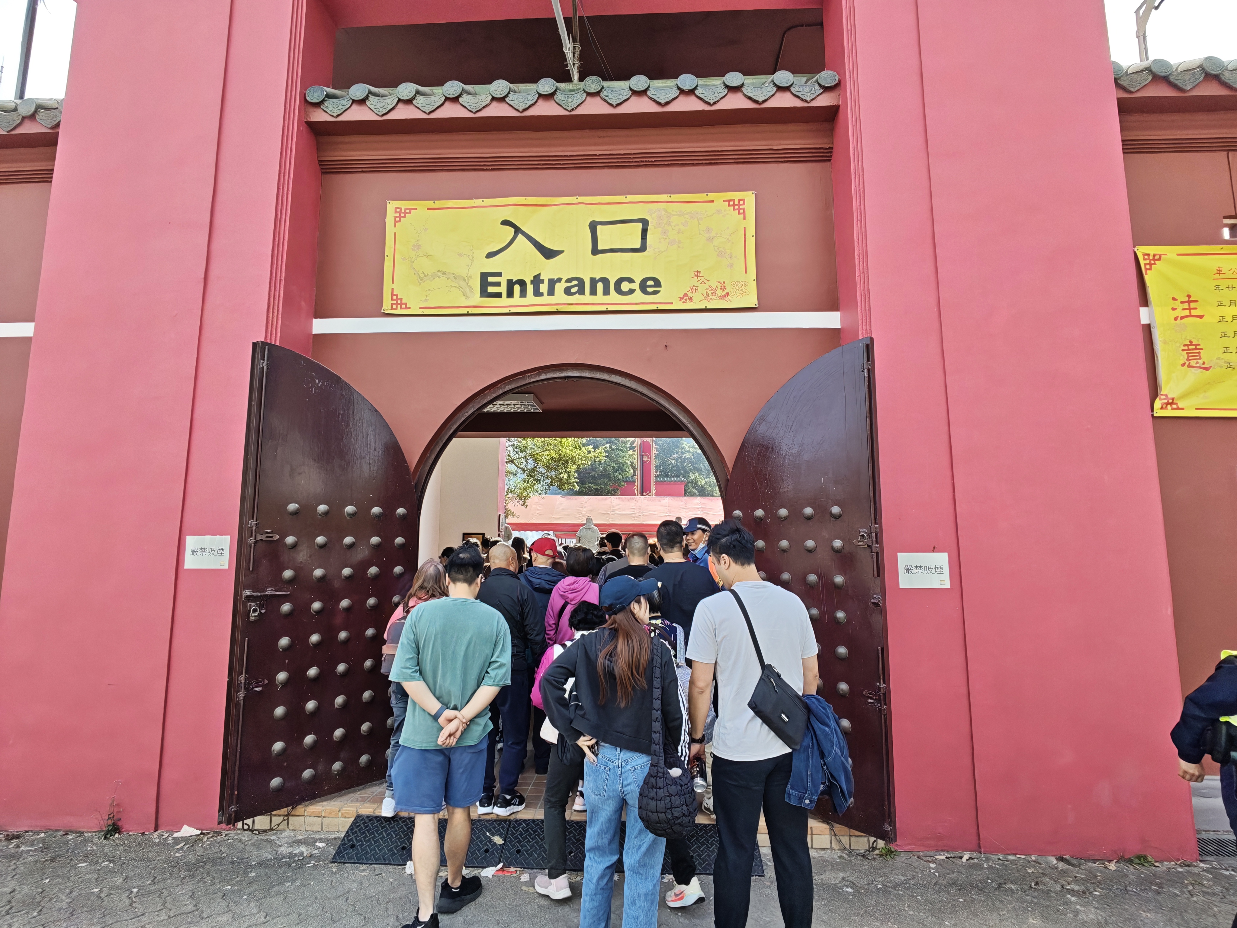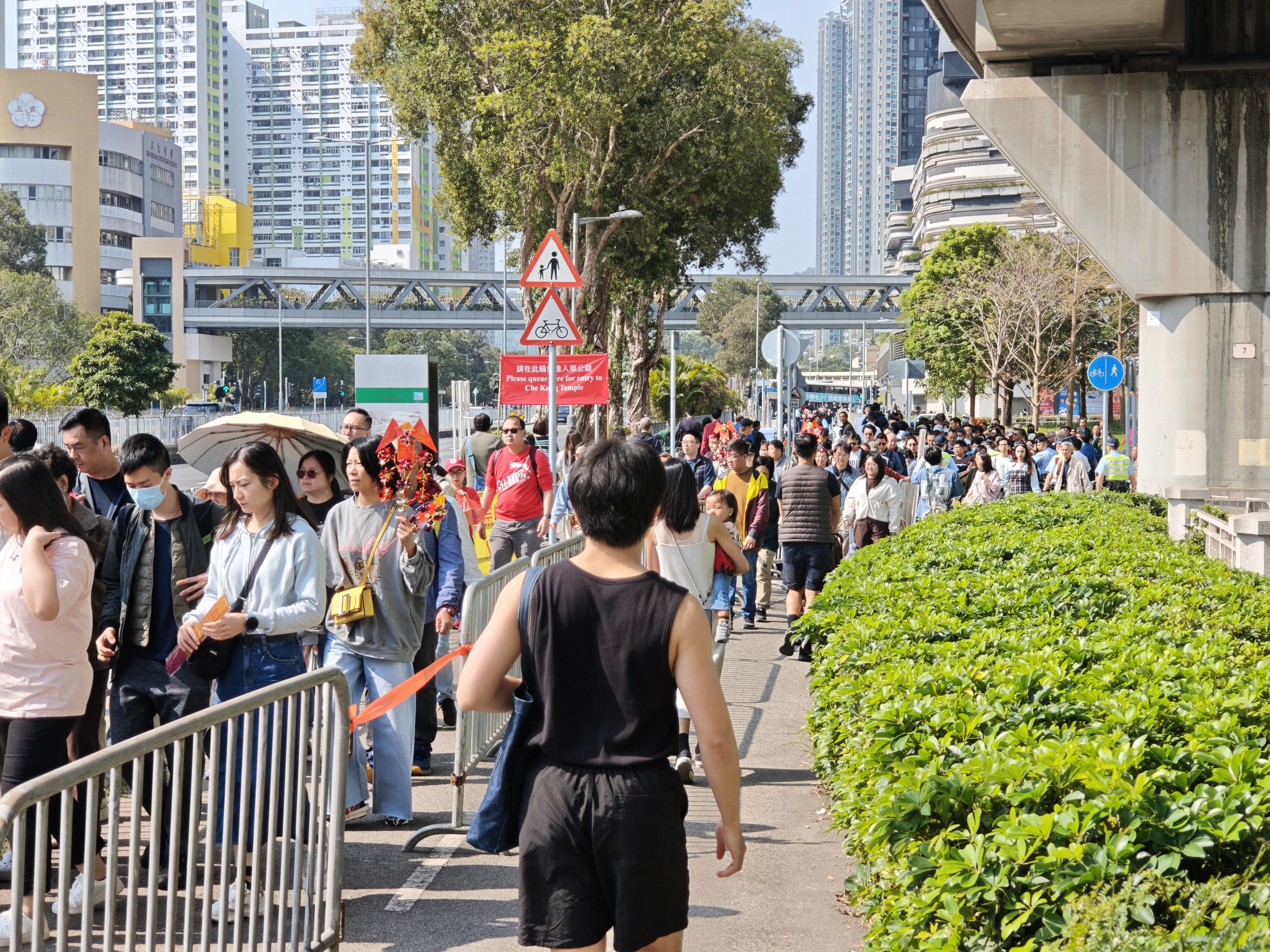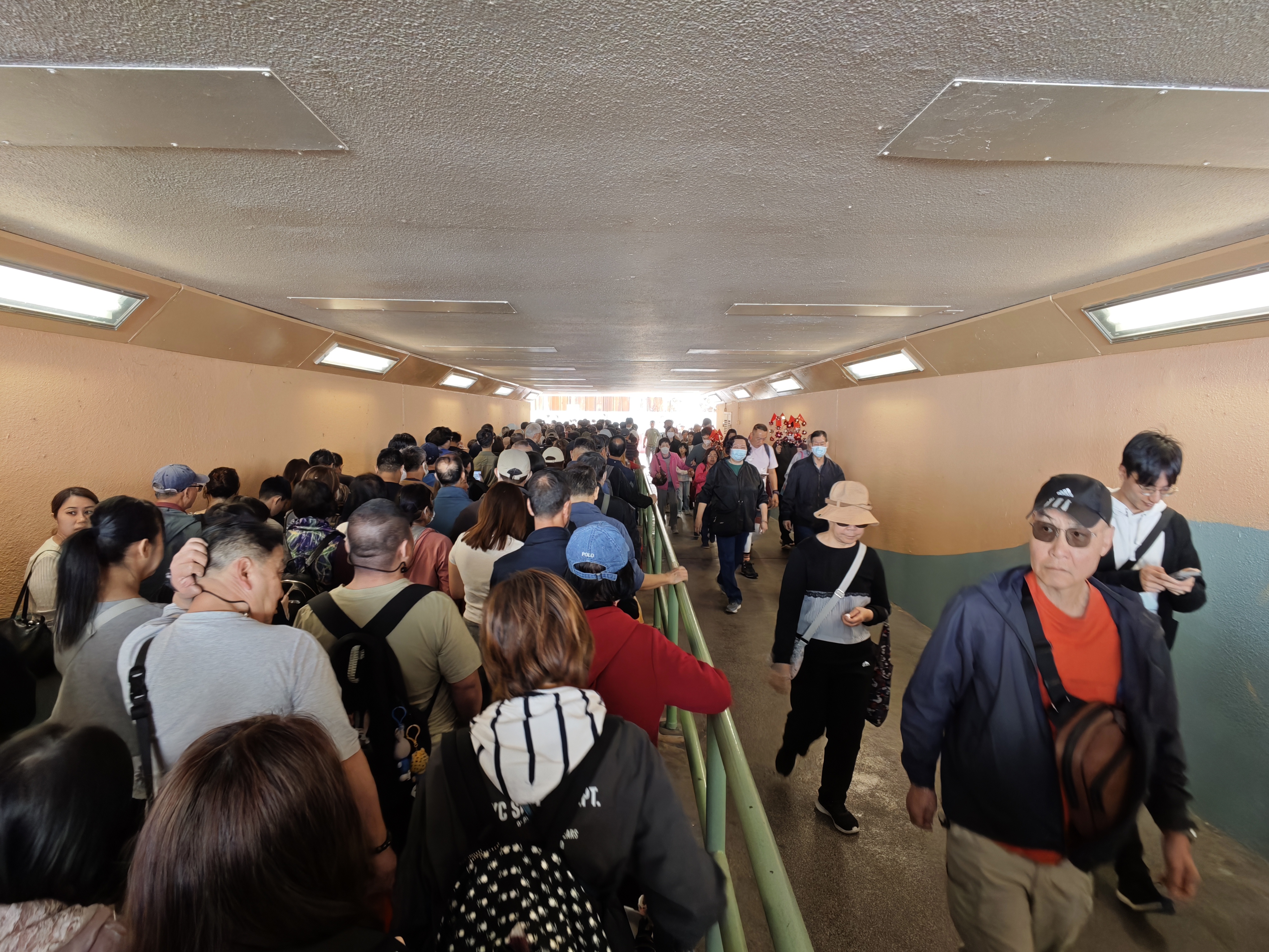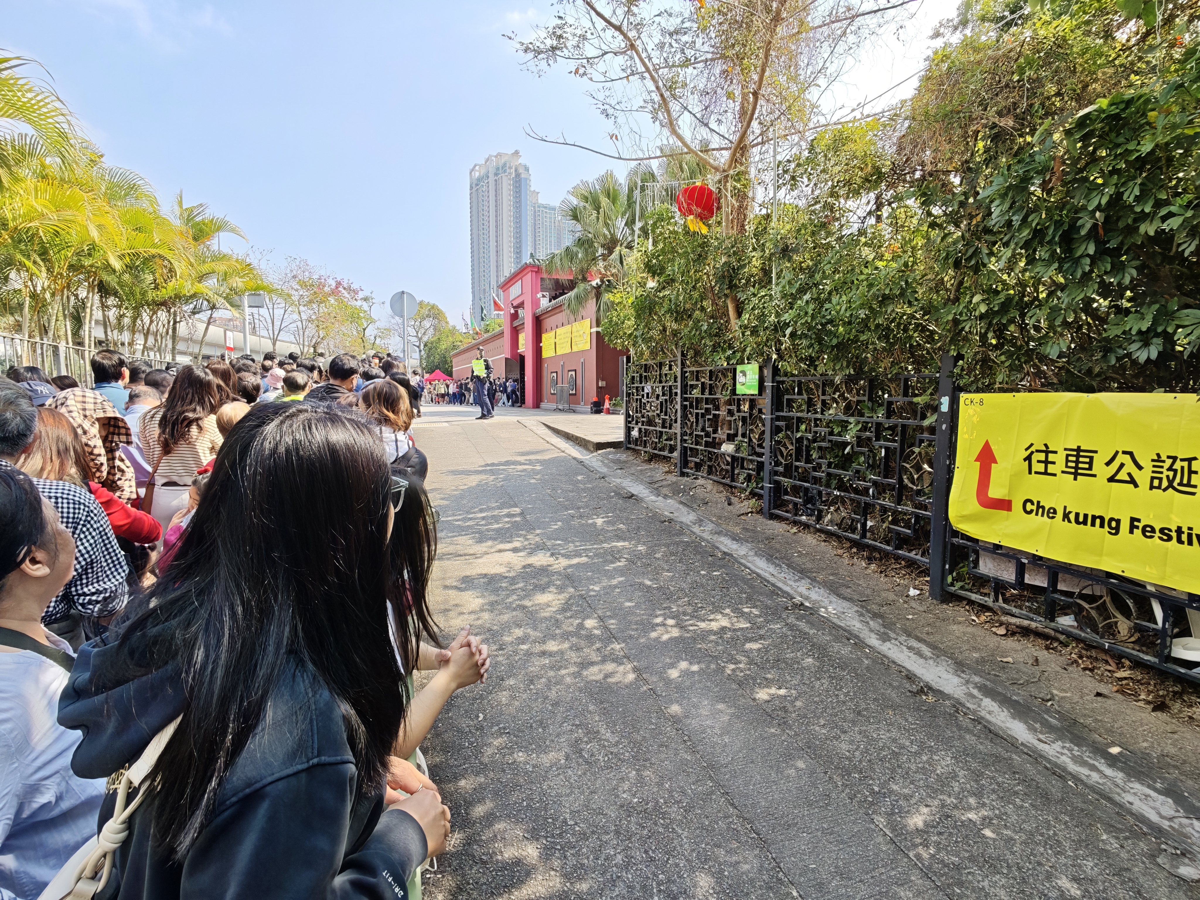 記者觀察,今早約10時排隊人龍自廟入口經車公廟路地下隧道一直排至城門河沿岸,人龍長近200米。記者亦現場實測,排隊近半小時後成功入場。
