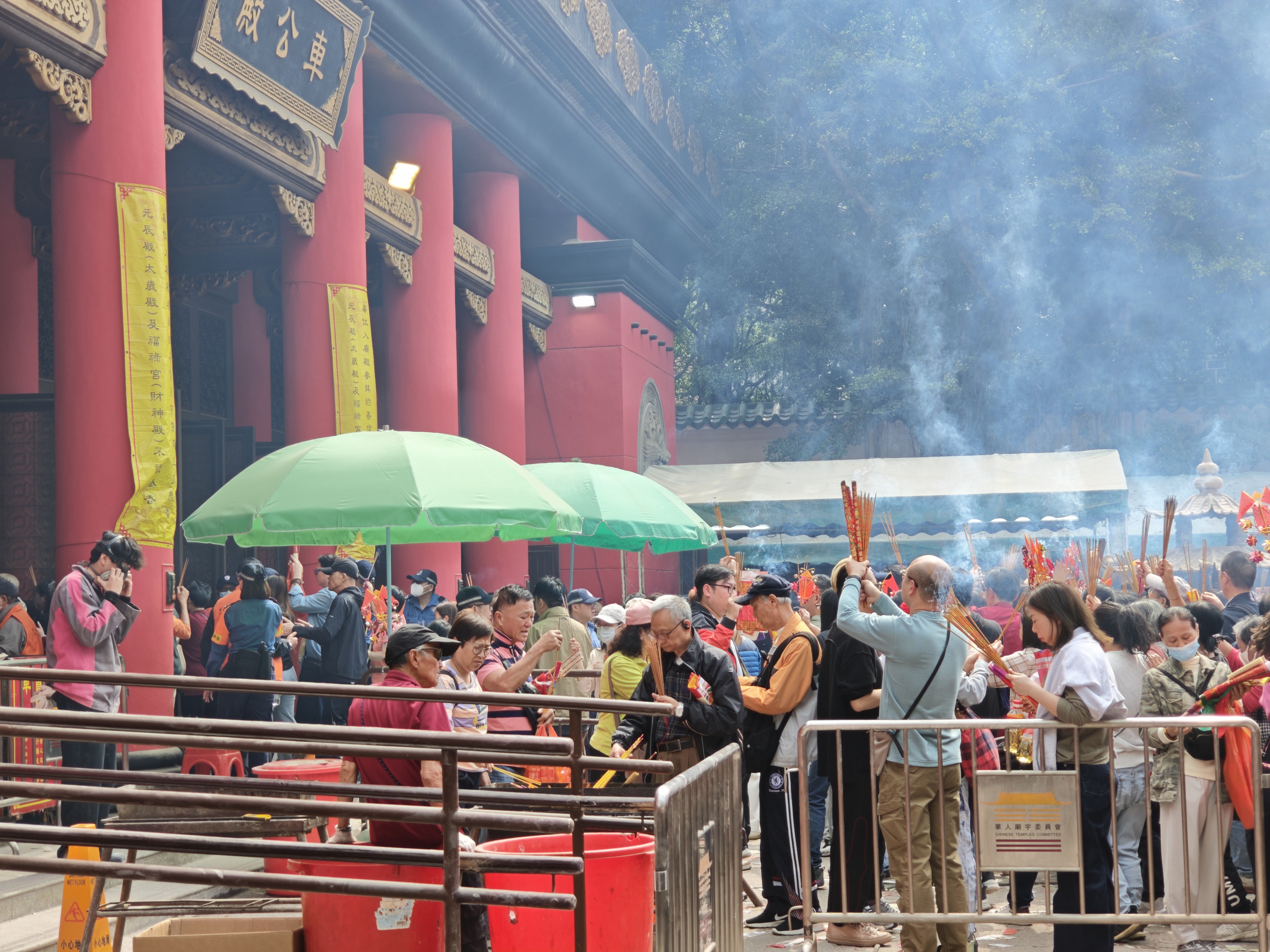 據華人廟宇委員會公告,車公廟自昨日(18日)年初二晚11時通宵開放至今晚8時。廟方規定,進入車公廟廟殿參神的人士只能攜帶3支細香。