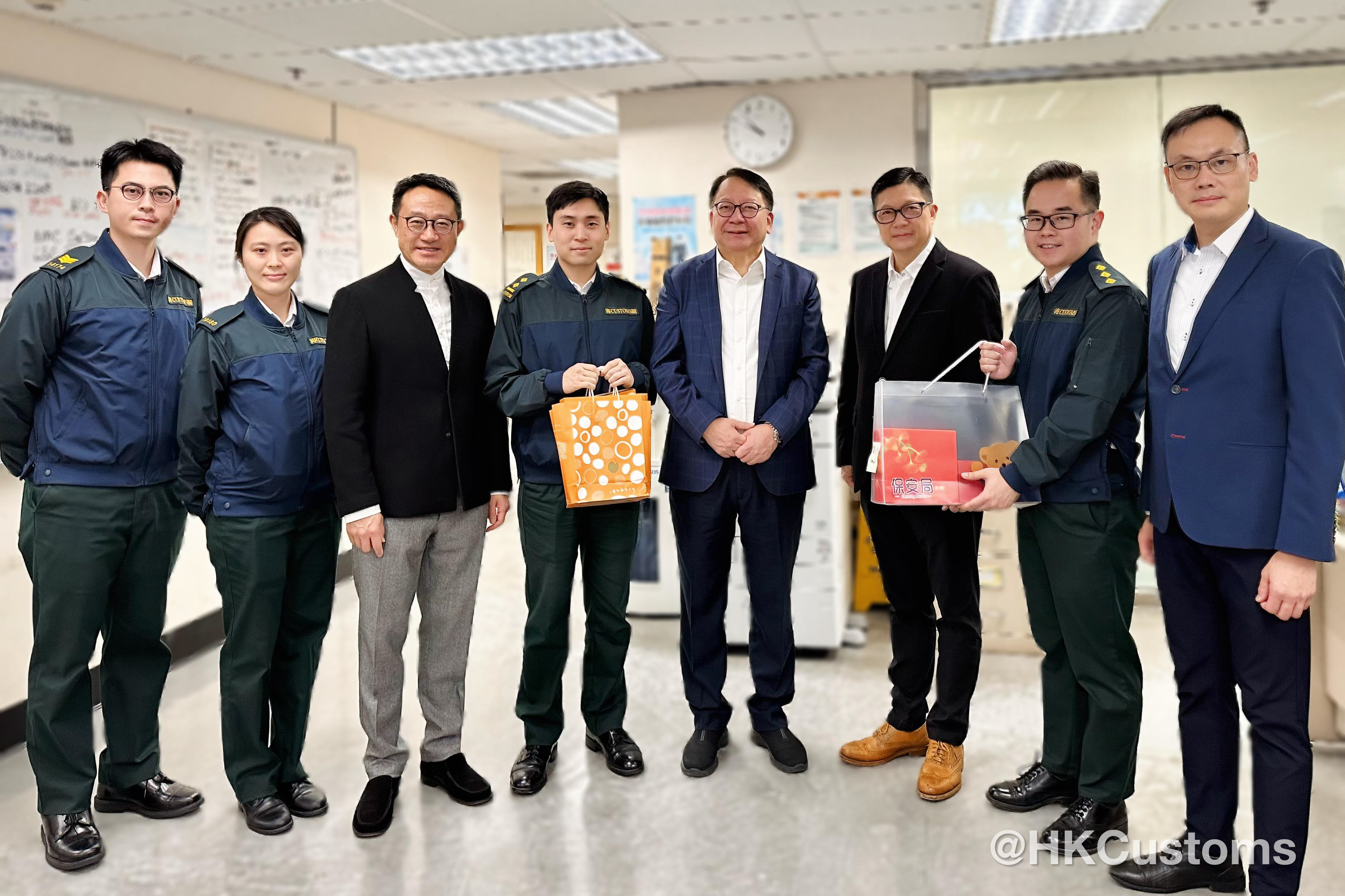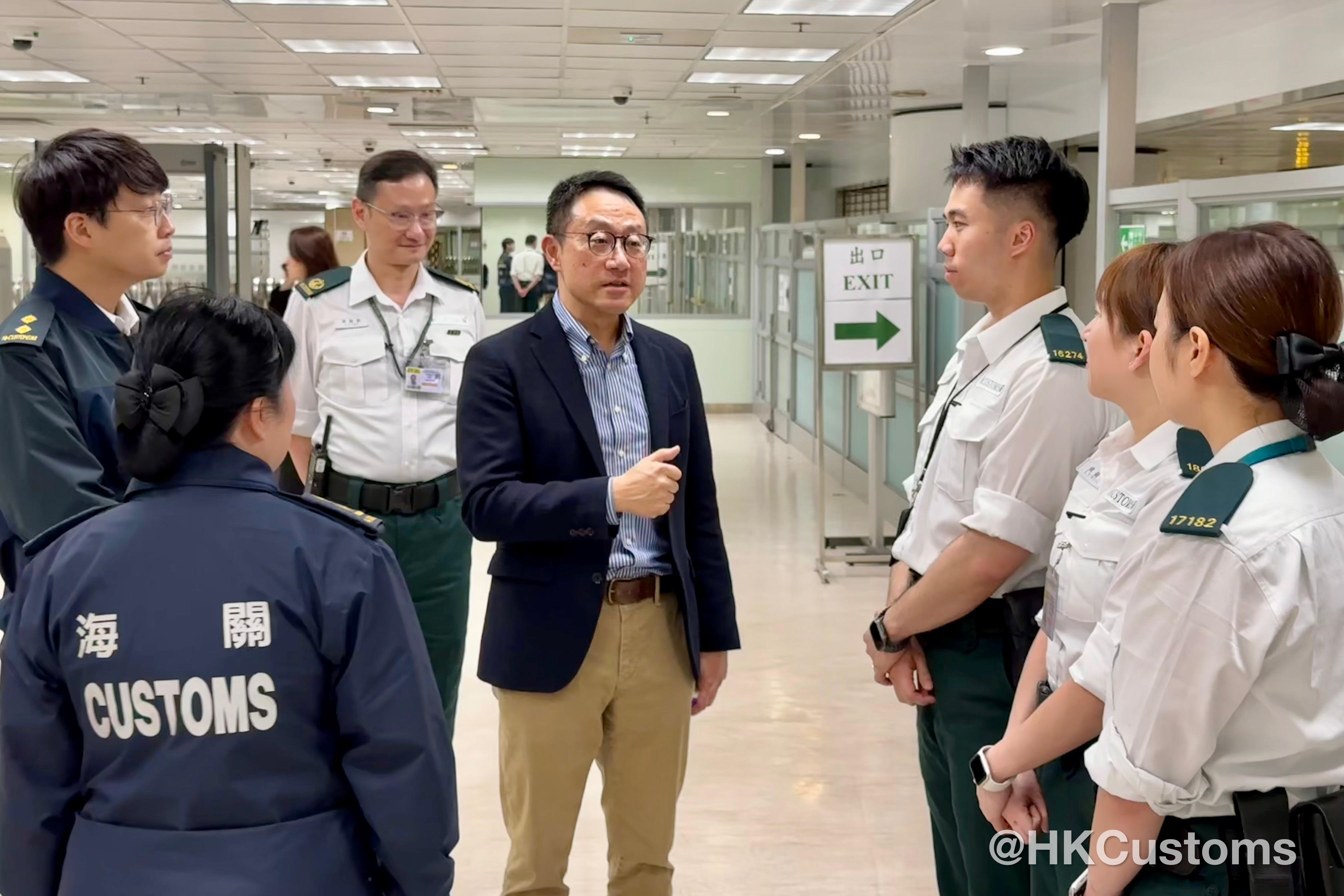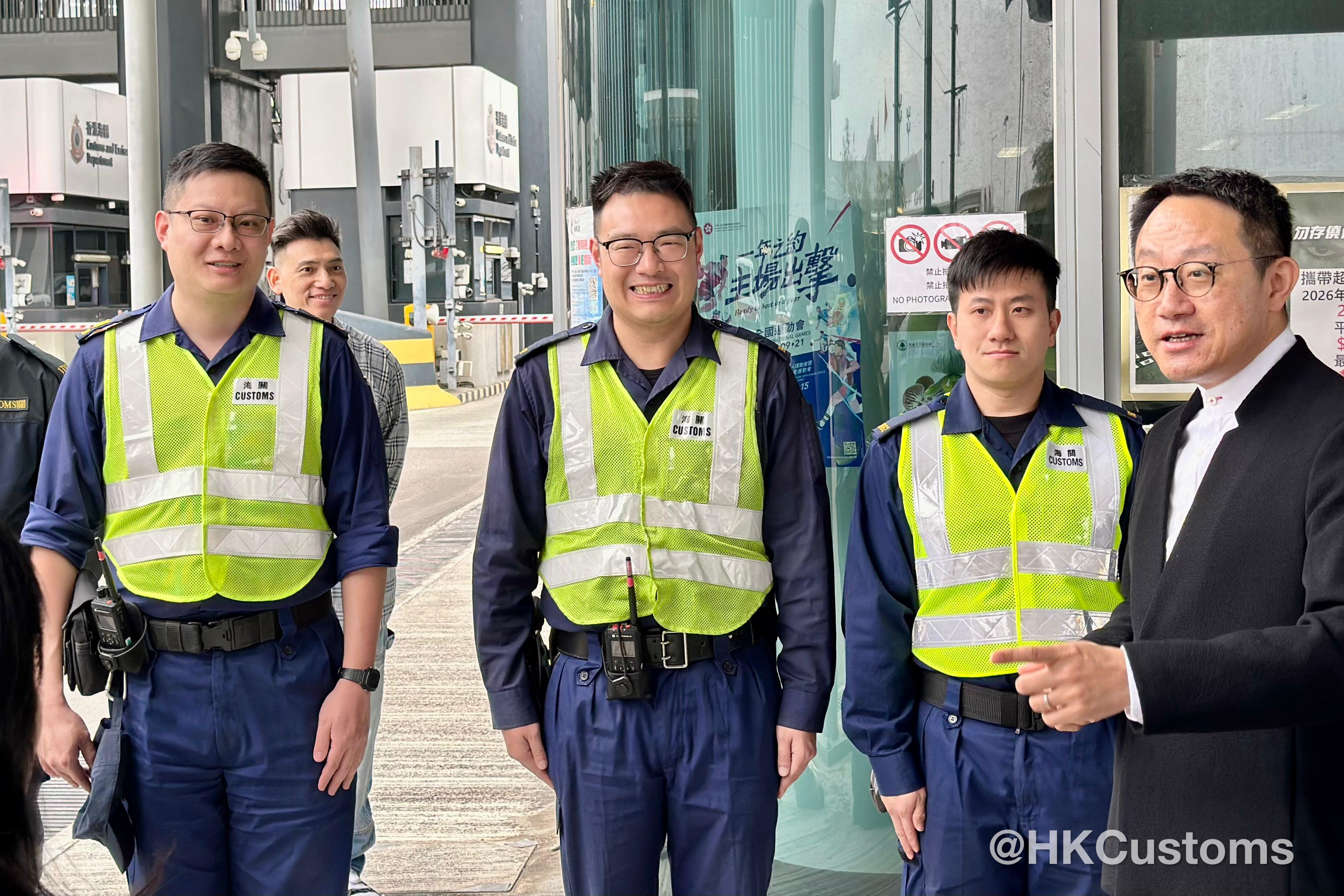 除夕當日及大年初一,香港海關關長陳子達馬不停蹄走訪多個管制站,探望當值同事,了解前線工作情況,確保各口岸人流與貨流暢順,讓市民與旅客能安心出行,歡度佳節。