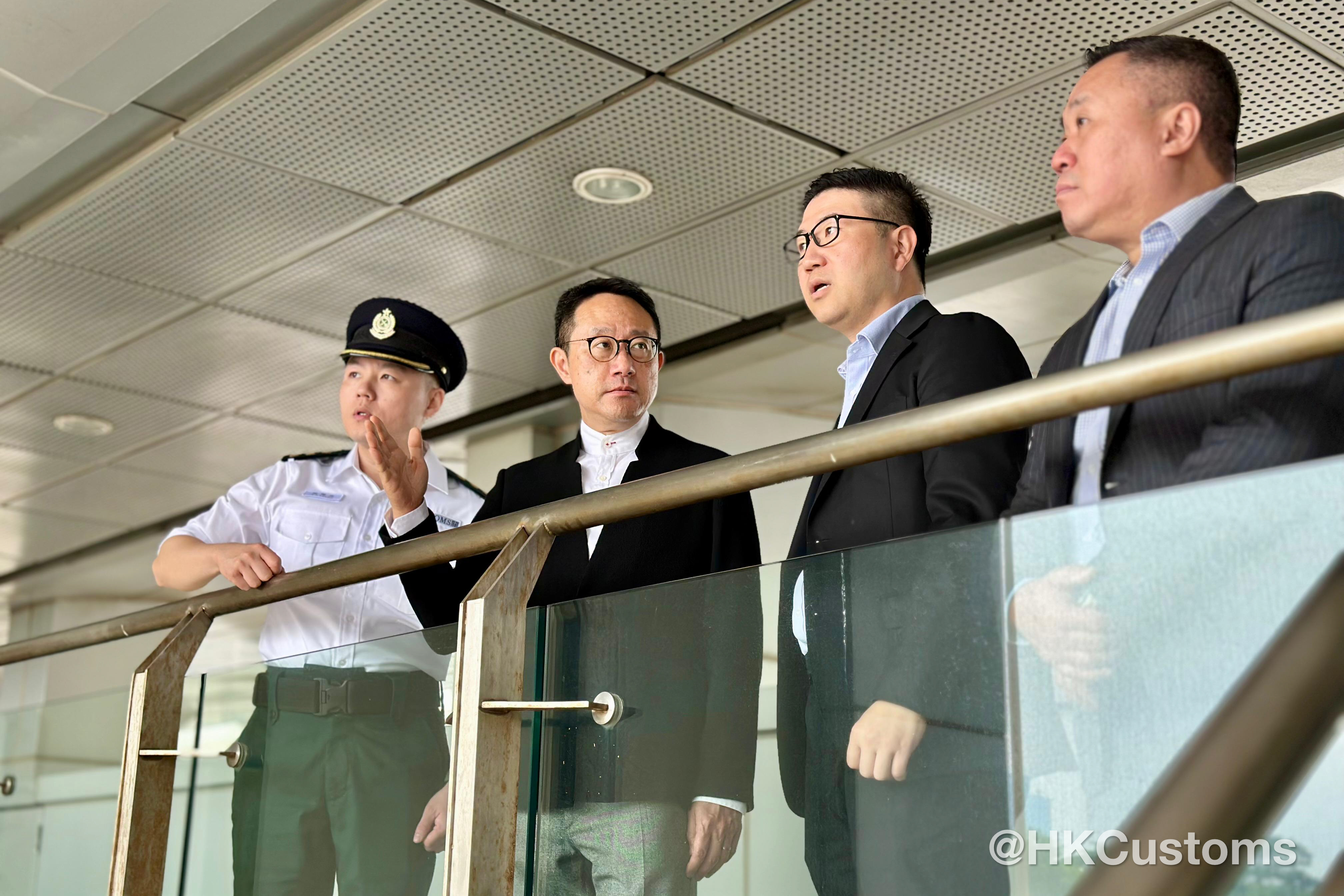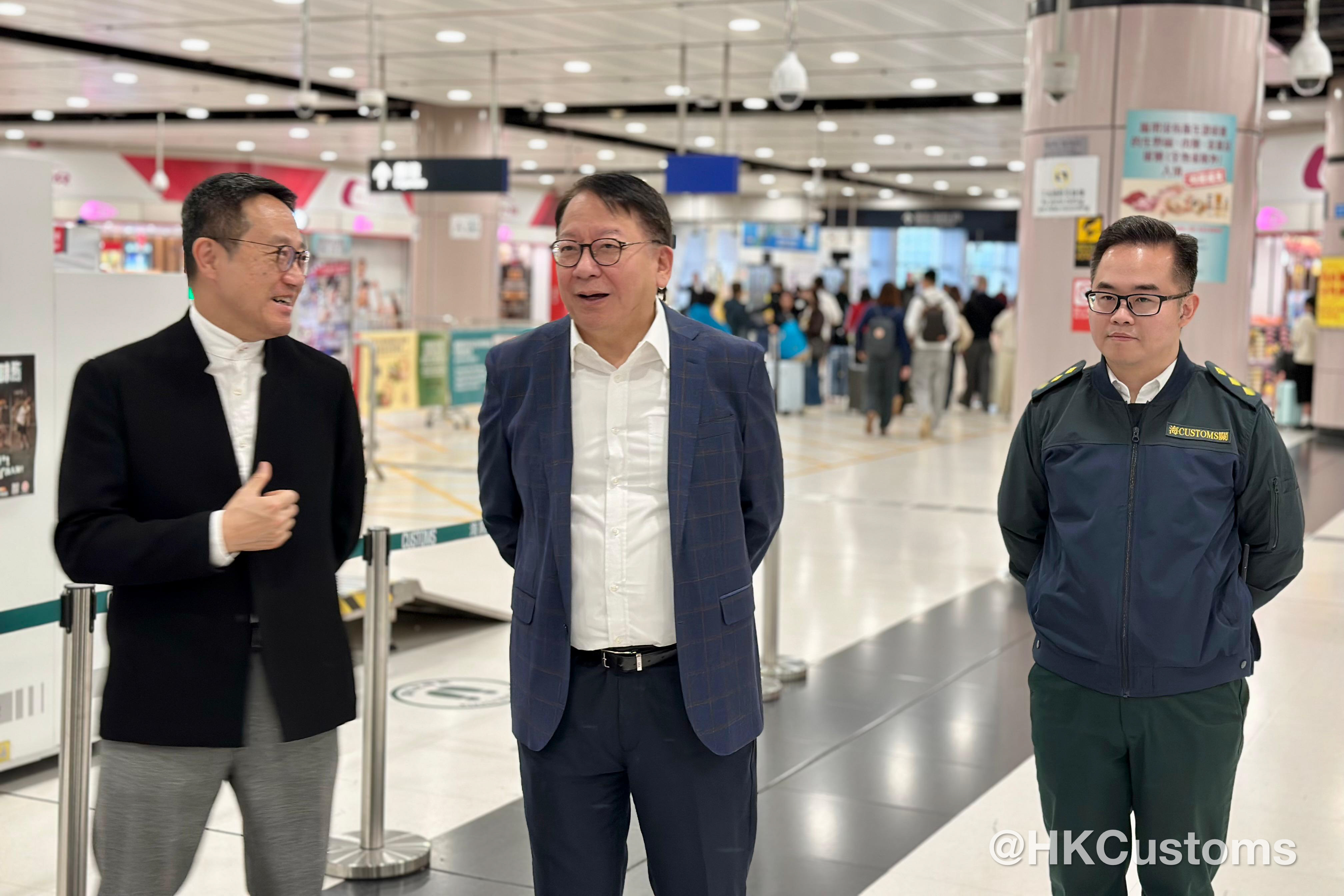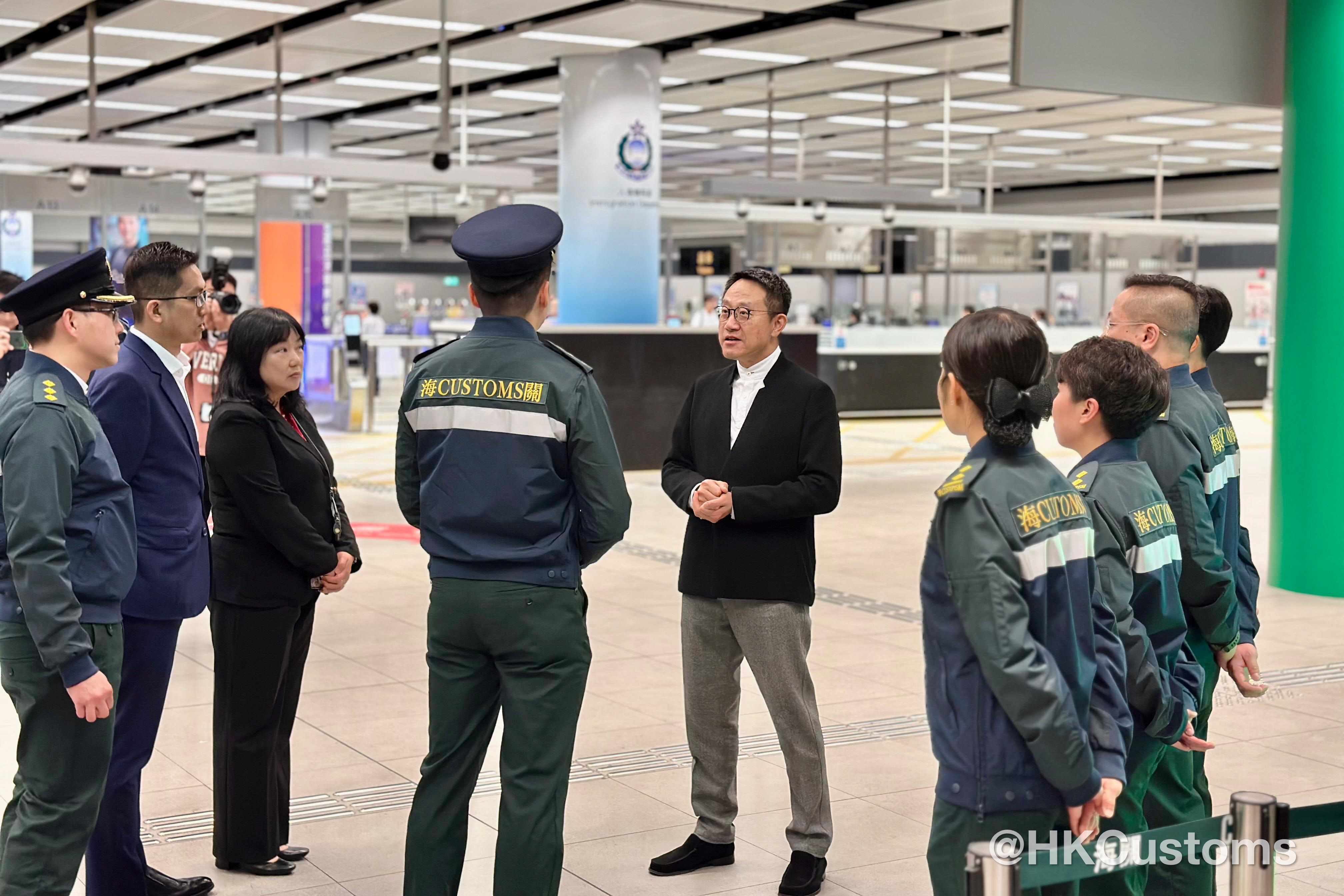 除夕當日及大年初一,香港海關關長陳子達馬不停蹄走訪多個管制站,探望當值同事,了解前線工作情況,確保各口岸人流與貨流暢順,讓市民與旅客能安心出行,歡度佳節。