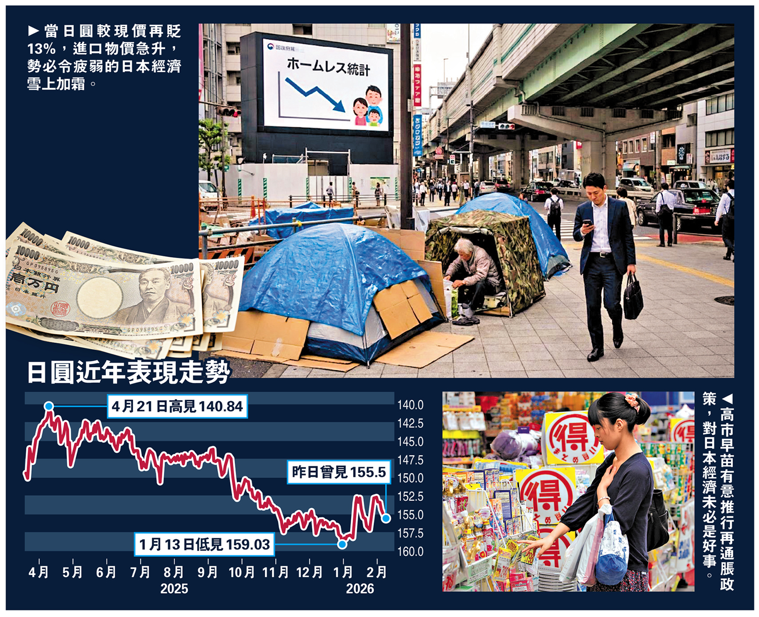 與此同時,市場憂慮日本債務急增,日圓匯價持續受壓。自高市去年10月21日首次當選首相以來,日圓兌美元已貶值2.3%;若對比上任首相石破茂2025年4月執政時,日圓至今更已大幅貶值逾一成。