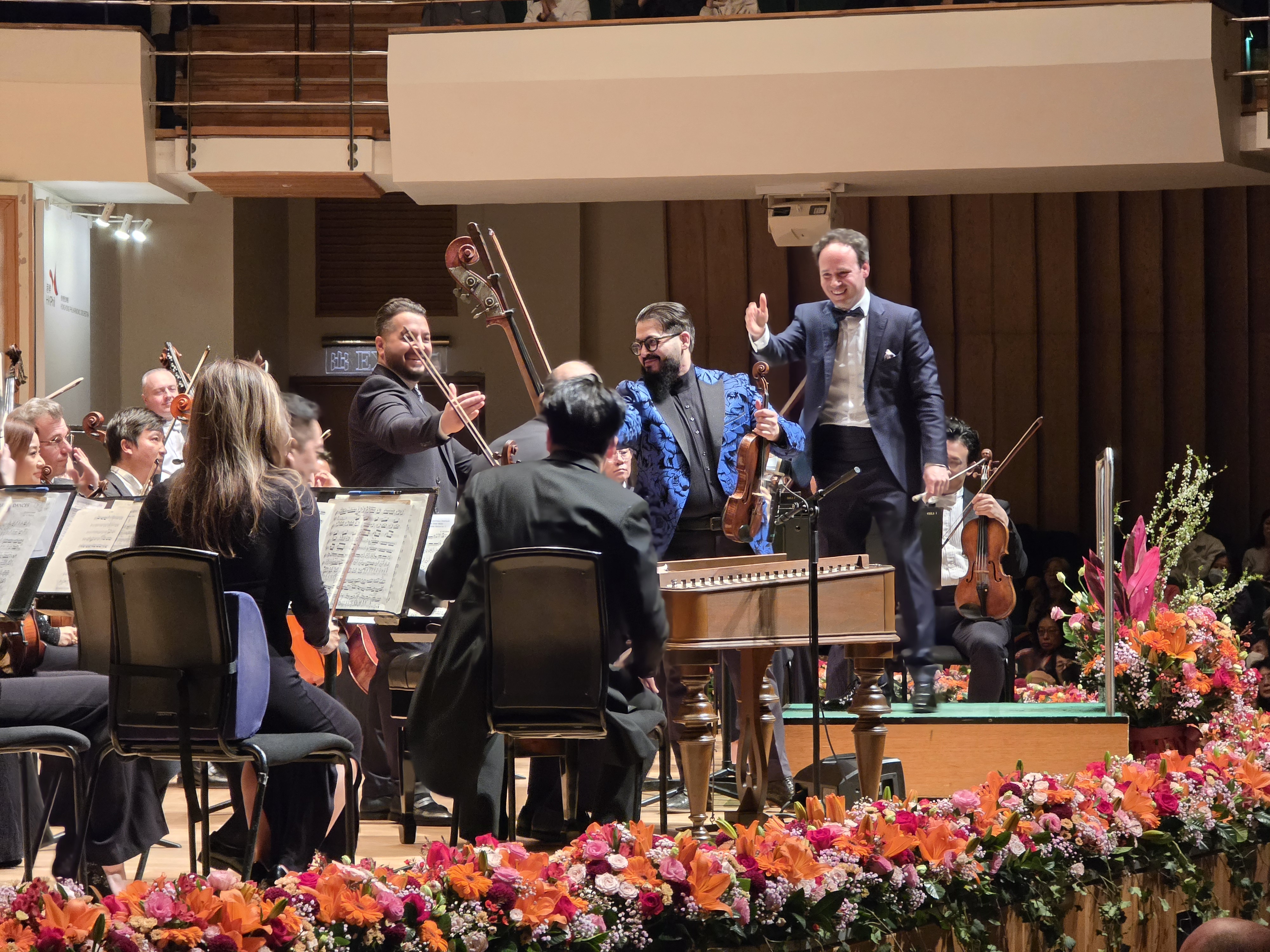 指揮家馬達拉斯(Gergely Madaras)一反傳統,積極與現場聽眾互動,他娓娓道來一段「雙城記」:他的故鄉是匈牙利,既在布達佩斯學習作曲,也在維也納研習指揮,在兩大音樂之都間穿梭,約三小時的車程為他帶來無限靈感。而這個音樂會不僅去年12月底在香港舉行,亦在2026年1月初將精彩演出帶到深圳,港深雙城實現真正的「跨年」,讓大灣區音樂活動更緊密融合。馬達拉斯亦特地介紹與中國揚琴非常相似、同屬「世界揚琴大家族」的匈牙利傳統擊弦樂器辛巴龍(Cimbalom),兩者同是梯形結構,同用擊槌,音色同樣悠揚婉轉。音樂是一種共通的語言,可以在不同民族與文化之間促進心靈交流。馬達拉斯不僅是一名出色指揮家,亦充當中西交流的文化使者,深化東西方人民之間的情感交融。