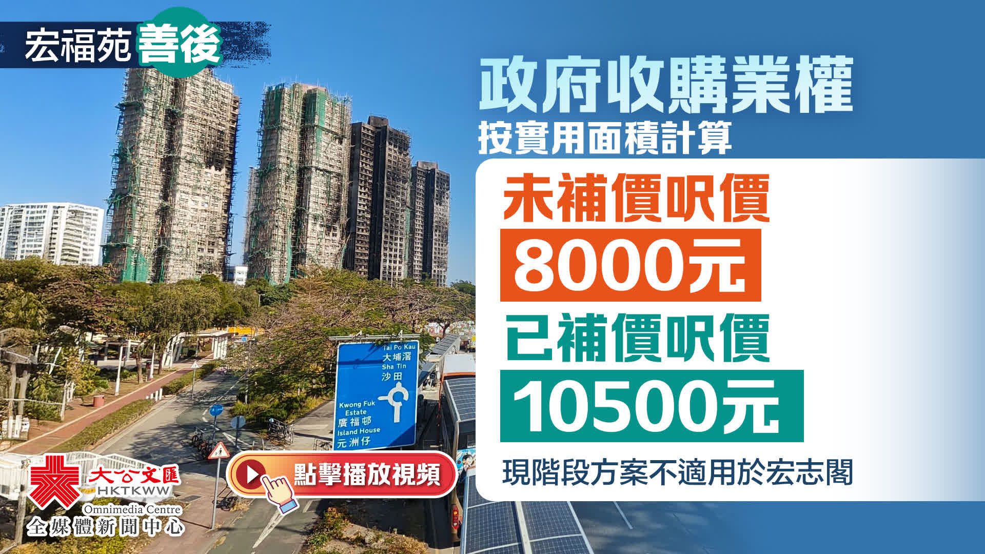 大埔宏福苑火災後至今近3個月,由財政司副司長領導的「應急住宿安排工作組」不斷地在工作。之前,已透過「一戶一社工」以問卷形式收集居民就長遠方案的意見,當中包括維修、重建,以及收購業權等等選項。政府已收集完宏福苑居民對長遠安置之意見。問卷調查的數據顯示大部分(超70%)居民均希望政府盡快協助解決長遠安置及希望政府收購業權,由於希望在「原址重建」的居民的比例非常少,因此政府決定收購業權,放棄原址重建。