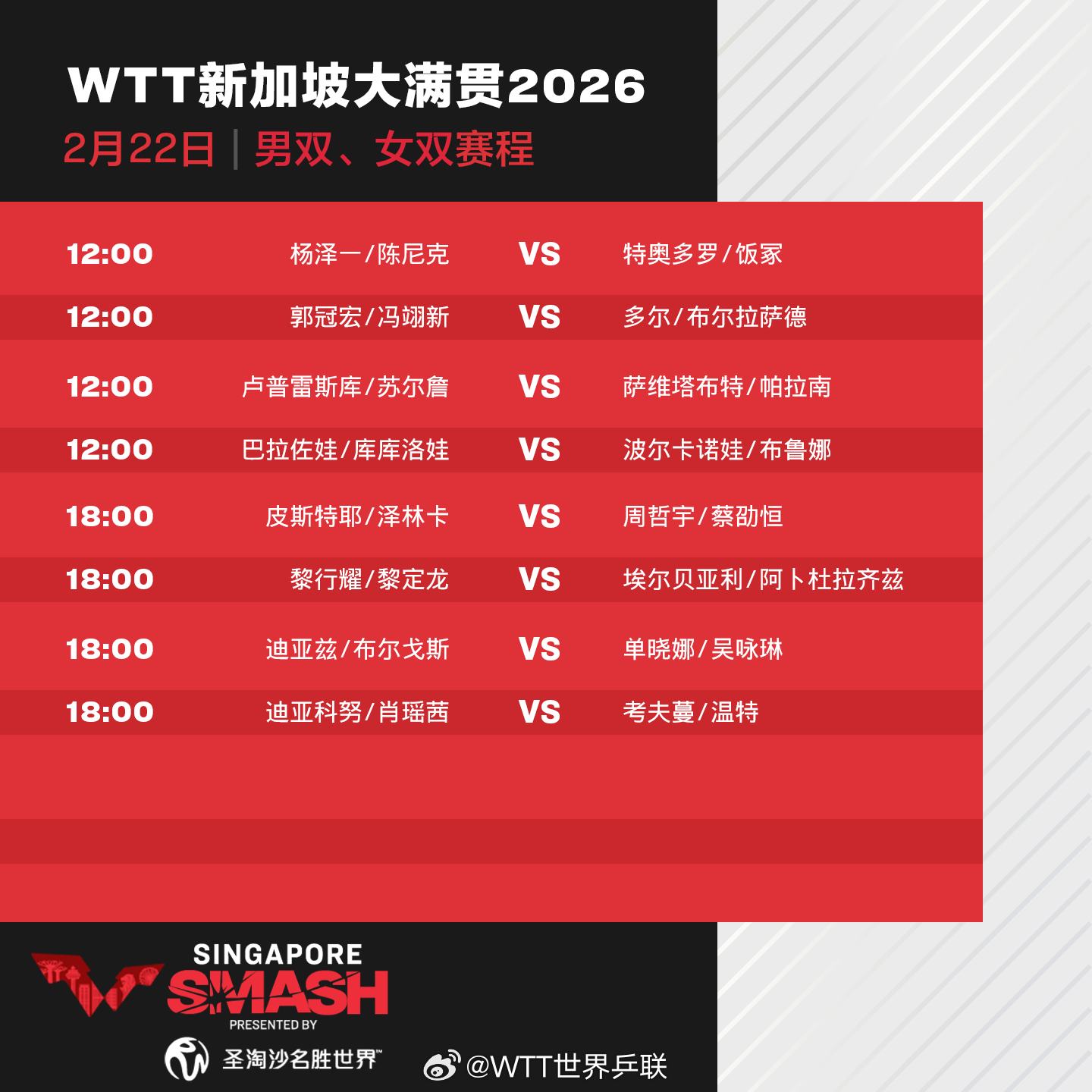 大公文匯全媒體報道,2026年WTT新加坡大滿貫正賽今日(22日)正式打響,首日國乒8人出戰,包括男單4人、女單4人。