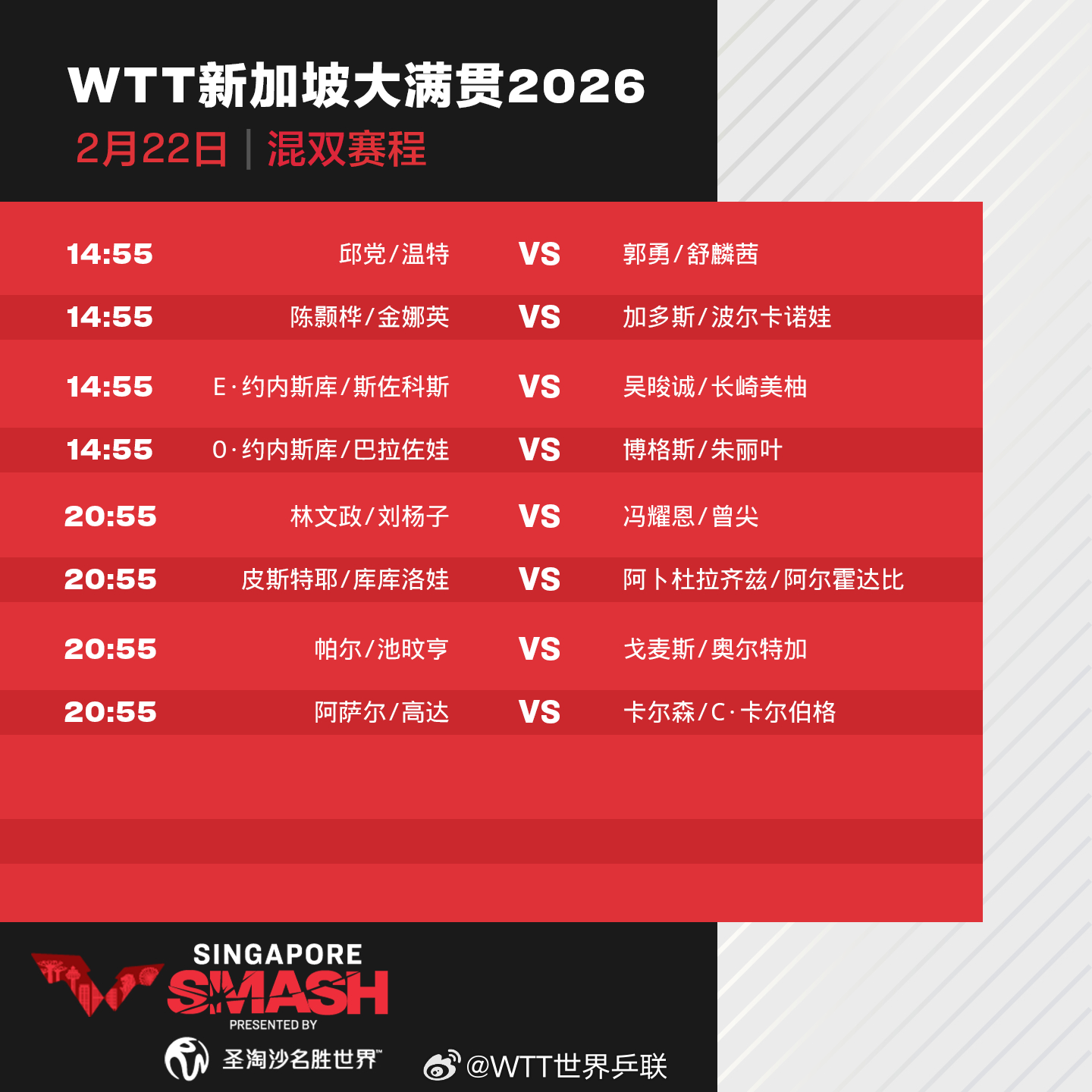 關鍵詞:WTT新加坡大滿貫王楚欽王曼昱林詩棟
