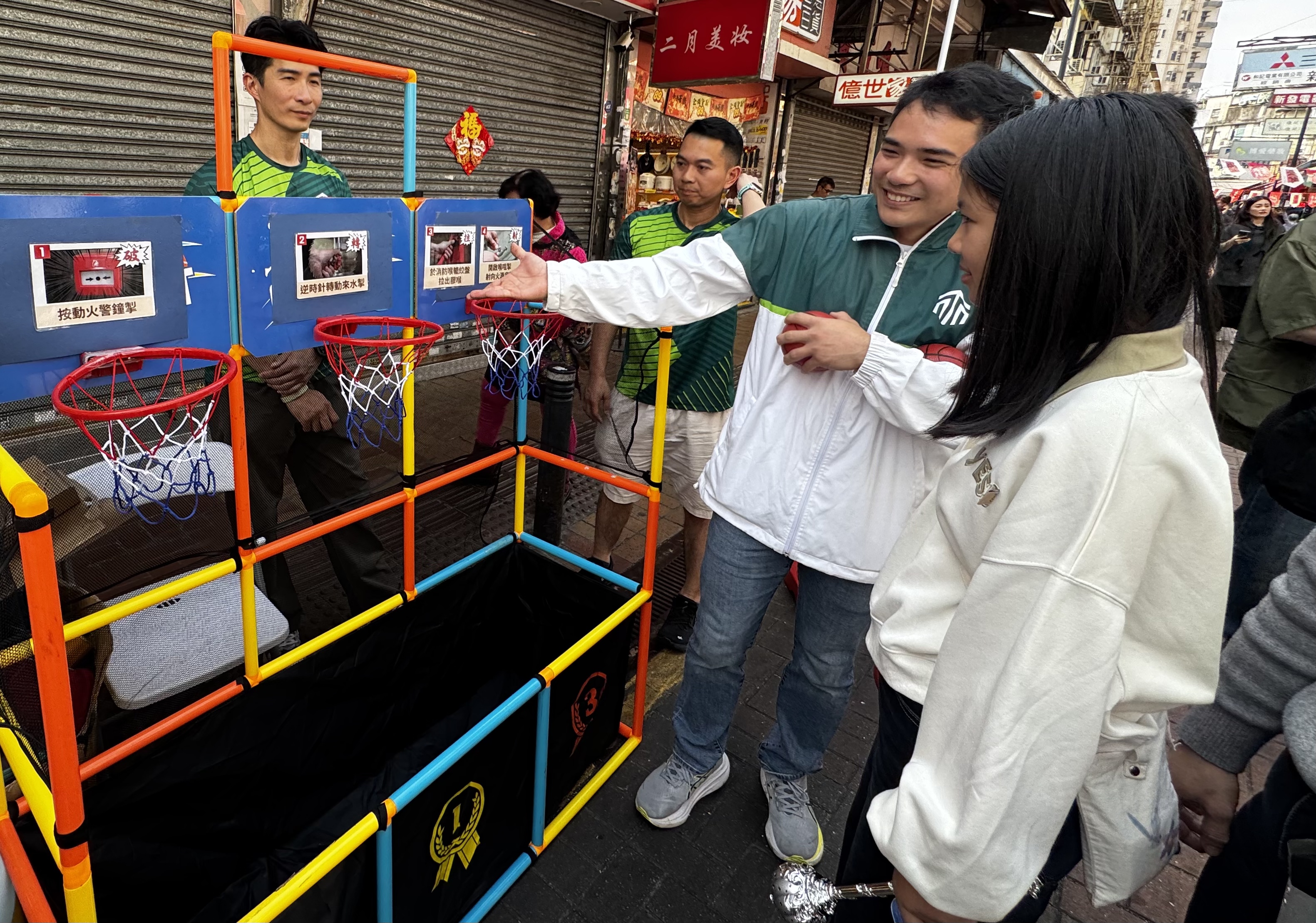 由消防處設立的攤位吸引不少親子家庭參與。攤位透過實用問答遊戲,讓市民了解居民樓消防栓的正確使用方法,寓教於樂,做到「平安時學習,遇事時不慌」。
