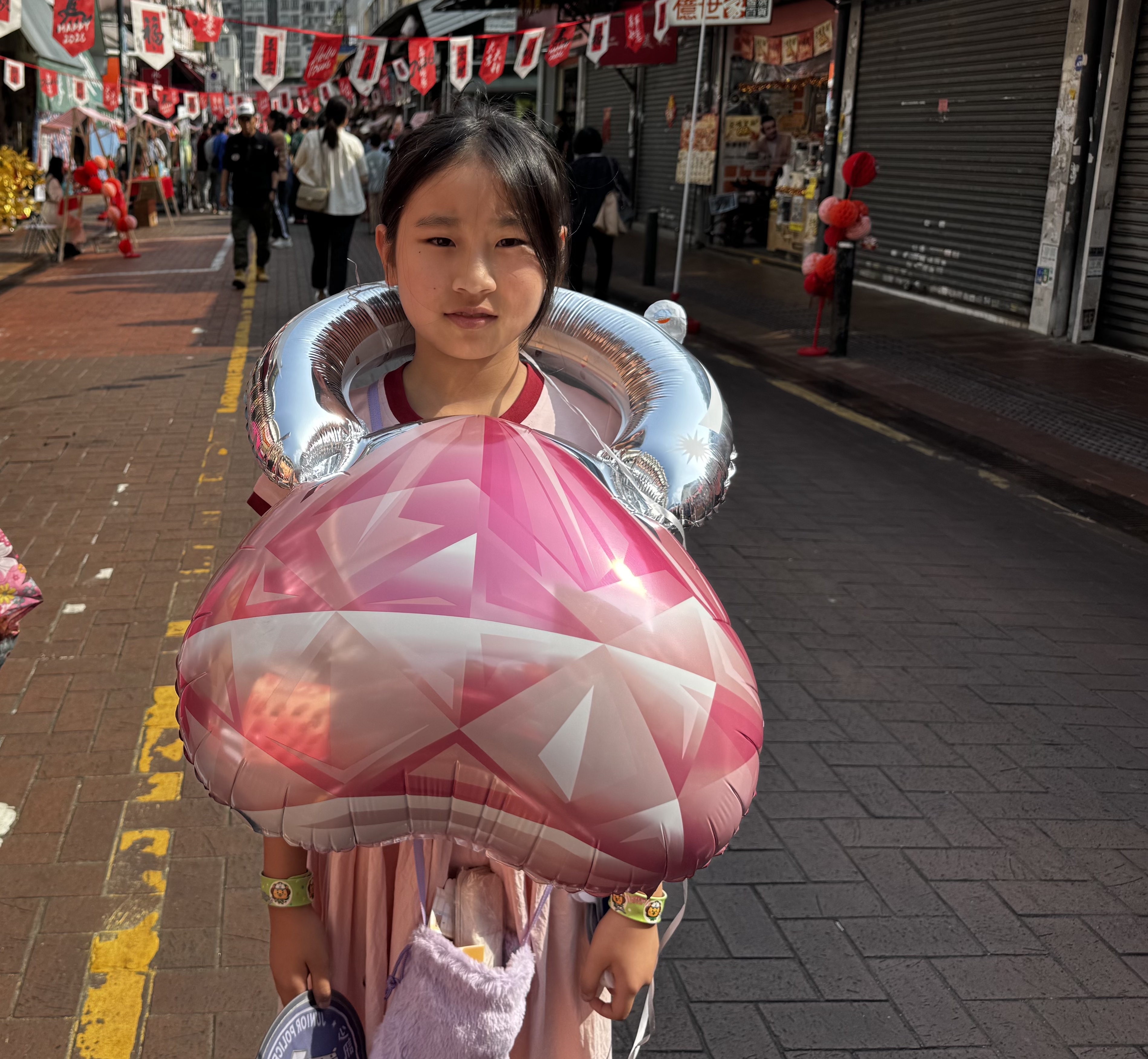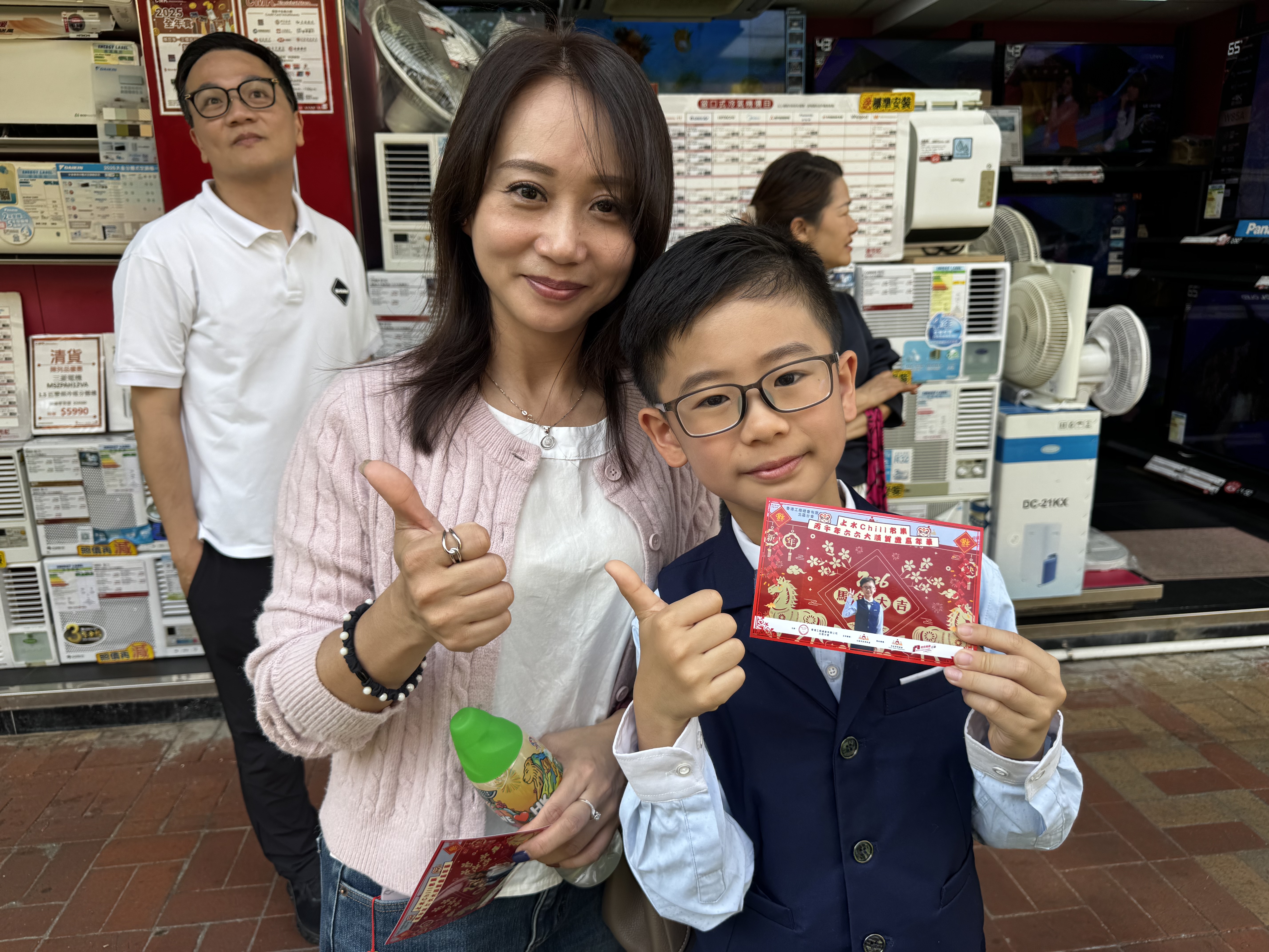 蔡小朋友今日在嘉年華開幕禮上表演唱歌。表演結束後,他與媽媽在市集的特色打卡位拍照留念。媽媽感嘆,疫情過後社區活動大幅減少,今次是多年來首次有如此規模的新春市集,真正讓人感受到復甦的氣息。