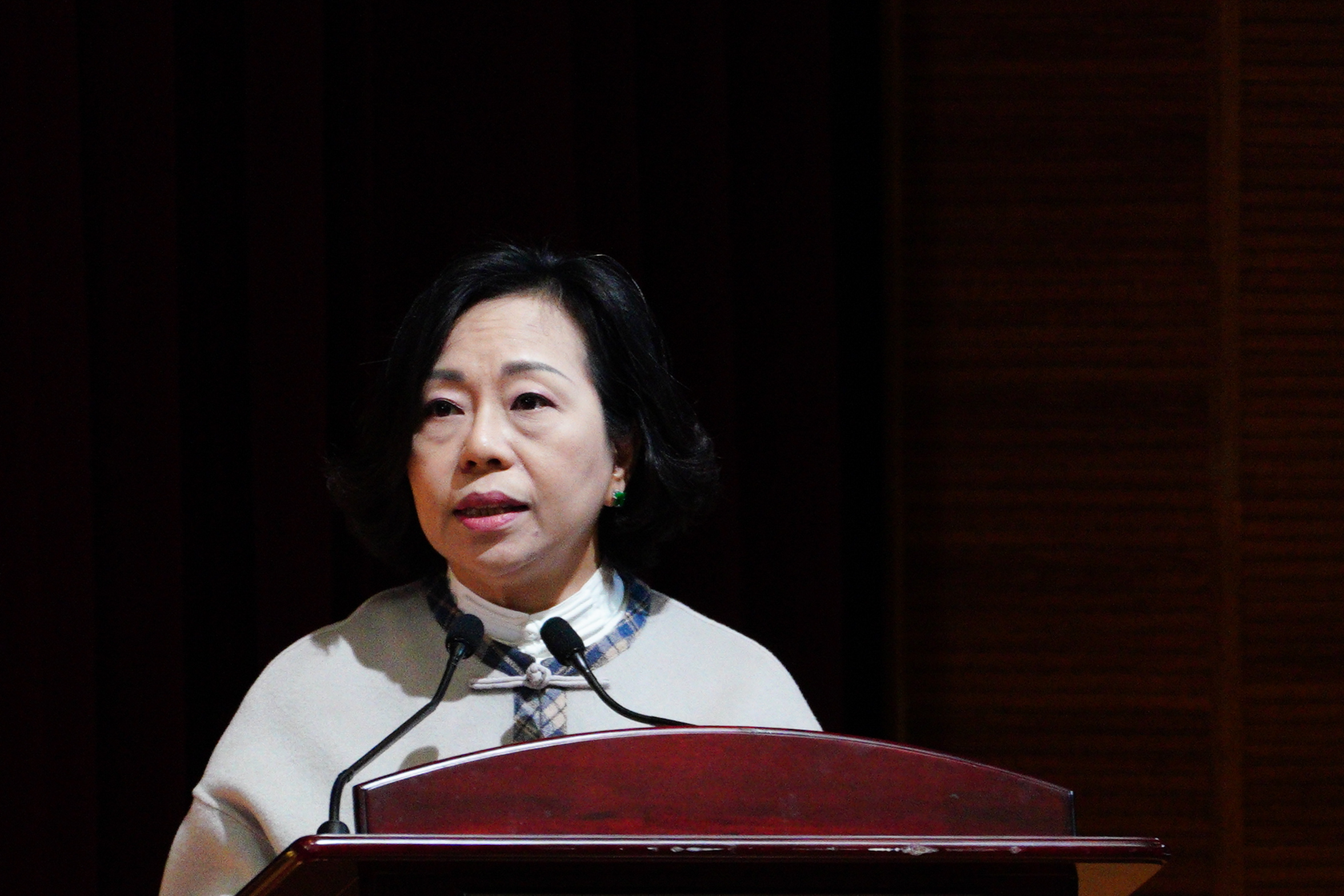 民政及青年事務局局長麥美娟致辭時指出,今年恰逢國家「十五五」規劃開局之年,新一年將繼續推動社區、家庭、青年三方和諧發展。她提到其新春期間帶隊開展全港18區「駿馬迎新」歲晚探訪活動,並呼籲大眾多關懷身邊親友與街坊,傳遞關愛與溫馨。