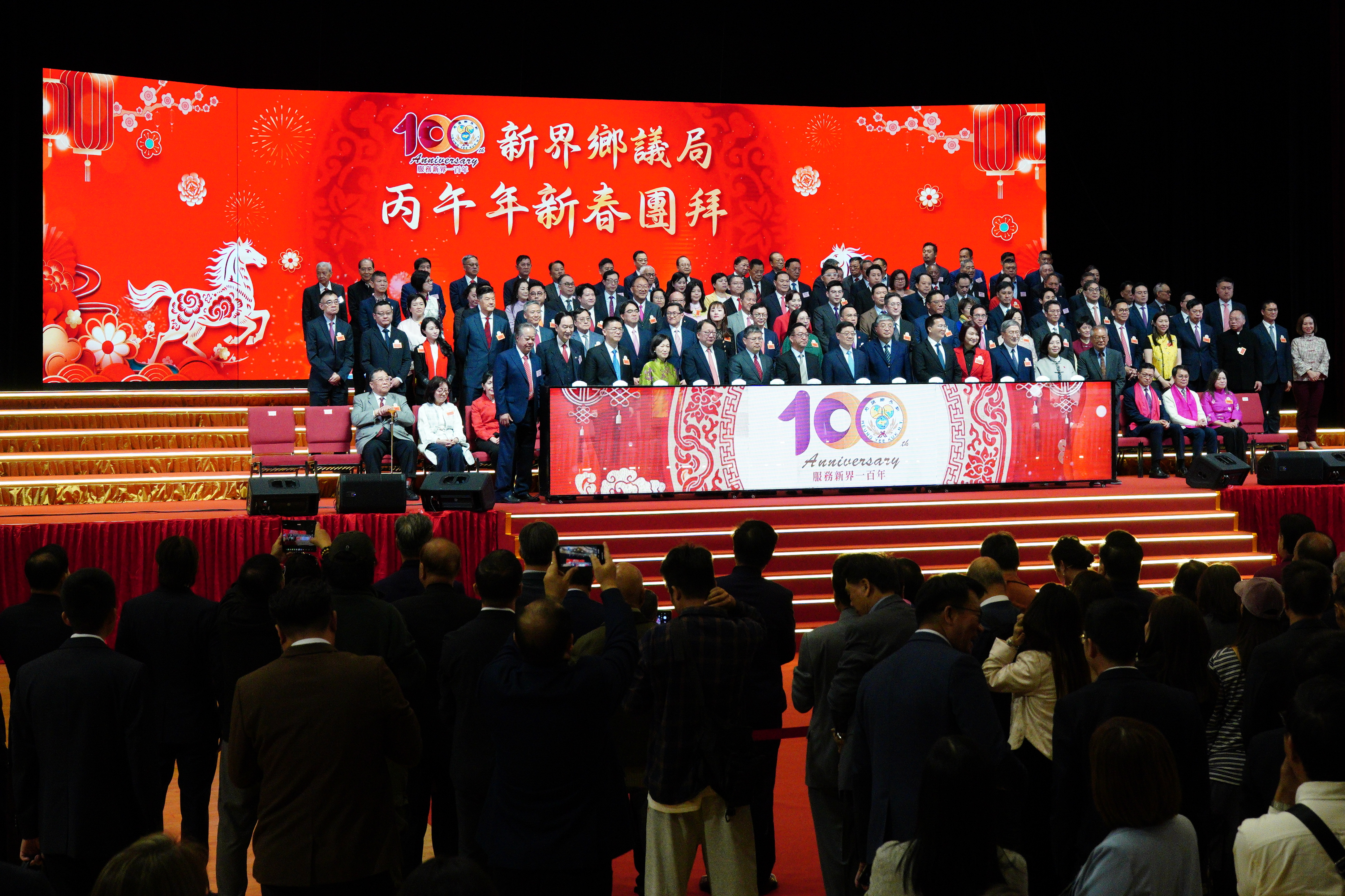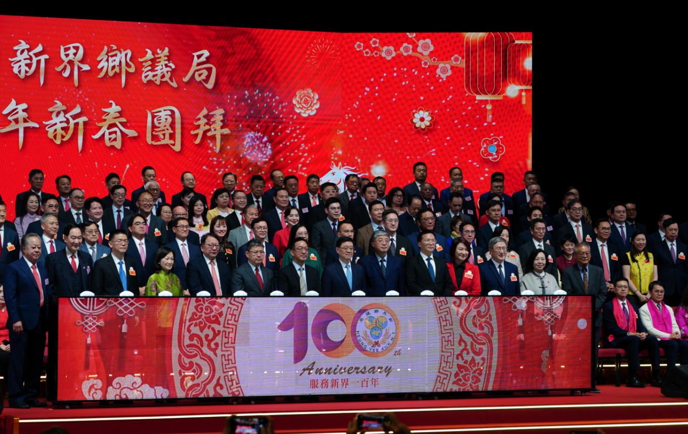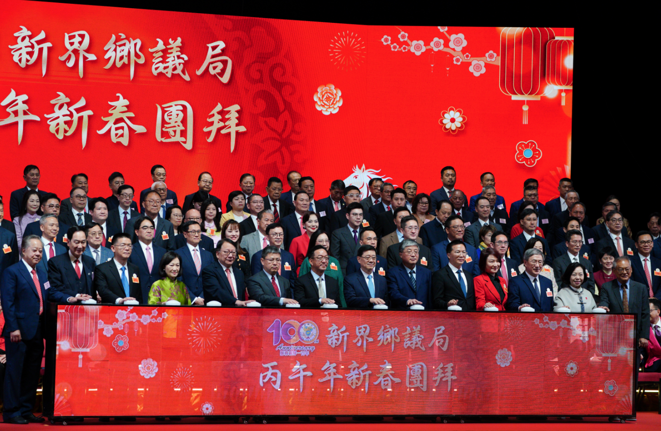 (大公文匯全媒體記者陳子萌報道)新界鄉議局今日(23日)上午舉行盛大的丙午年新春團拜活動,恰逢新界鄉議局成立100周年,活動不僅洋溢着濃厚的新春喜氣,更正式拉開了百年慶典的序幕。行政長官李家超出席,聯同中聯辦副主任羅永綱、新界鄉議局主席劉業強,以及以及新界鄉紳、地區代表、各界嘉賓歡聚一堂,同賀新歲。