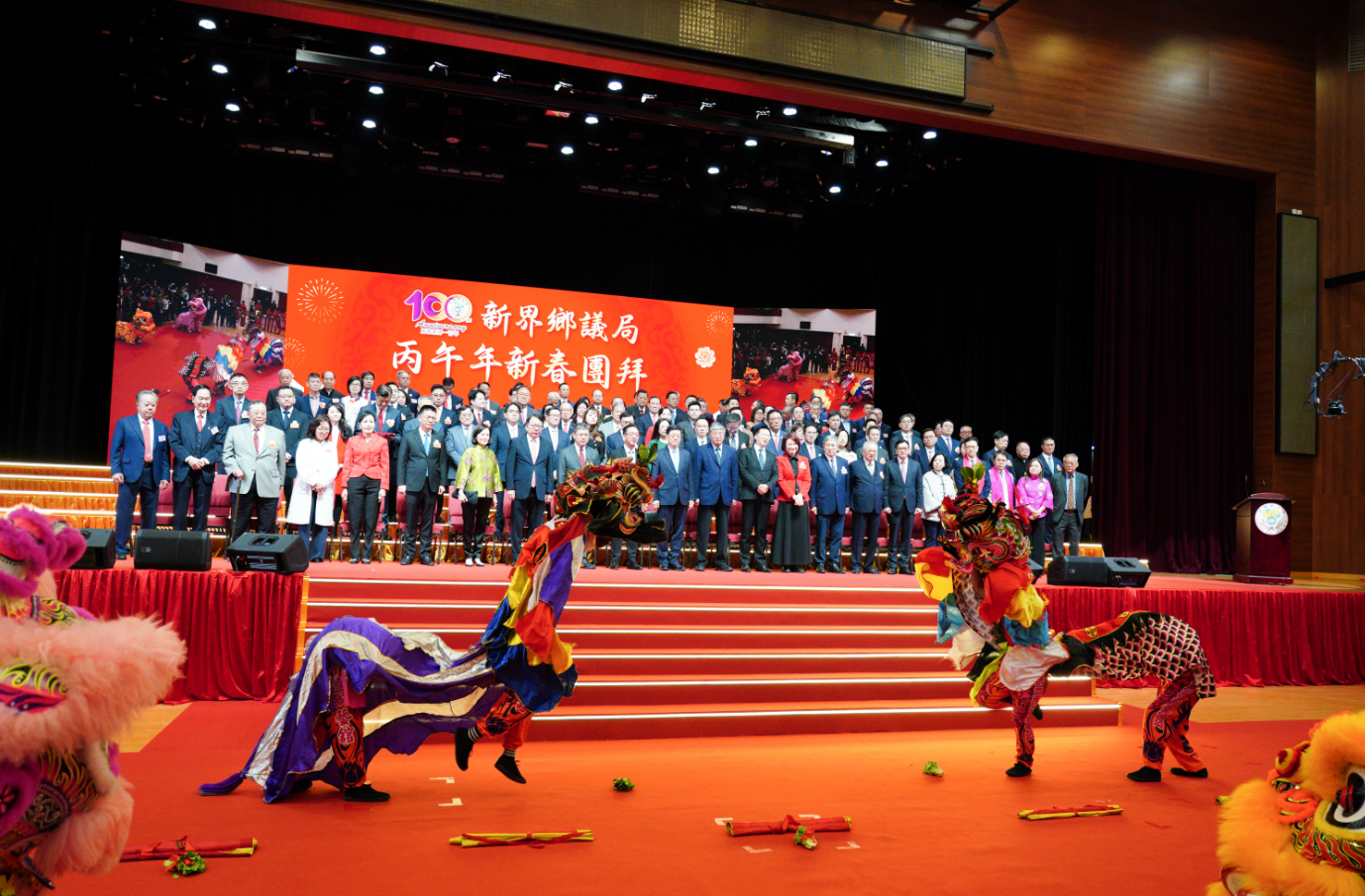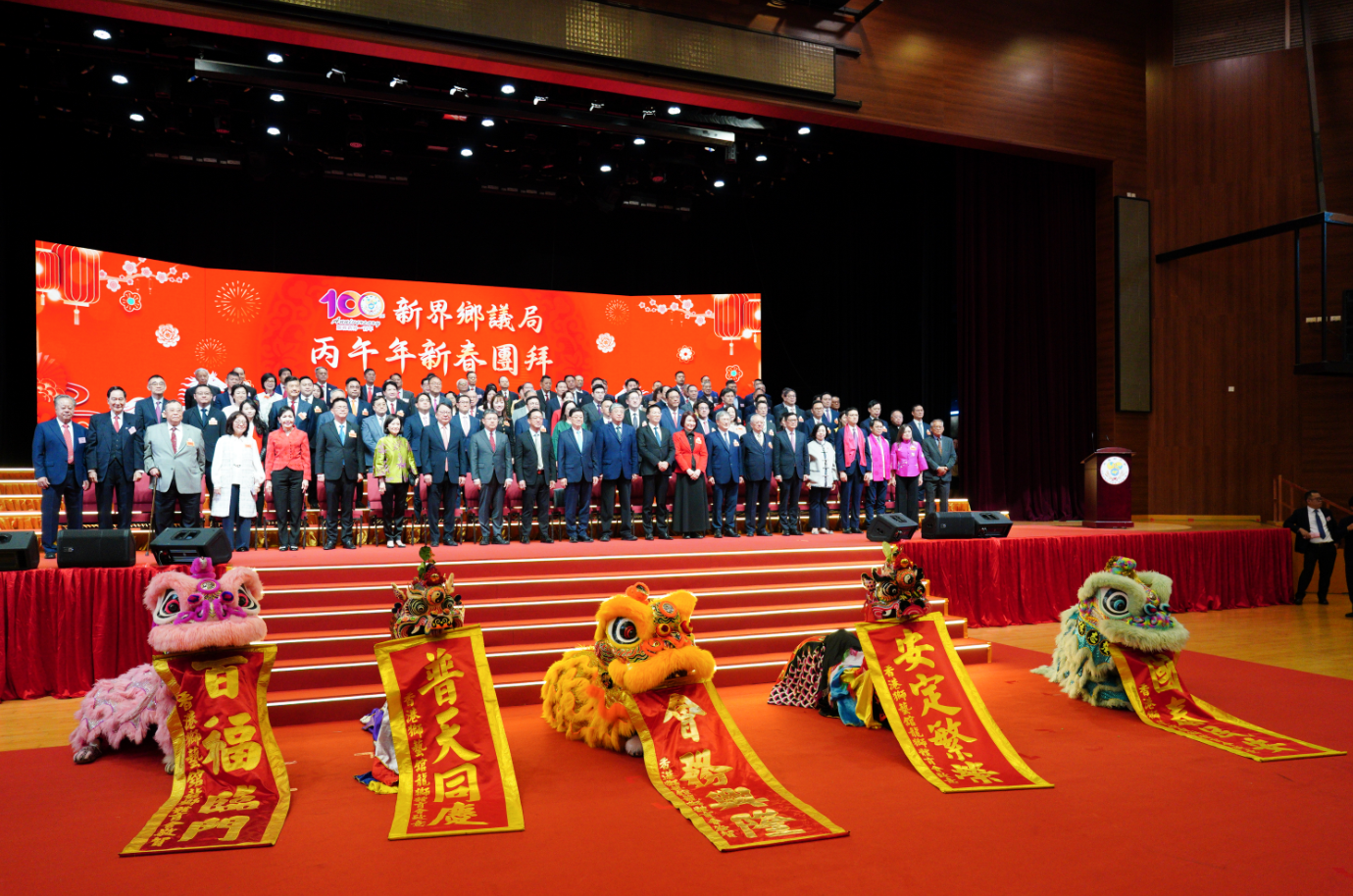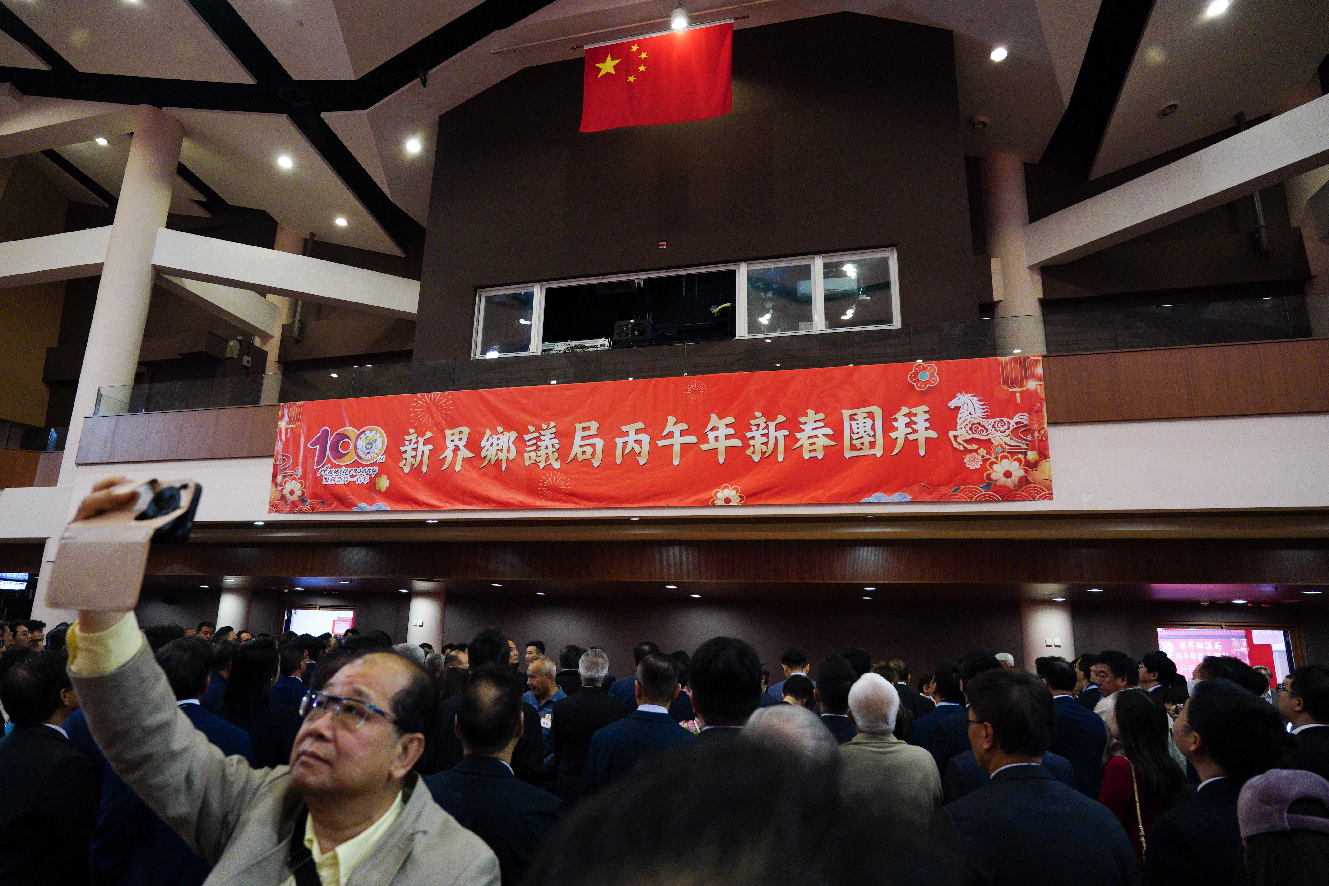 (大公文匯全媒體記者陳子萌報道)新界鄉議局今日(23日)上午舉行盛大的丙午年新春團拜活動,恰逢新界鄉議局成立100周年,活動不僅洋溢着濃厚的新春喜氣,更正式拉開了百年慶典的序幕。行政長官李家超出席,聯同中聯辦副主任羅永綱、新界鄉議局主席劉業強,以及以及新界鄉紳、地區代表、各界嘉賓歡聚一堂,同賀新歲。