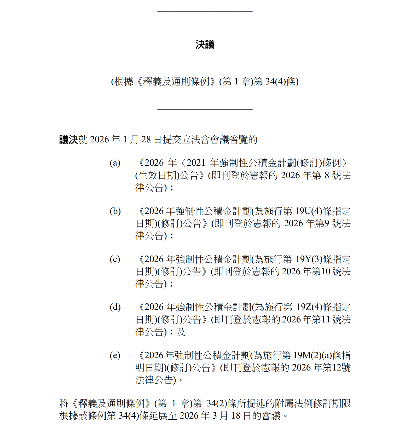 議員議案方面,鄧家彪將根據《釋義及通則條例》第34(4)條動議一項延展附屬法例修訂期限的擬議決議案,決議案內容如下: