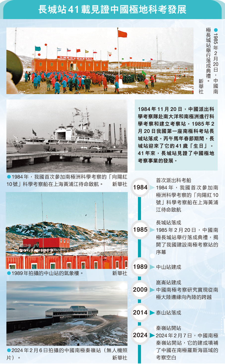 香港文匯報援引中新社報道,從香港向南,跨過赤道,越過重洋,一萬七千公里的漫長征途,最終抵達南極喬治王島地區。中國長城站,就矗立在這片終年冰封的大陸。