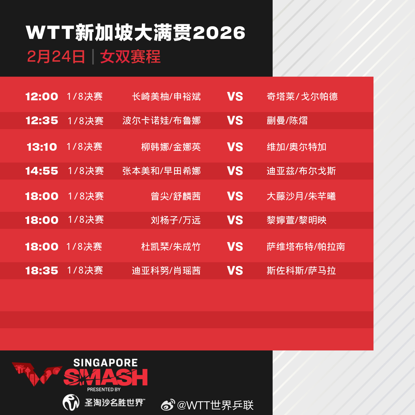關鍵詞:WTTWTT新加坡大滿貫王楚欽林詩棟王曼昱蒯曼