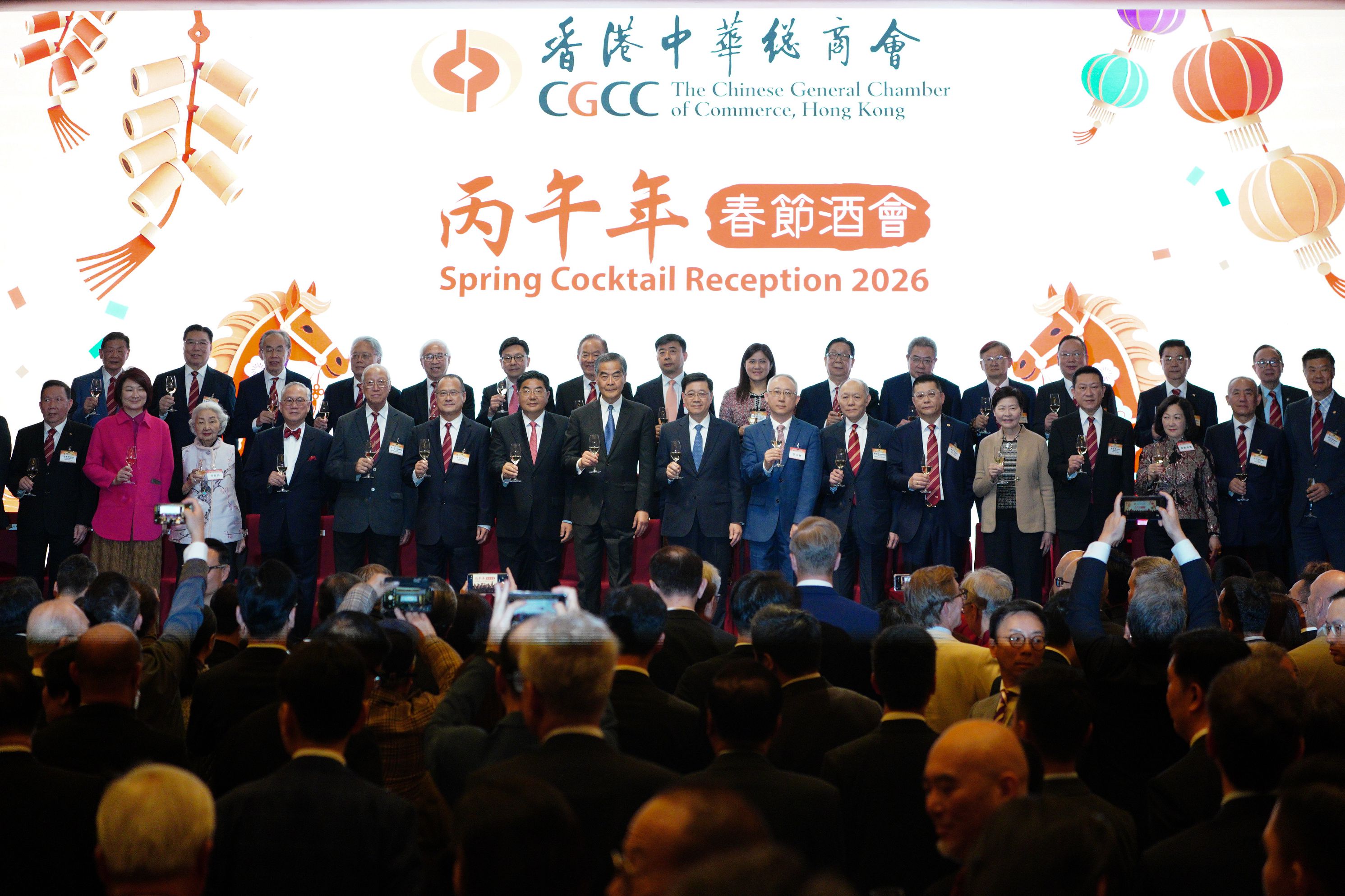 (大公文匯全媒體 記者 梁譯尹)香港中華總商會(中總)今日(24日)舉辦丙午年春節酒會,全國政協副主席梁振英、香港特別行政區行政長官李家超、中央政府駐港聯絡辦公室副主任張勇、外交部駐港特派員公署副特派員李永勝、立法會主席李慧琼、行政會議召集人葉劉淑儀等政商各界嘉賓出席,共慶新春佳節並探討香港發展機遇。
