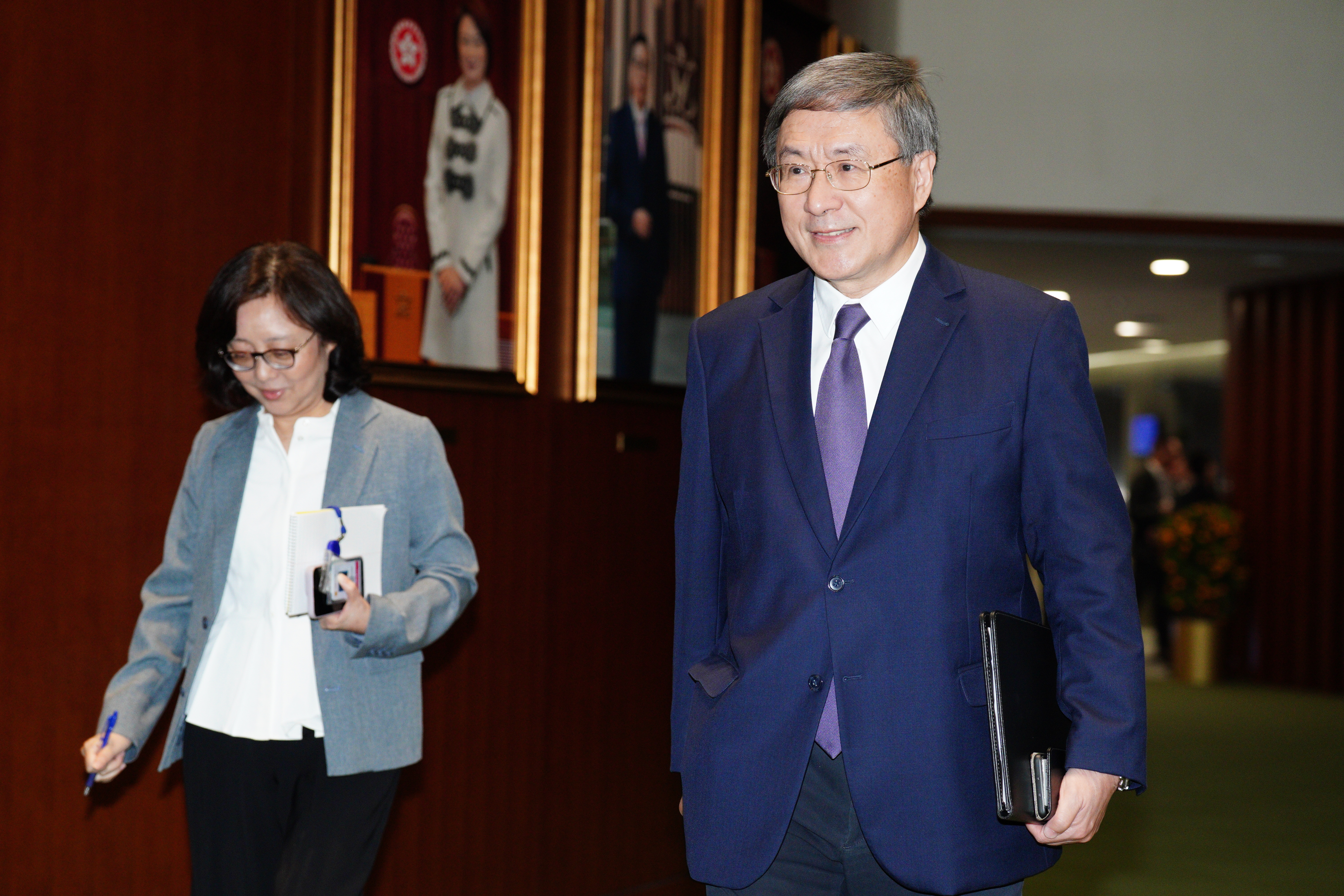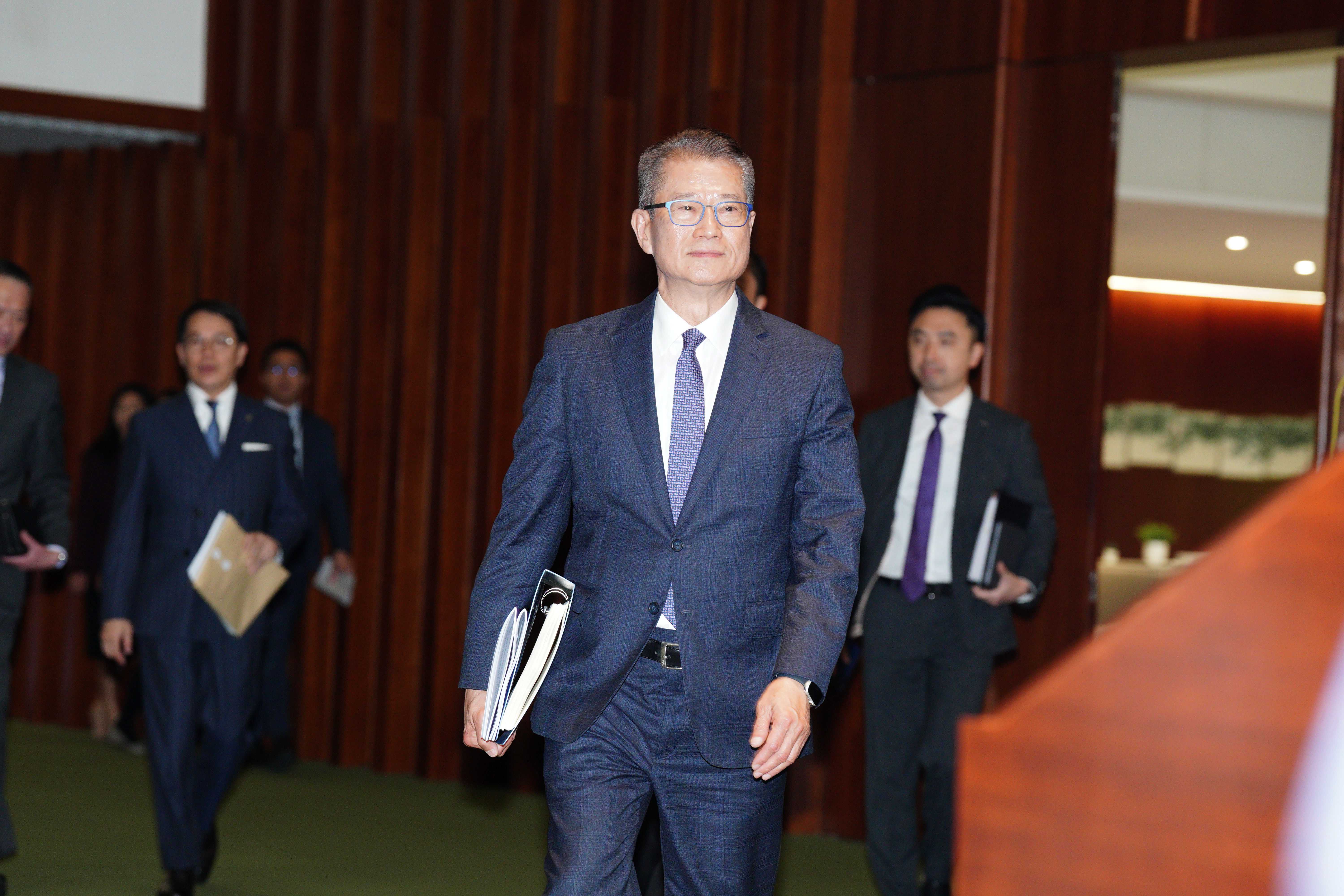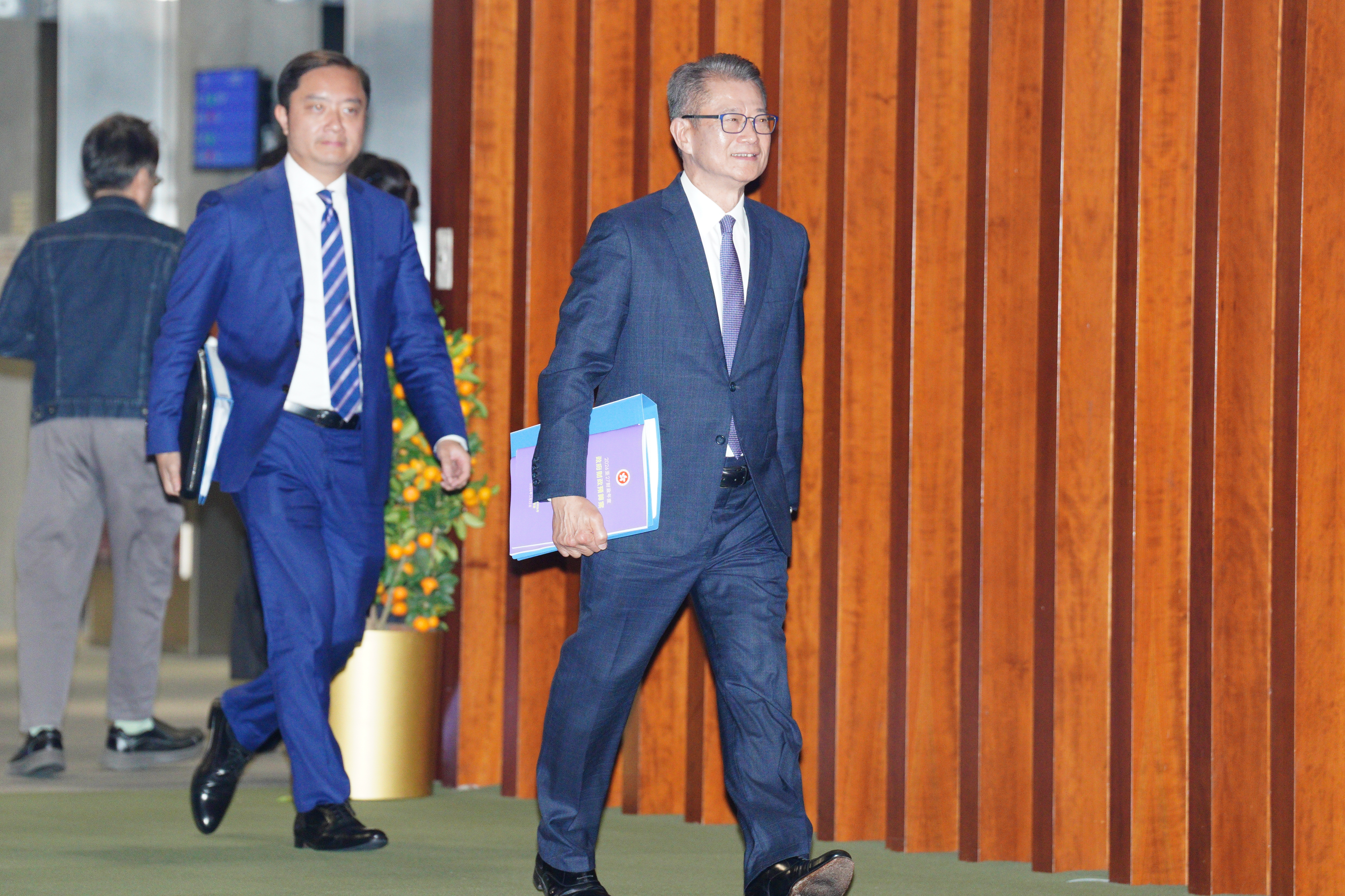 大公文匯全媒體報道,財政司司長陳茂波今早(25日)將在立法會發表新一份財政預算案。多名司局長穿紫色衣物配合財政預算案的封面,包括紫色領呔、外套等。