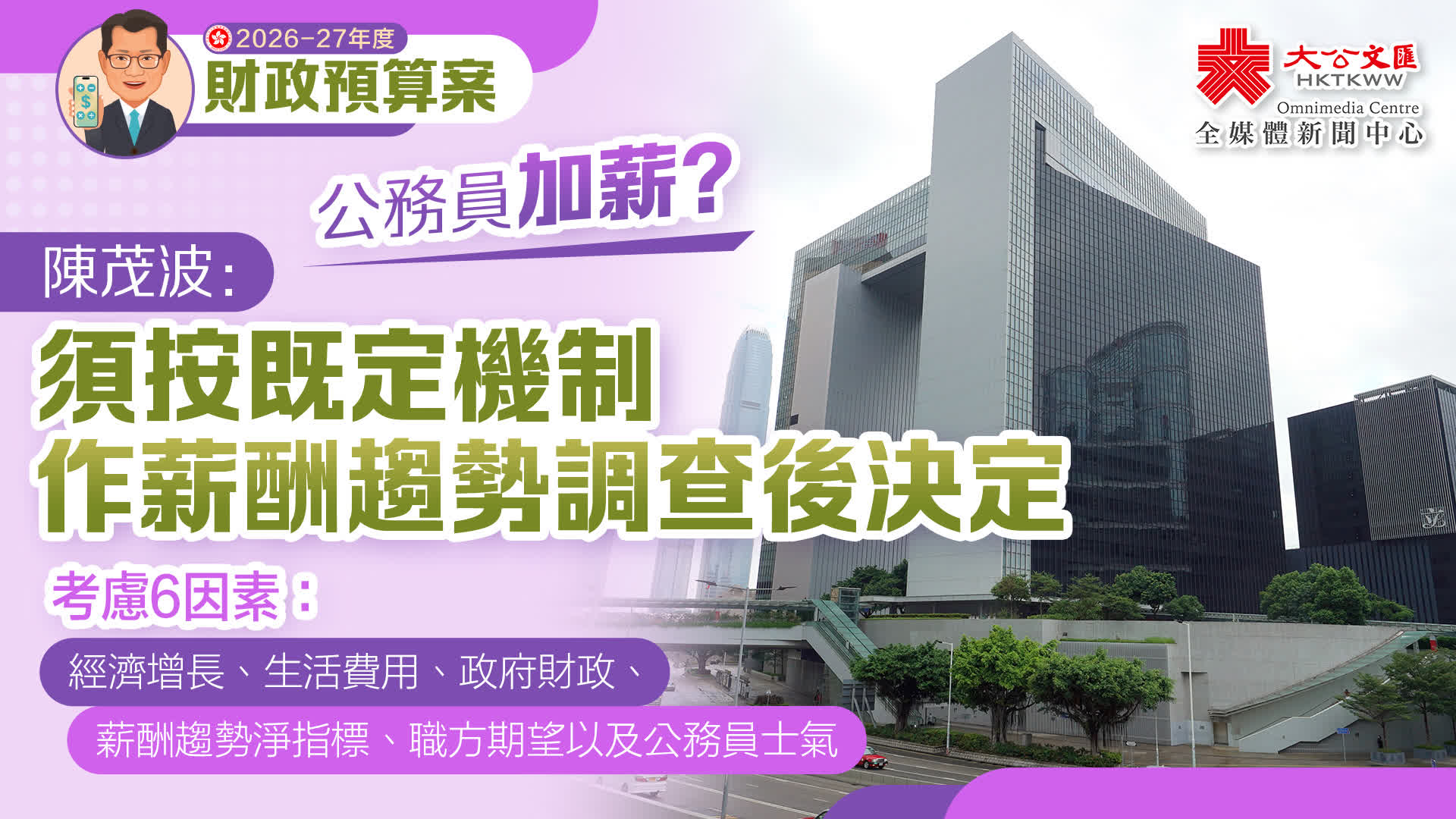 大公文匯全媒體報道,去年政府財政壓力較大,當時財政預算案提及行政、立法、司法機構一致凍薪,並叫停薪酬趨勢調查。新一份預算案建議就2026/27年度的公務員薪酬調整,按既定機制進行薪酬趨勢調查,並由行政長官會同行政會議在充分考慮六大因素後決定。