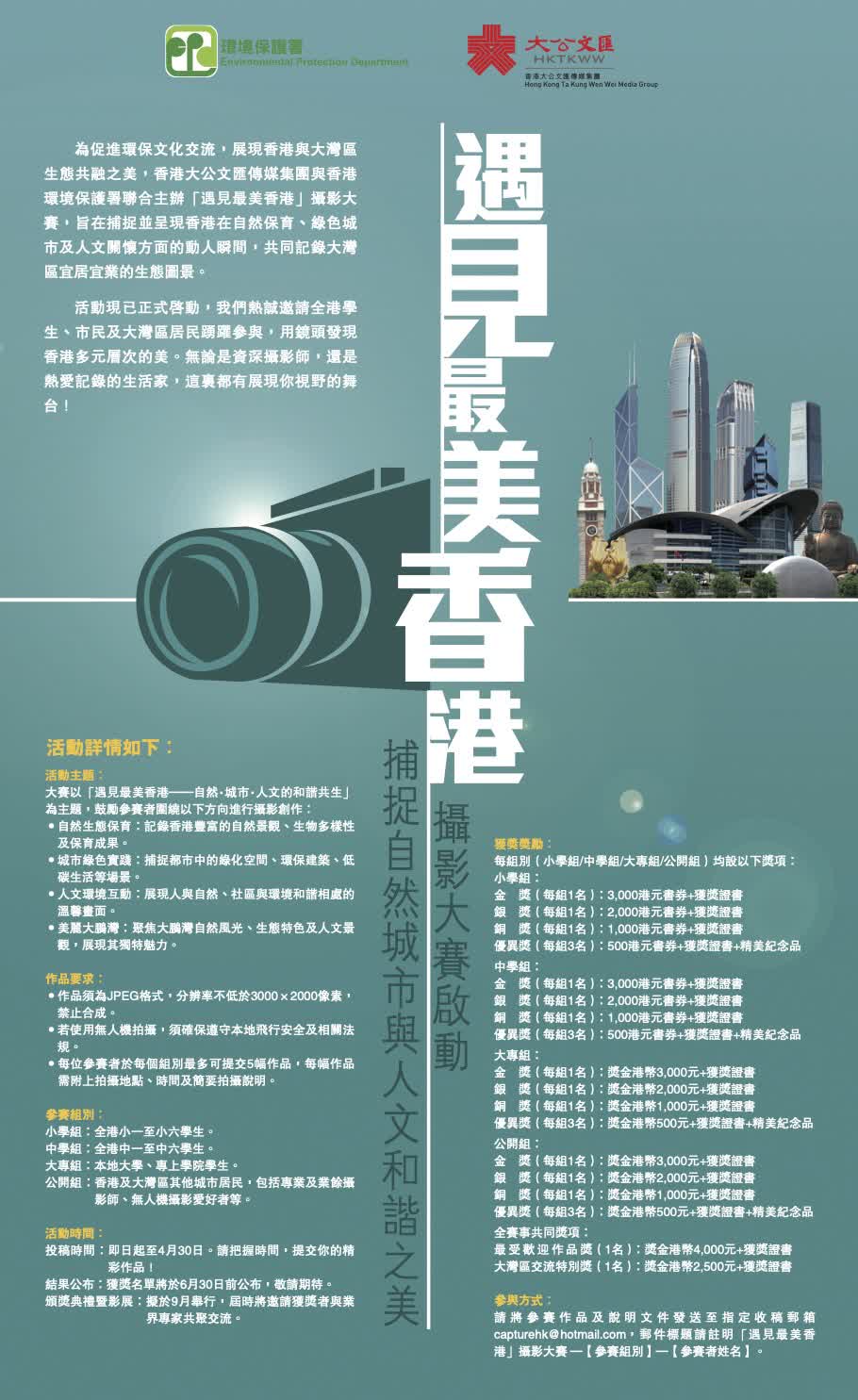 活動現已正式啟動,我們熱誠邀請全港學生、市民及大灣區居民踴躍參與,用鏡頭發現香港多元層次的美。無論是資深攝影師,還是熱愛記錄的生活家,這裏都有展現你視野的舞台!