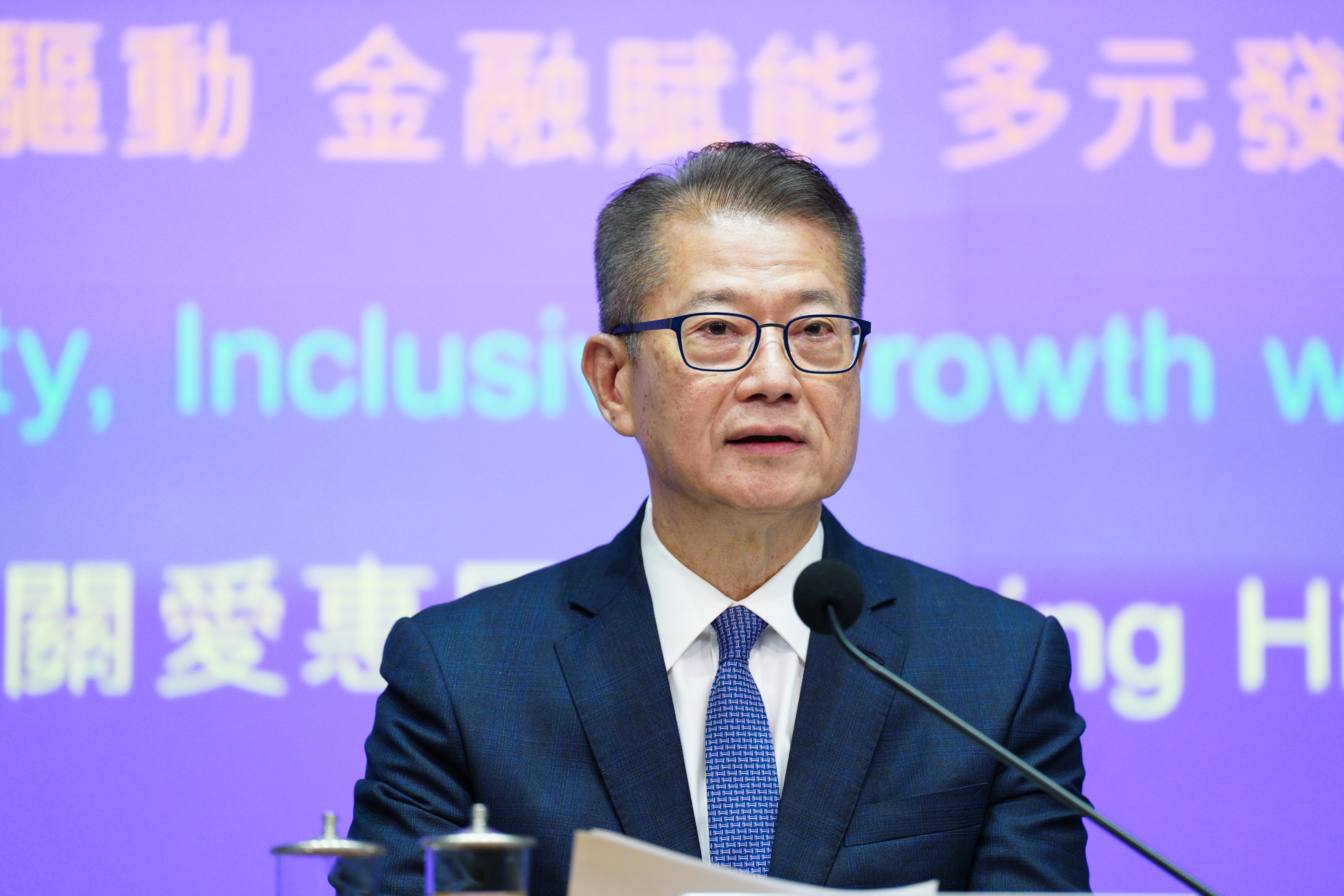 (大公文匯全媒體 記者 劉妍伶)財政司司長陳茂波今日(25日)上午發表新一份財政預算案。下午3時,陳茂波在政府總部舉行財政預算案記者會,回答傳媒提問。財經事務及庫務局局長許正宇、財經事務及庫務局常任秘書長(庫務)黎志華、政府經濟顧問范婉兒亦出席記者會。