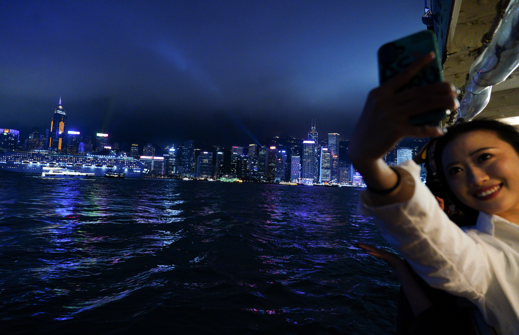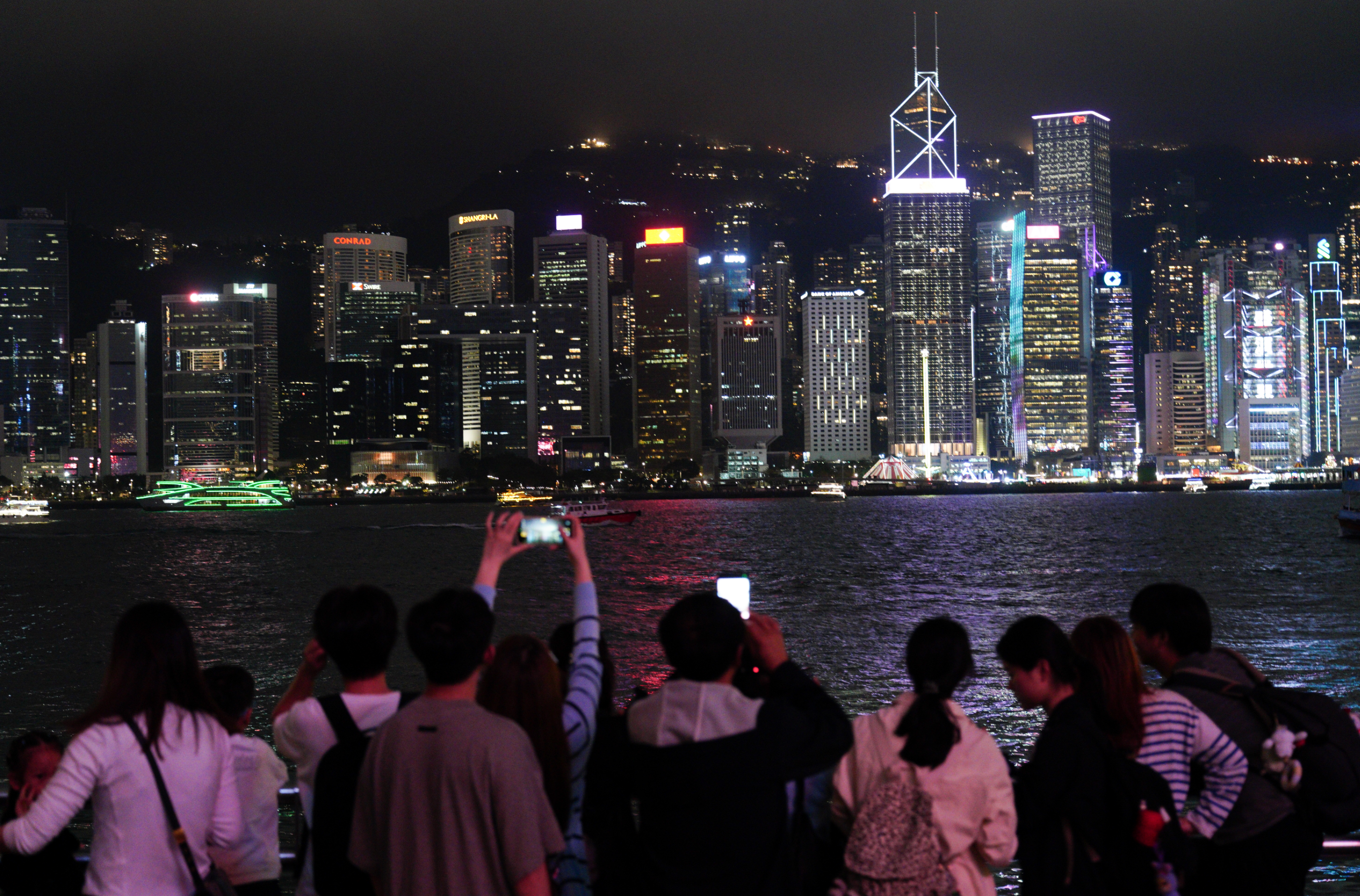 「幻彩詠香江」燈光音樂匯演自2004年開始舉辦。大公文匯全媒體記者今晚8時許在現場看到,許多遊客紛紛拿起手機合影留戀,記錄下美好的夜景與燈光秀。