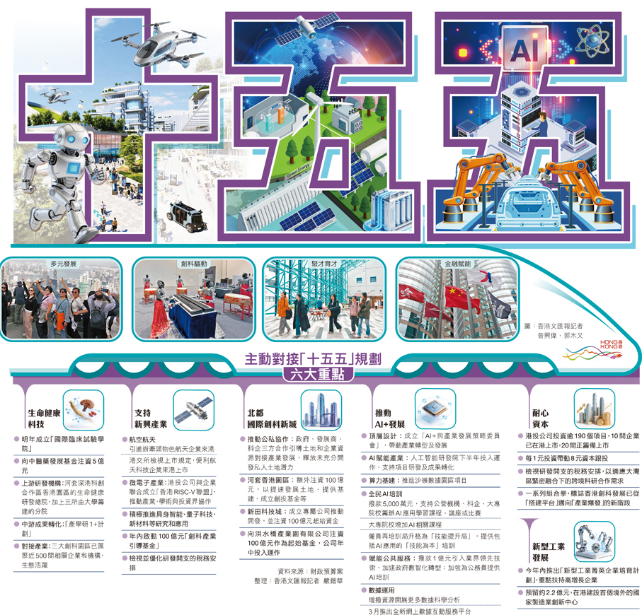 (香港文匯報 記者 嚴鍇華)今年是國家「十五五」規劃的開局之年,香港特區行政長官李家超將率領跨局跨部門專班,帶領香港主動對接「十五五」規劃,昨日出爐的2026/27財政年度預算案濃墨重彩地推出一系列措施對接「十五五」規劃,助力香港搭上國家高速發展的經濟快車。香港特區政府財政司司長陳茂波指出,香港在人工智能、生命健康科技、金融科技,以及新材料和新能源等領域具備獨特優勢,提出成立「AI+與產業發展策略委員會」,推動全民AI培訓;成立「國際臨床試驗學院」,貢獻國家生物醫藥技術「引進來、走出去」。擘畫宏大願景的同時,因應特區政府經營賬目提前轉虧為盈,惠民措施「加甜」,支援措施金額規模高達220億元,比去年增1.8倍,惠及基層、中產及中小企,皆大歡喜。