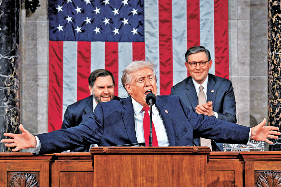 香港文匯報綜合報道,美國總統特朗普在美東時間2月24日晚上9時(香港時間25日上午10時),在國會眾議院發布國情咨文,是次持續長達1小時48分鐘的演說,創下美國總統歷來發布國情咨文的最長紀錄。特朗普極力誇大自己的經濟和外交成就,宣稱在其治下,美國迎來「黃金時代」,較任何時候更強大美好。多名民主黨議員缺席或當場抗議特朗普的演說。分析也指特朗普空洞的發言,或難以拉攏備受通脹所困的中低收入支持者群體。