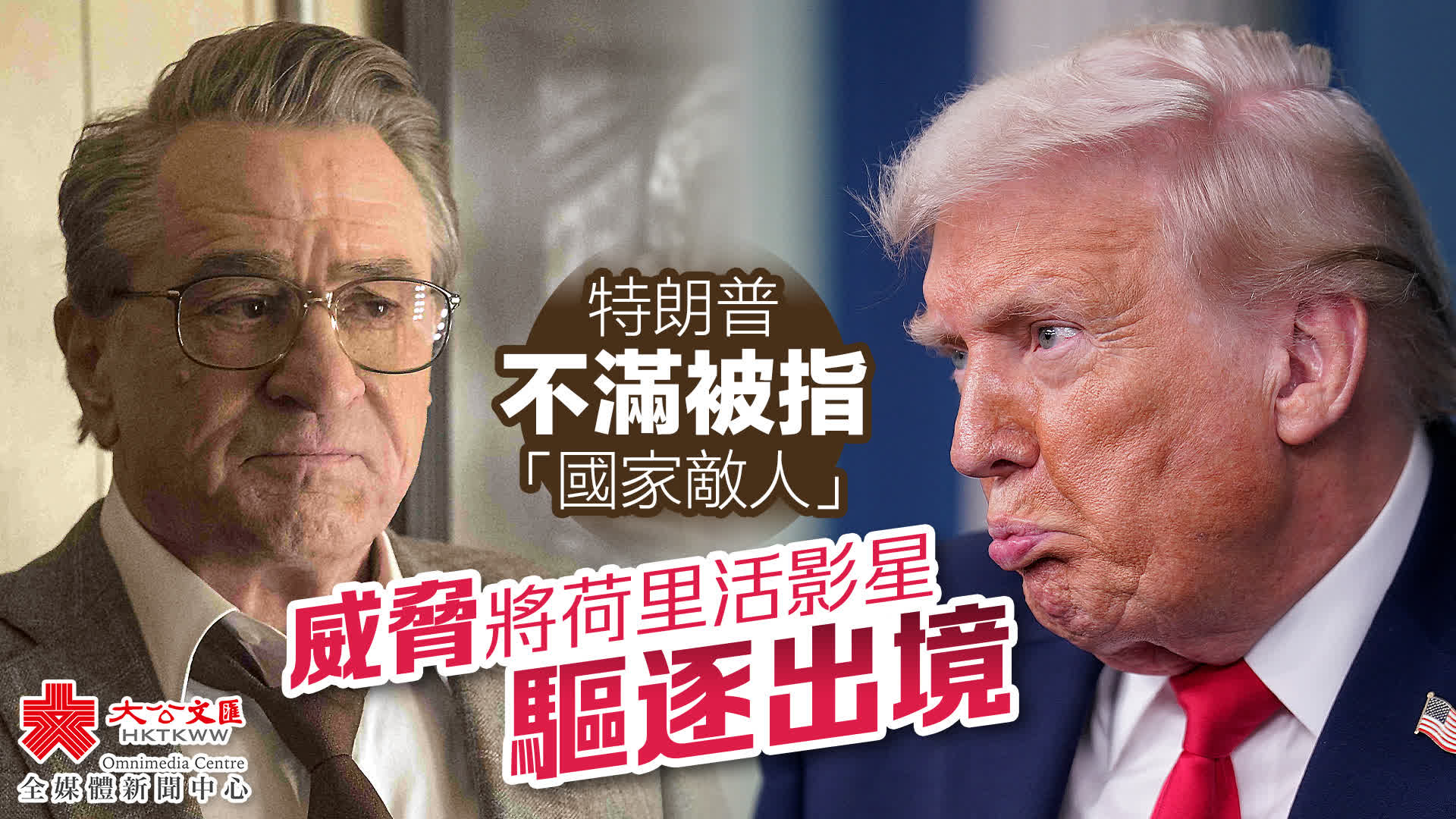 大公文匯全媒體報道,據美國《綜藝》雜誌報道,美國知名演員羅伯特·德尼羅近日在做客一檔播客節目時情緒激動一度哽咽,指責美國總統特朗普正在「摧毀我們的國家」。特朗普25日在社交媒體上發文抨擊德尼羅,並威脅將他驅逐出境。